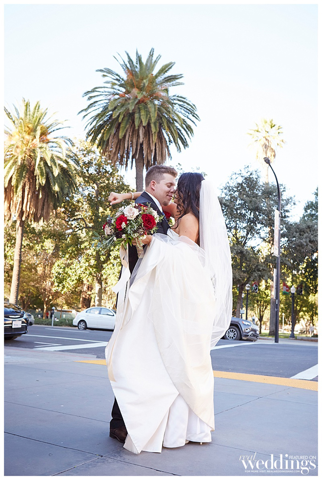 Fast forward to Christmas time at Disneyland. “He will tell you the intentions were to propose the night before, but I came out of the store chomping on a huge caramel apple instead,” she recalls. “From that night on it was a race to find the perfect spot and moment. I will never forget one moment we’re posing for pictures and the next he was shaking like a paint mixer and plopped down to one knee. The first words out of his mouth: ‘Do you know what a giant pain in my ass you are?’ It was perfect!”