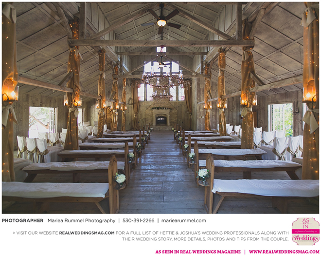 The couple began planning an intimate wedding that would include only their close friends and family. “We also wanted the wedding to be rustic yet elegant,” adds the bride. “I paired very high-end dresses with antique rustic accents to create an eclectic feel. But our main goal was to have fun and celebrate with our friends.”