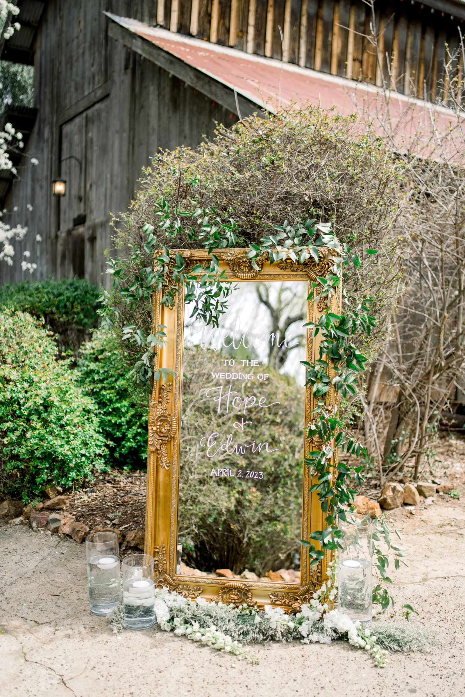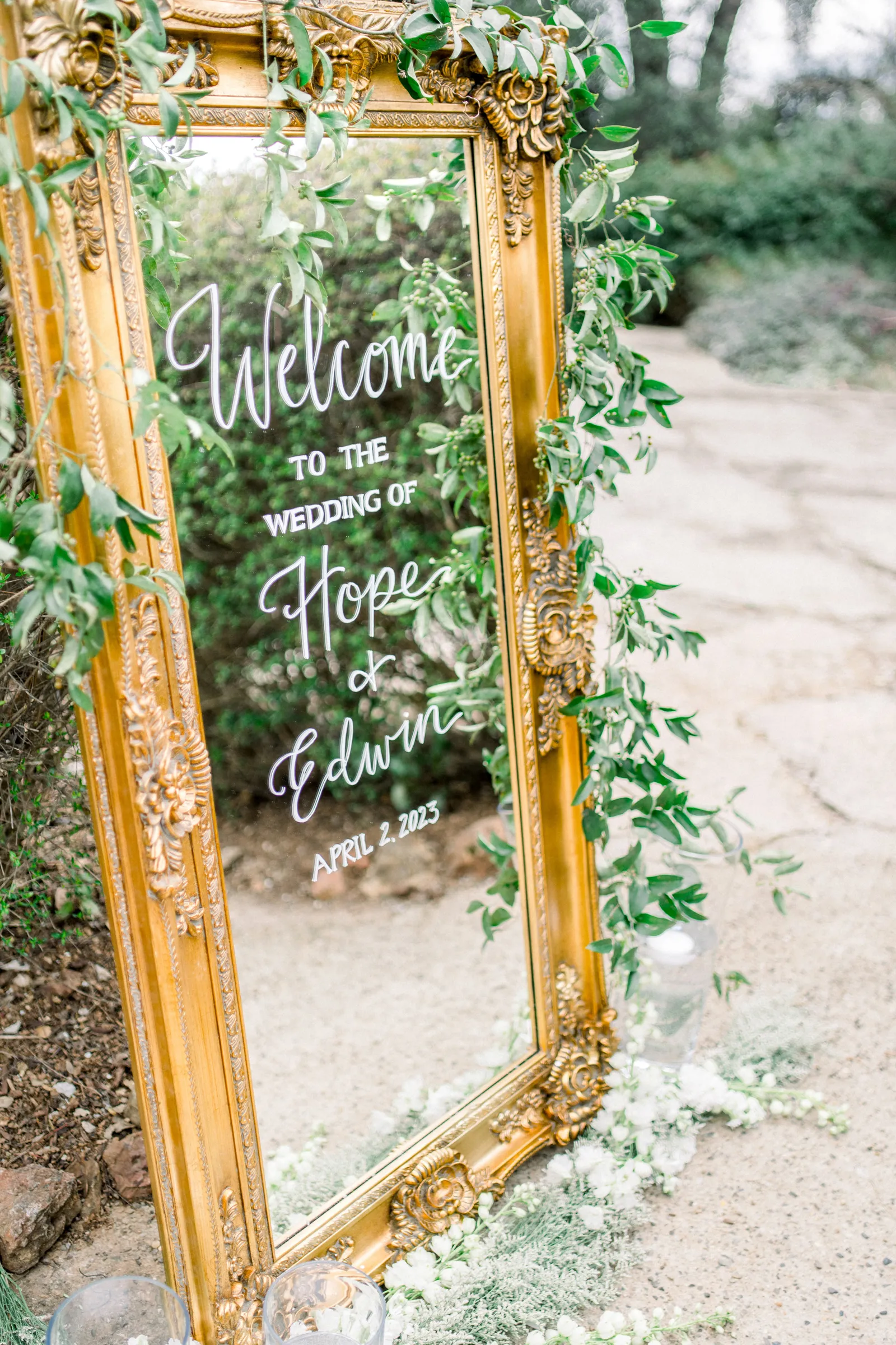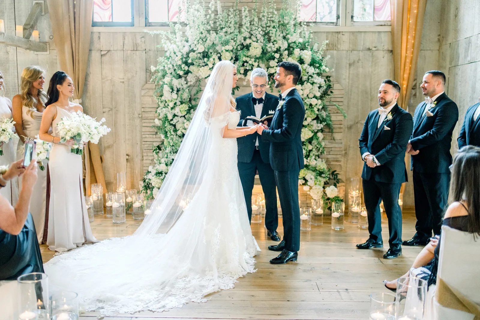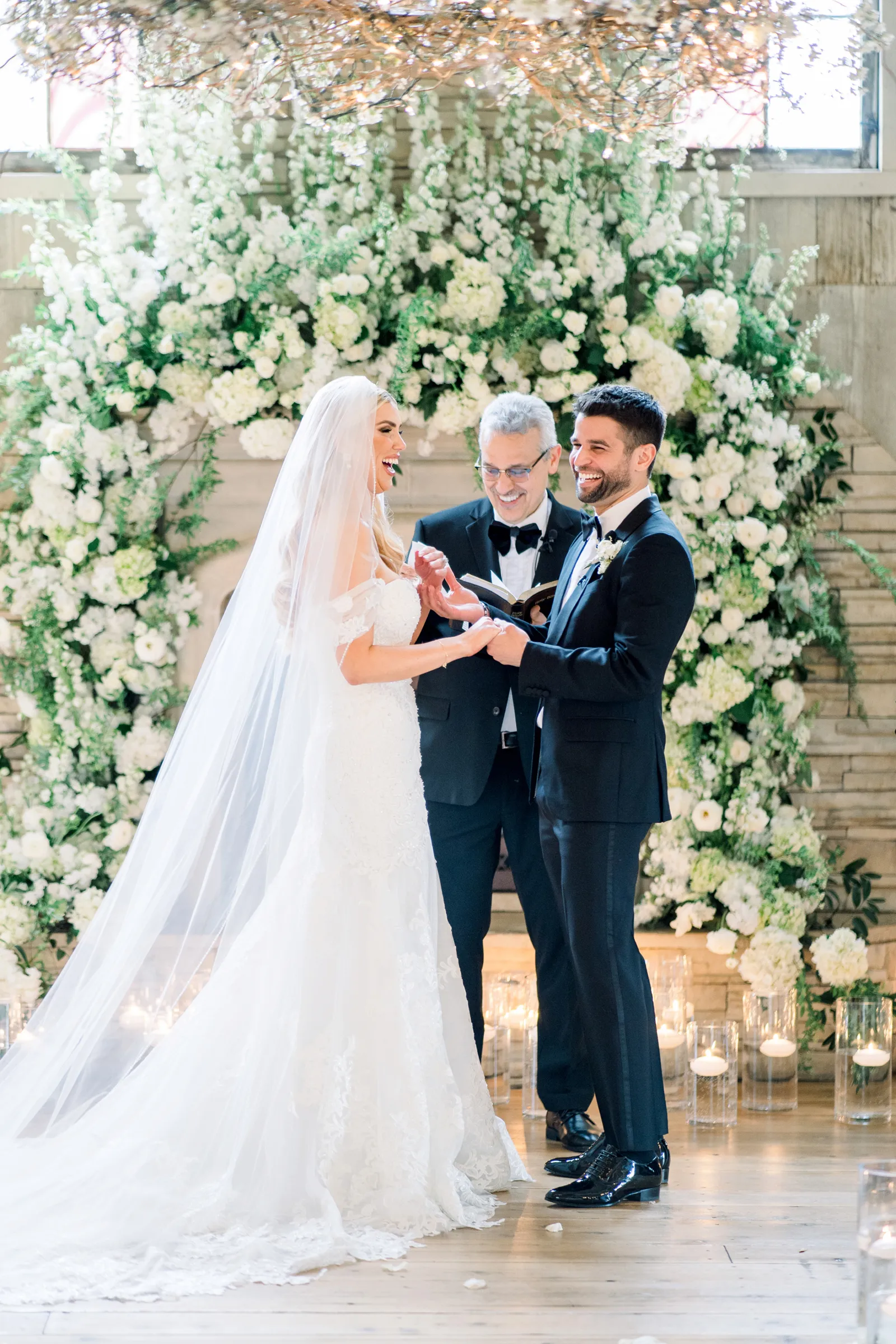 Saying our vows to each other. Hope was funny and calm and I was more nervous and emotional so they showed our very different personalities. But standing up there telling each other how happy we were to be there was our favorite detail. Also, the chapel set up and flower arch with candles and rose petals.