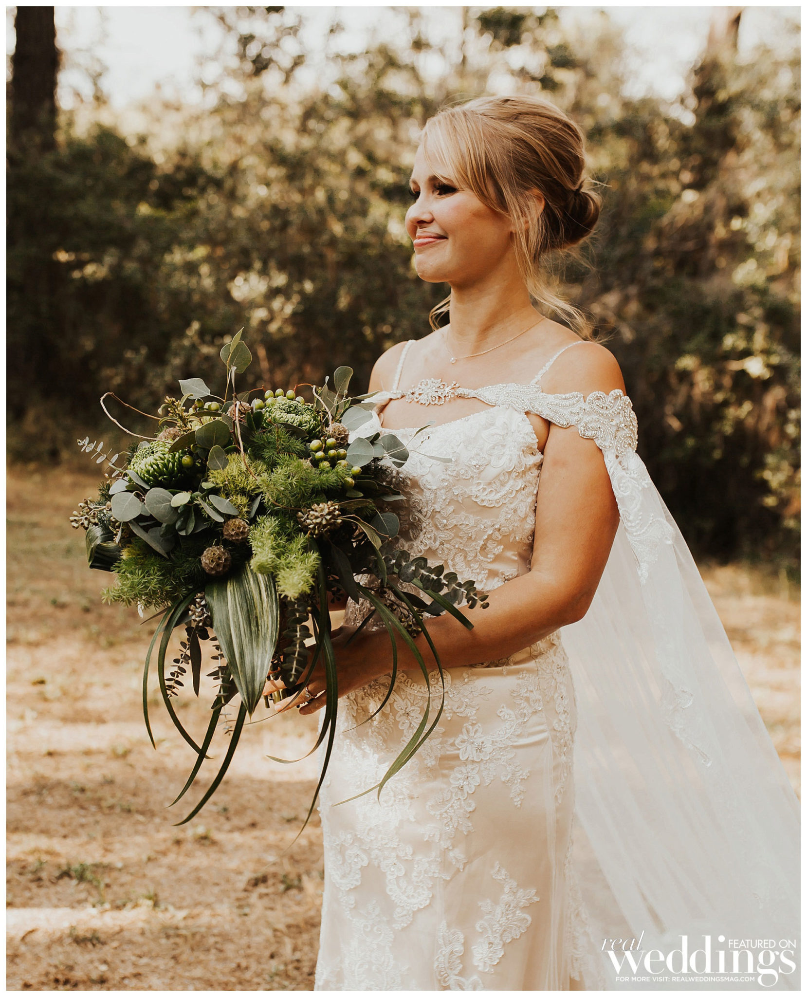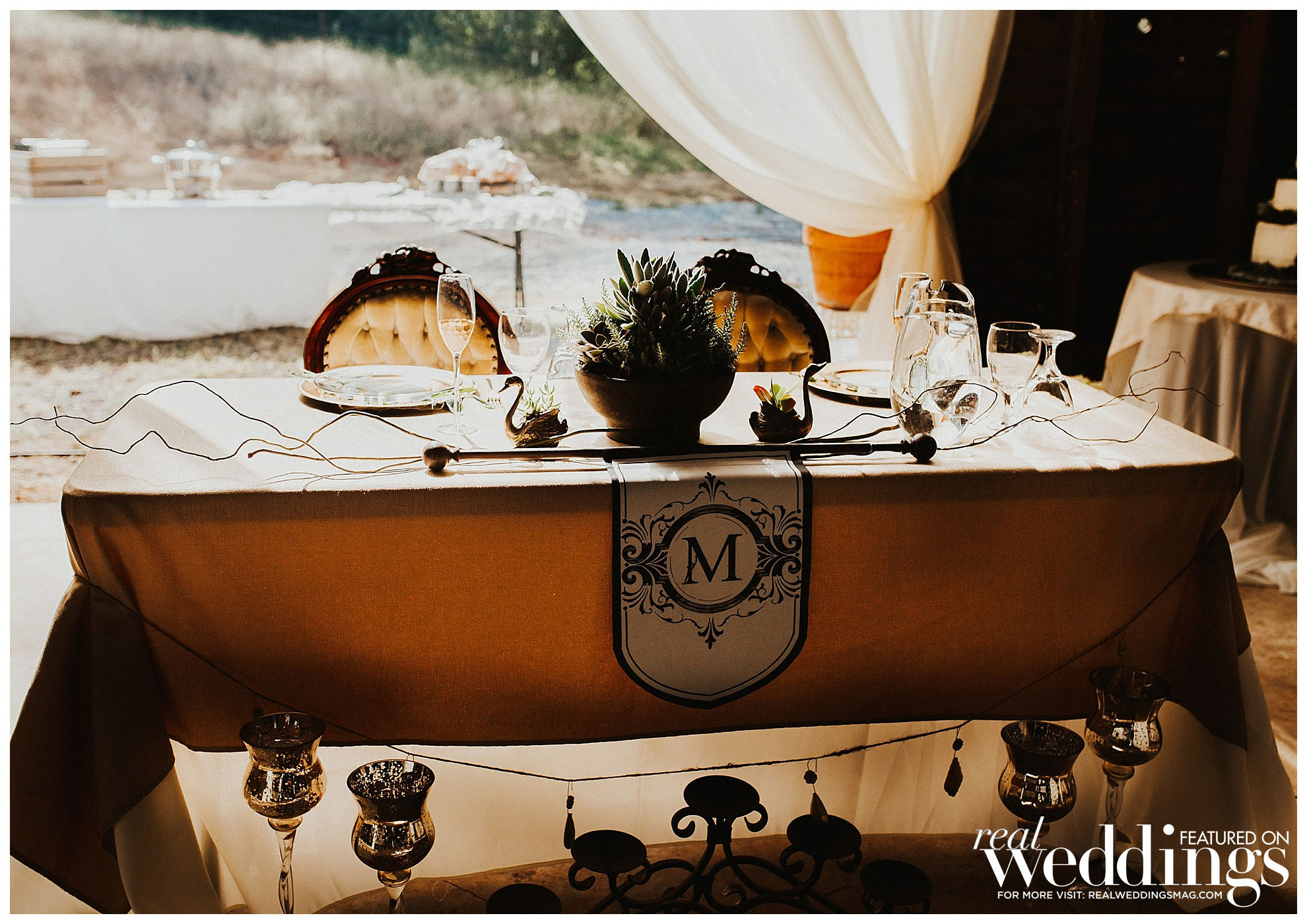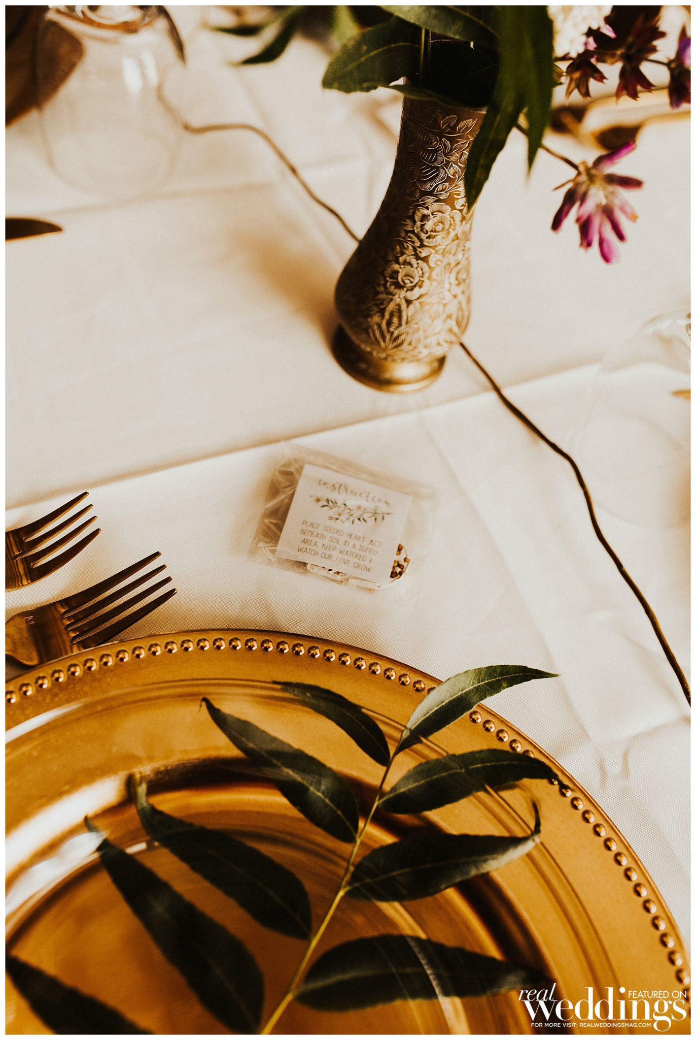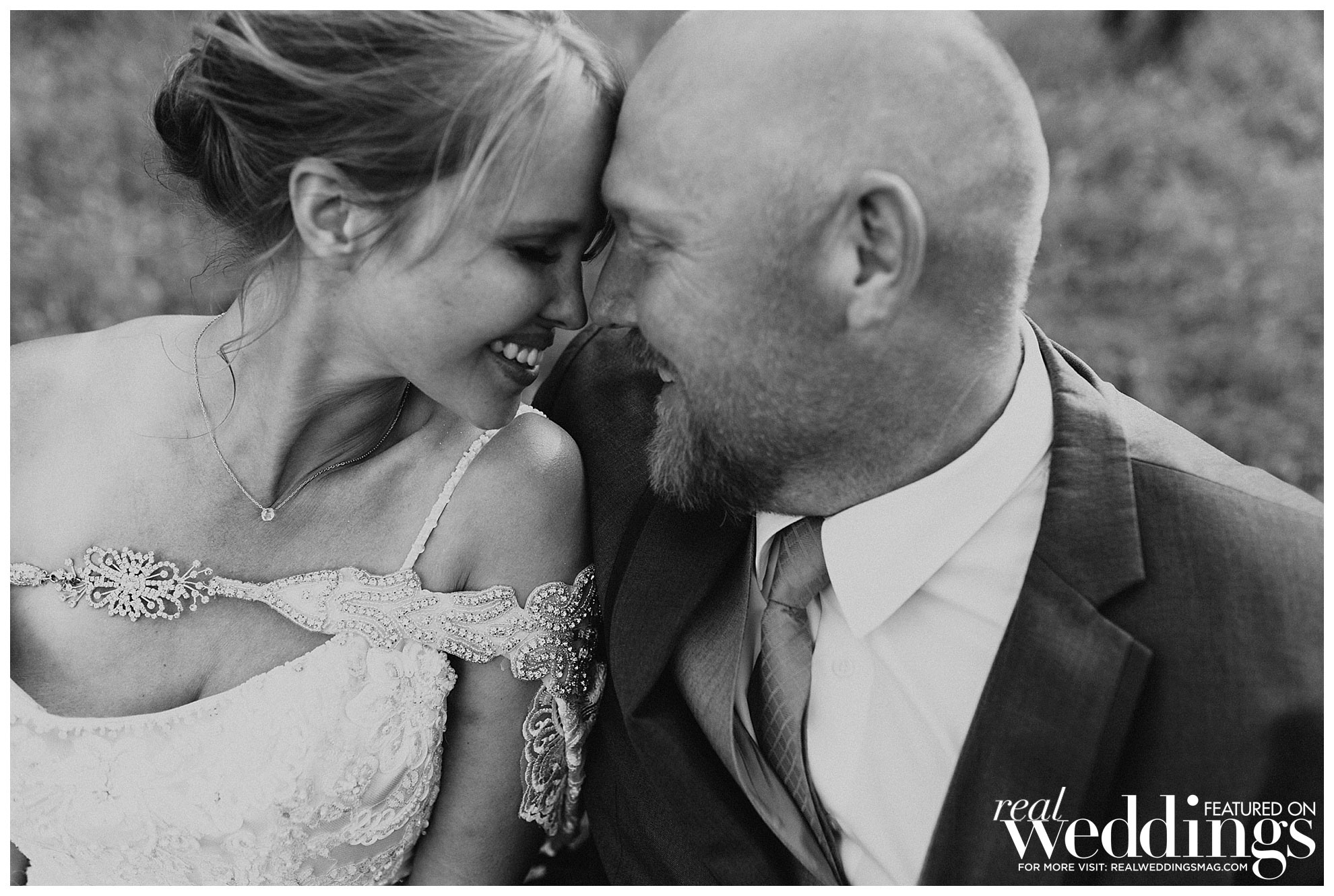 The bride did most of the wedding planning herself with the help of her mom and grandmother. “My favorite times were searching for unique décor at thrift stores and watching my theme come together,” she shares. “Also, I planned on setting up a teepee for the kids play area, and I tested out my teepee building skills in my living room a few days before the wedding. After it was successfully built, my maid of honor, my mom and I all climbed in and joked around about all of the ridiculous things that would most likely take place during the wedding. The laughter was a huge stress reliever.”