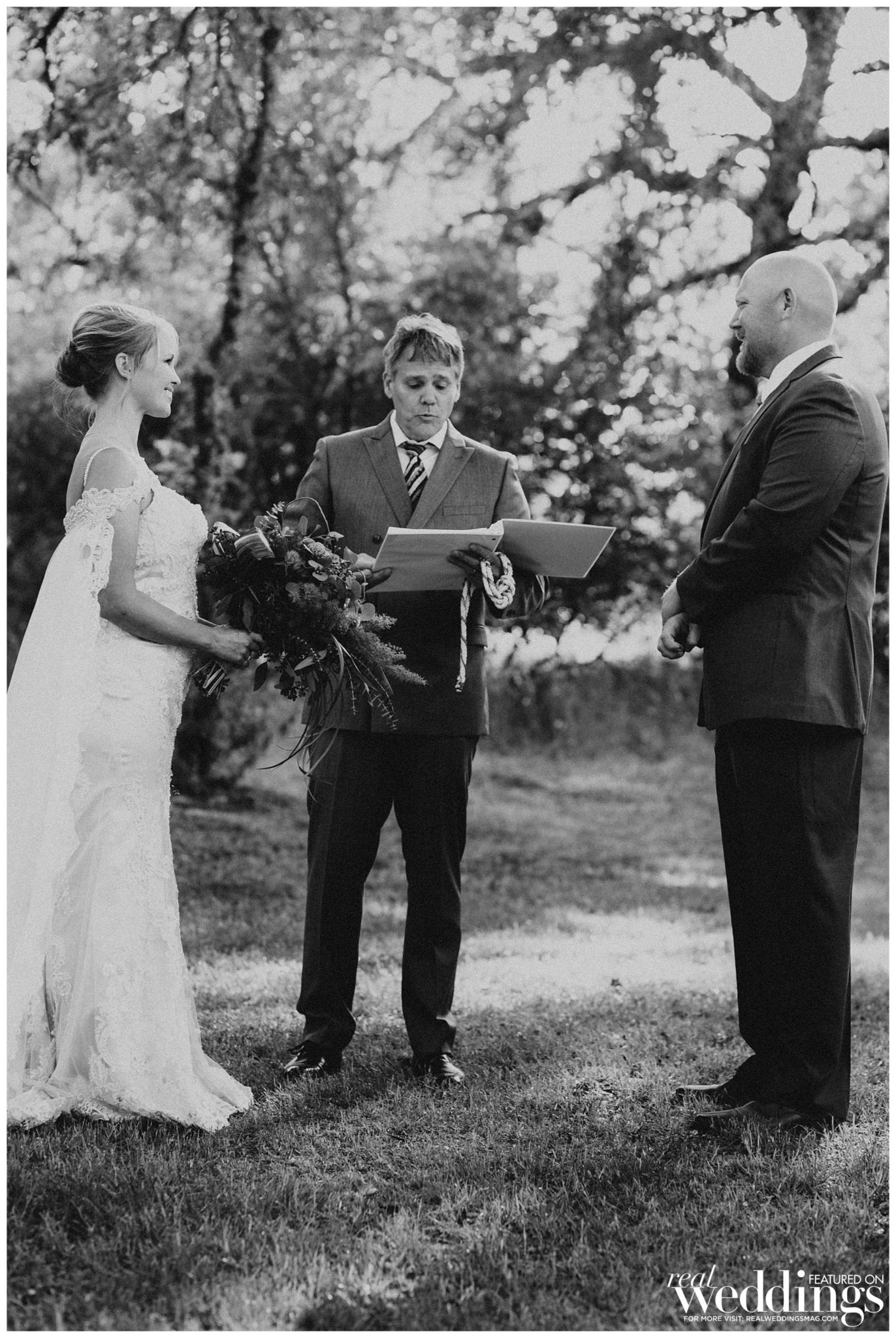 The ceremony was held under a large oak tree in a peaceful meadow. Nolan is of Irish decent, so the couple chose to incorporate his heritage in the wedding with a knot tying ceremony. “It was definitely the most emotional moment for us during the ceremony,” says Irene.