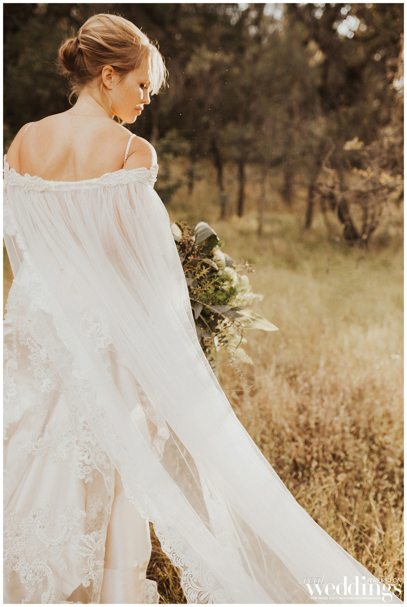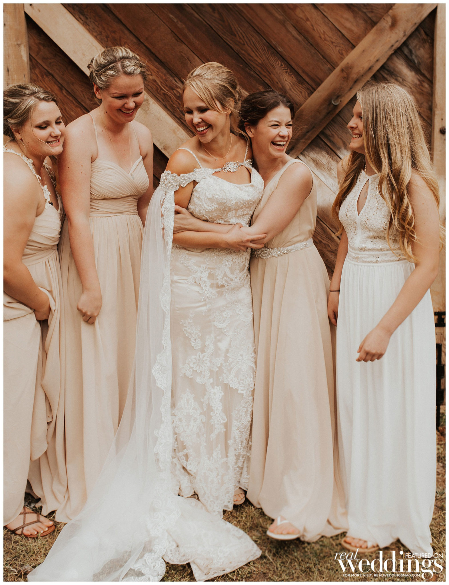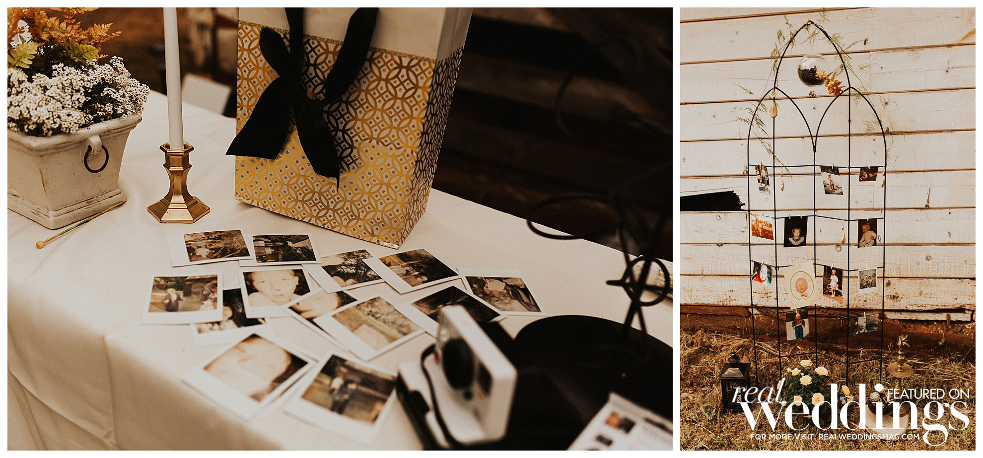 The reception was held a short walk from the ceremony in a barn. Irene’s mom bought sheer fabric to hang in the rafters. “It was quite a bit of work getting such a big barn decorated, but it was simple and gorgeous once we were finished,” says Irene.