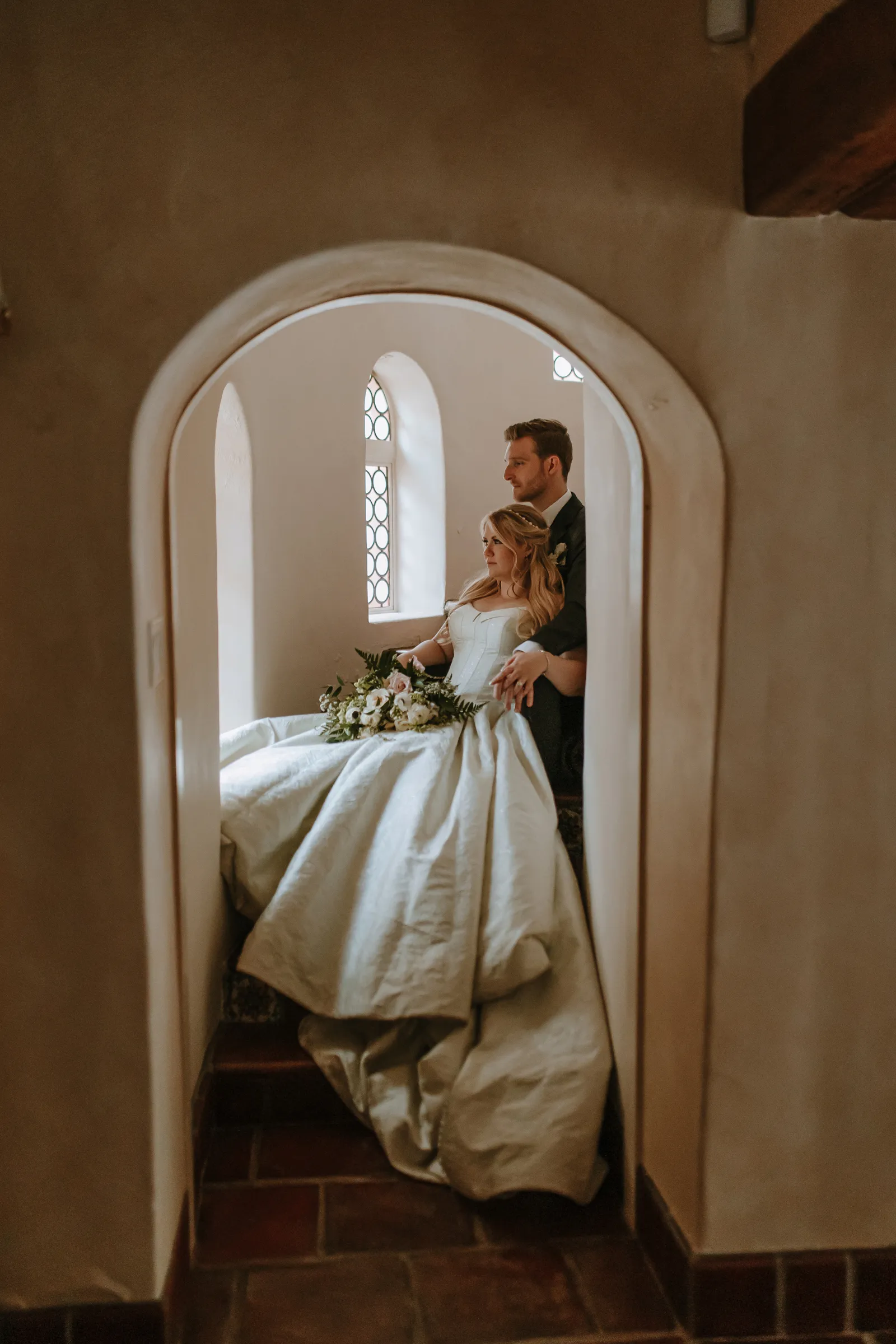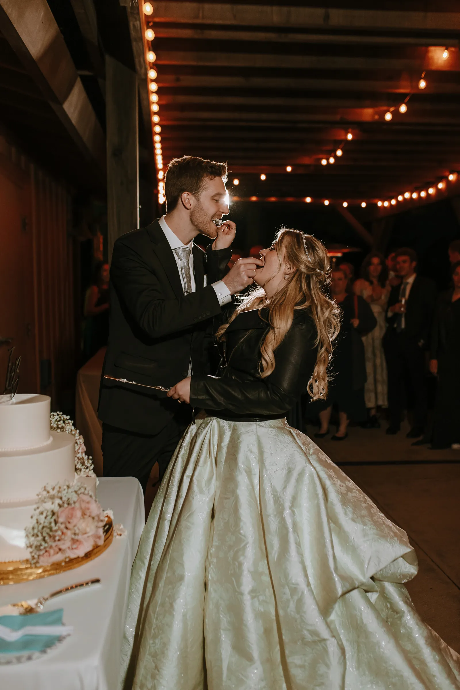 We became engaged in July of 2022. He proposed during the bouquet toss of his twin brother and the bride’s best friend after their COVID wedding celebration.