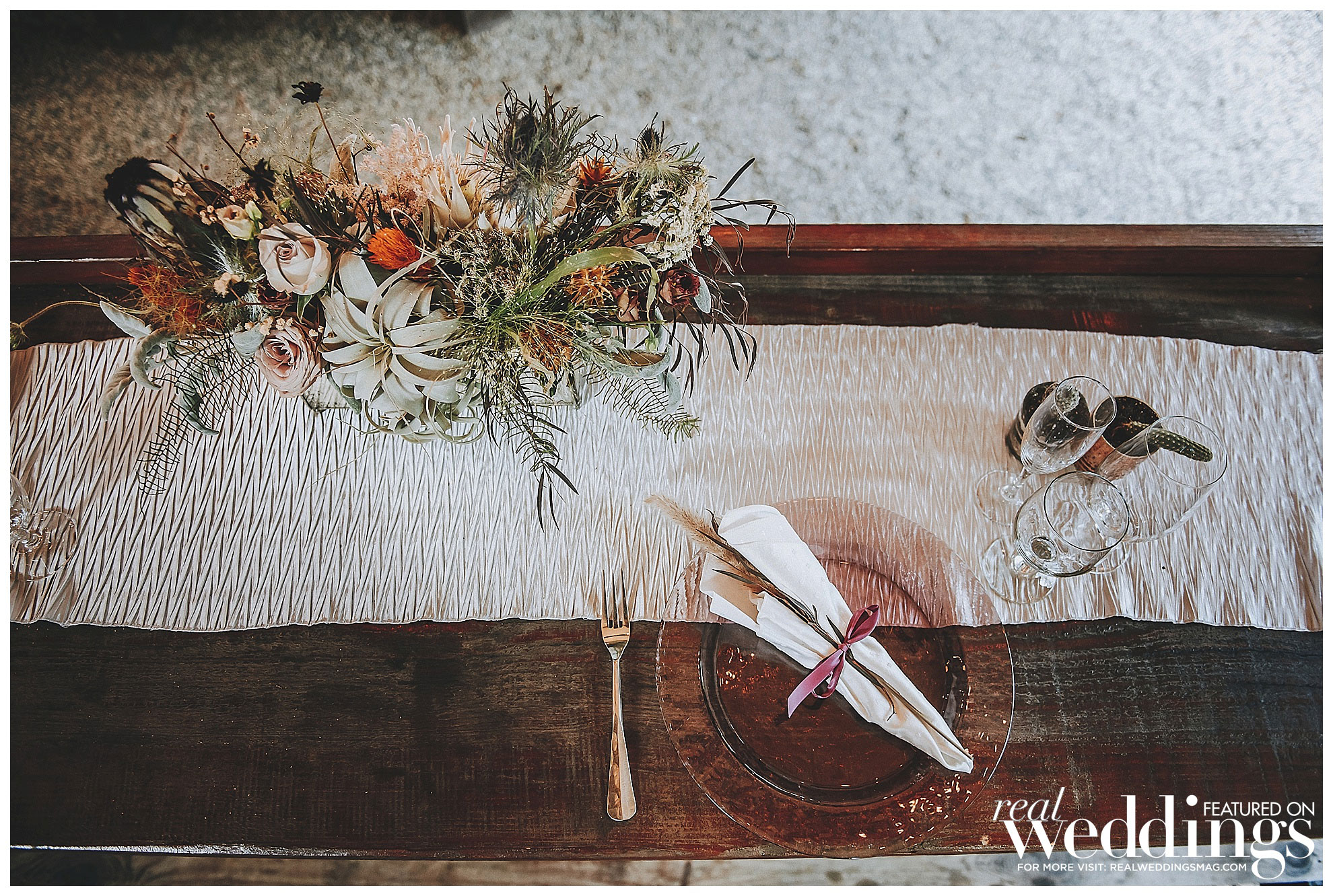 At their ceremony, their officiant Jason researched plants and animals that live in the desert and had several close friends and family read about the plants and animals and worked in analogies for love and happiness. Jamie’s mom nailed the river and desert motif with an arch.
