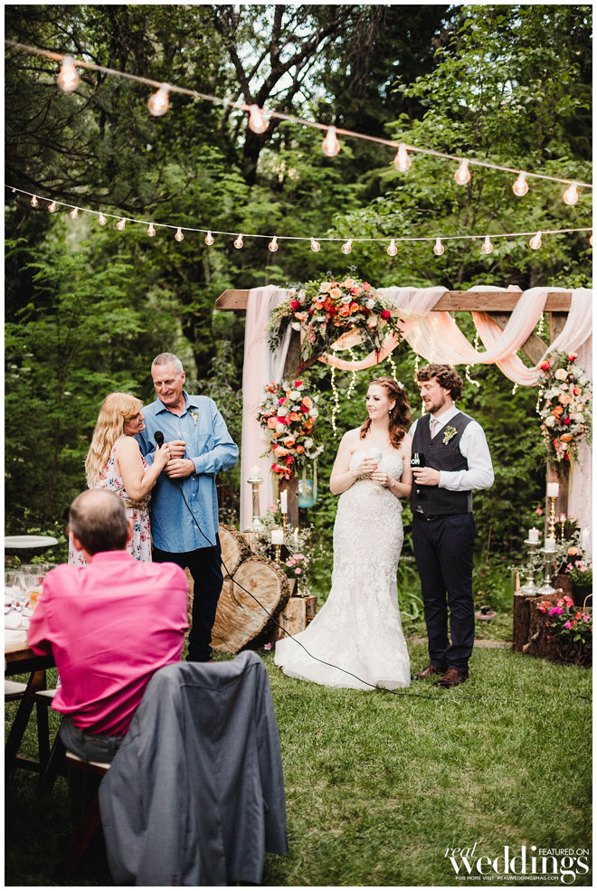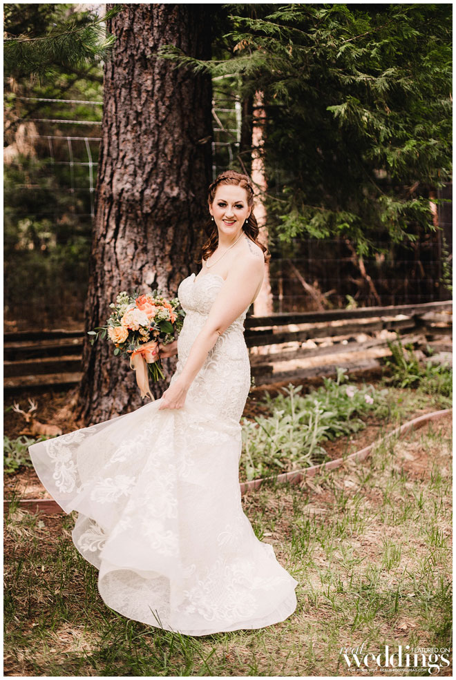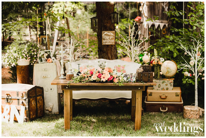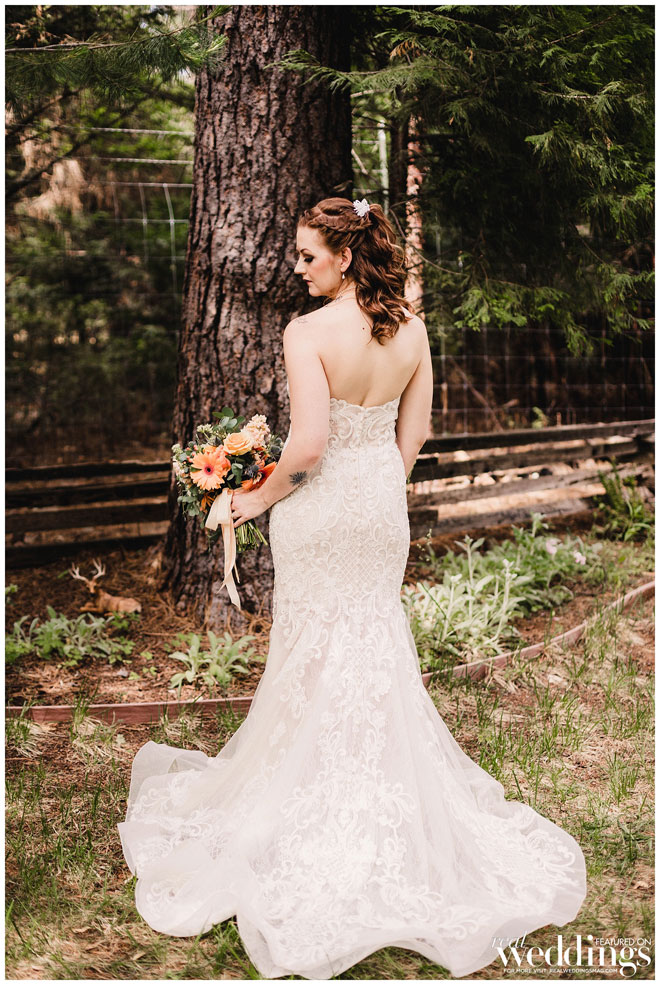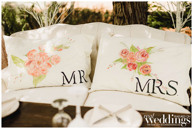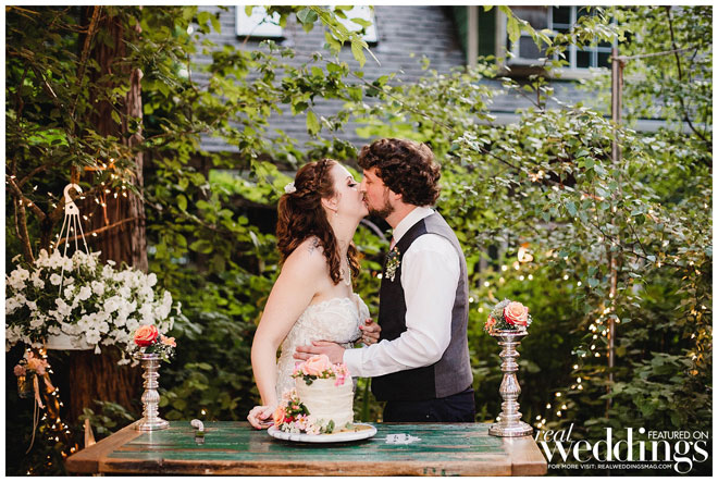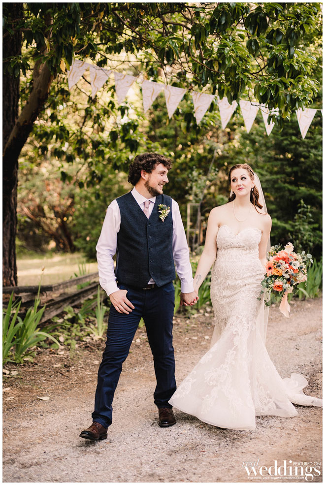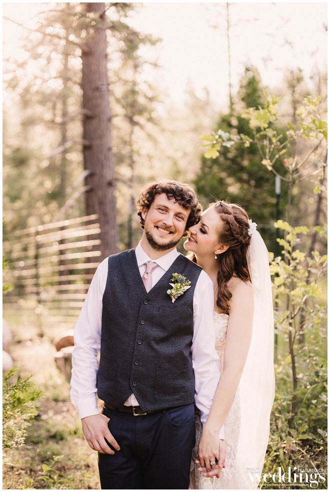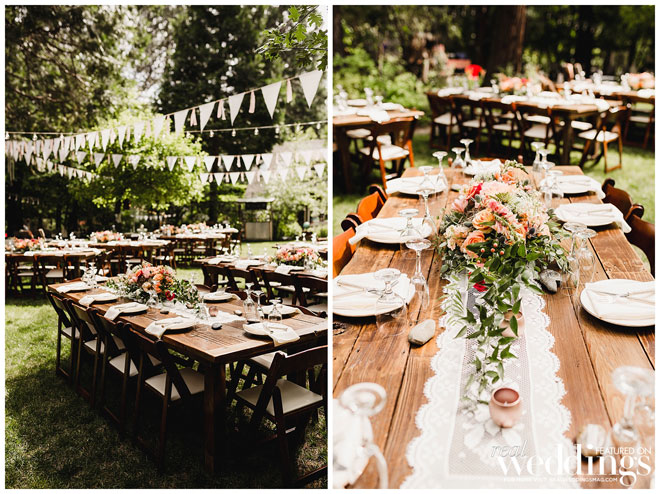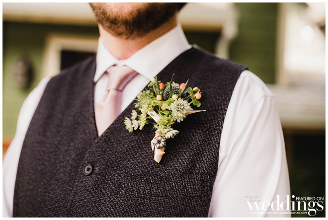 The groom says his favorite part of the day was when Jen said, “I do.” “We planned that day for months and it flew by so fast, but seeing everyone come together to make it a reality was so special to us,” the bride says. “One of the more memorable moments of the day for me was seeing my grandparents’ dog tags attached to my bouquet. It wasn’t something I knew was happening. and we were just starting to take bridal pictures when the bouquet was handed to me. When I looked down and saw the dog tags, I started to cry. It was so special. My brother also came off the Pacific Crest Trail to surprise us for the wedding—another thing we weren’t expecting.”
