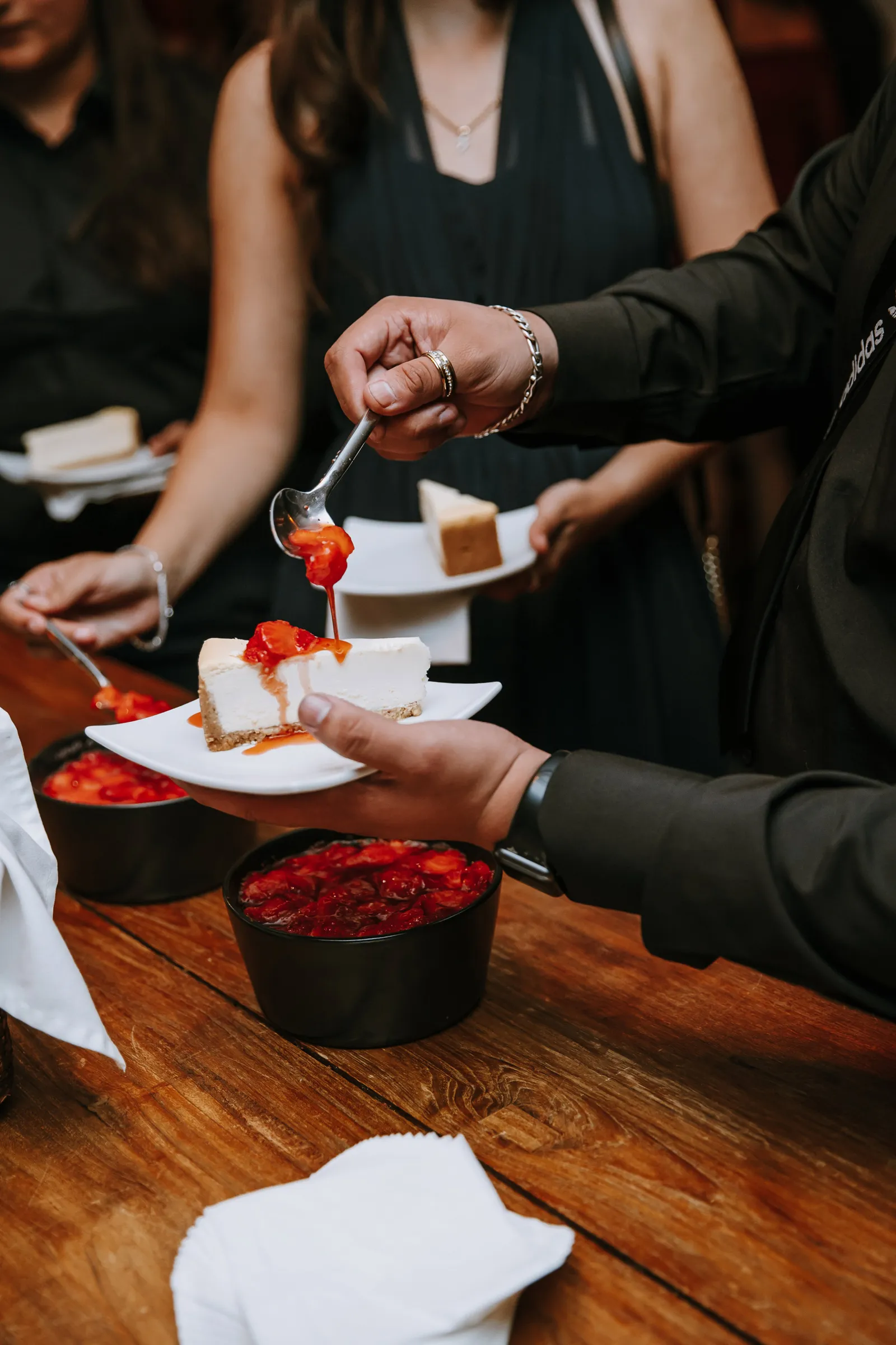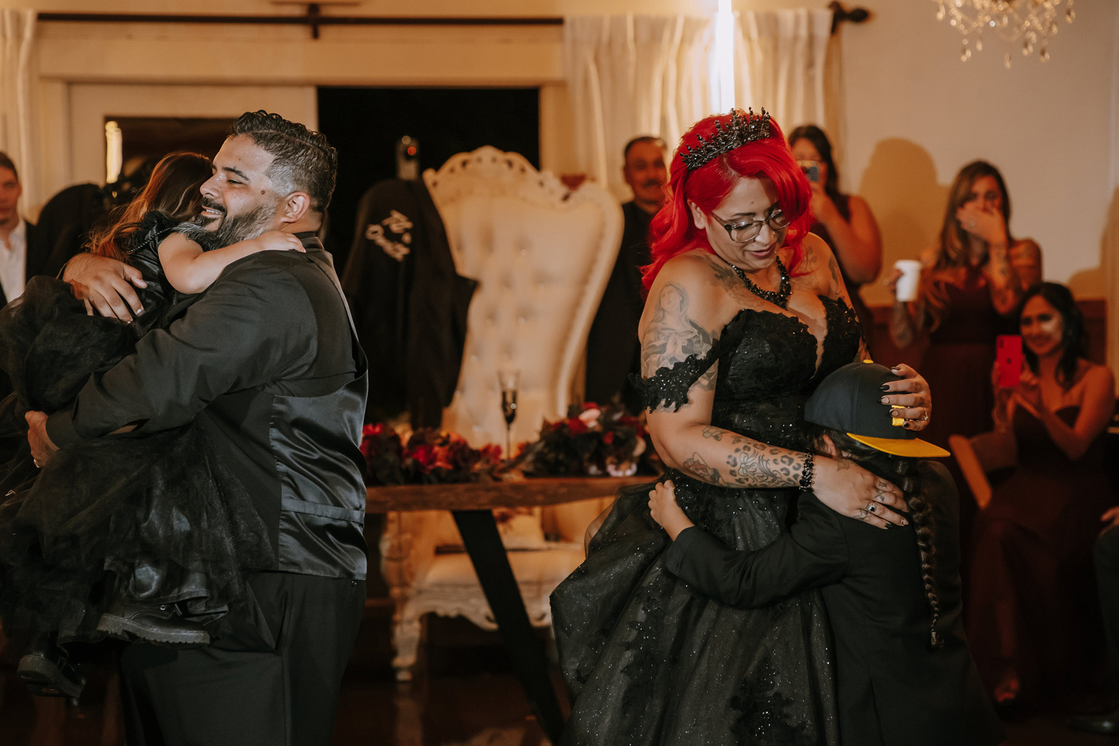 When they announced us as newlyweds and seeing all of our loved ones cheering us on brought tears to our eyes. We did a special family dance with our kids, and they were so happy they cried. My (Jennifer) sister’s speech meant so much to us and brought everyone to tears.