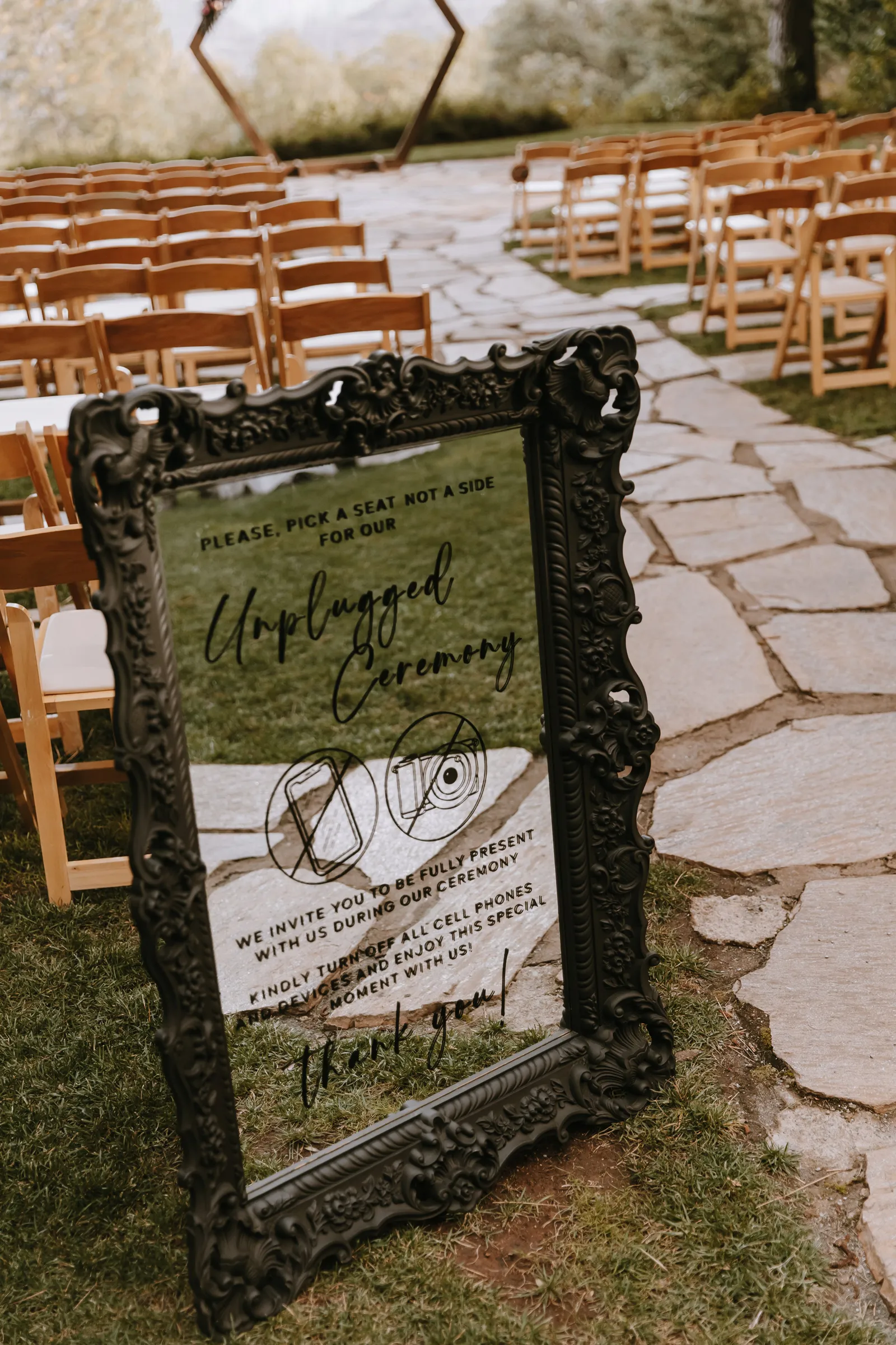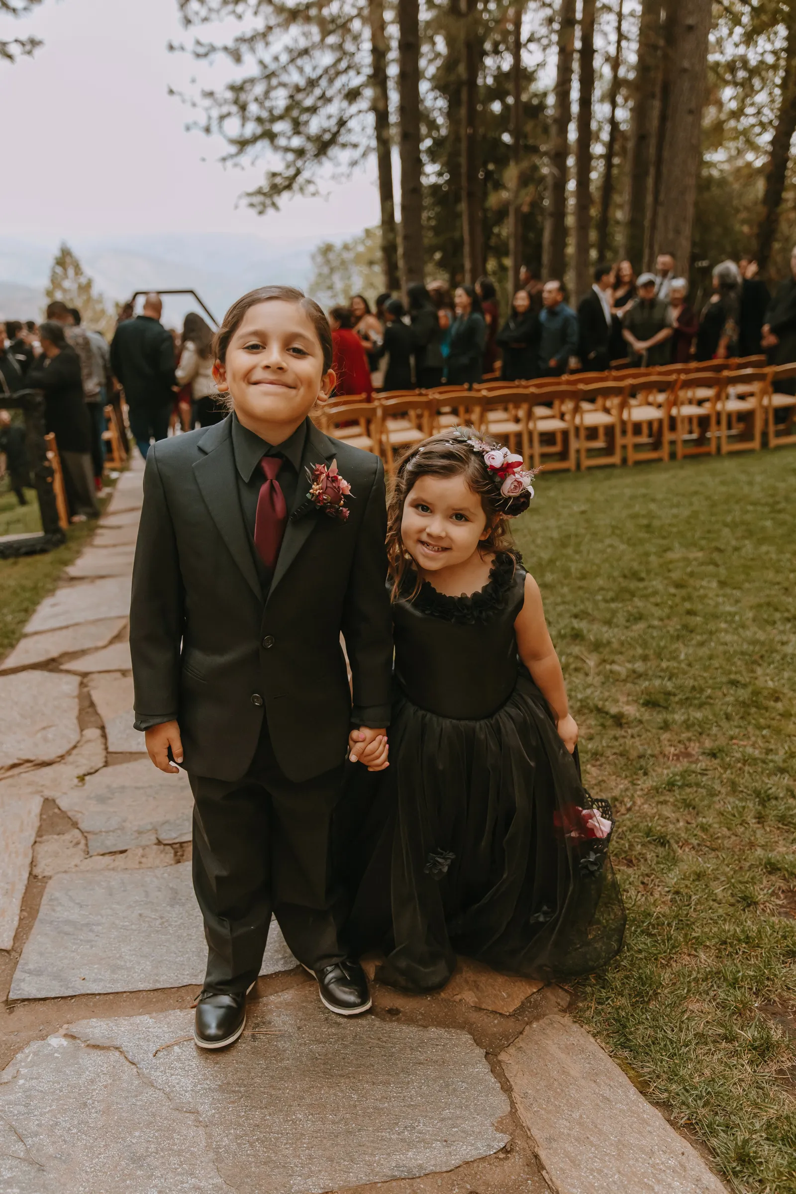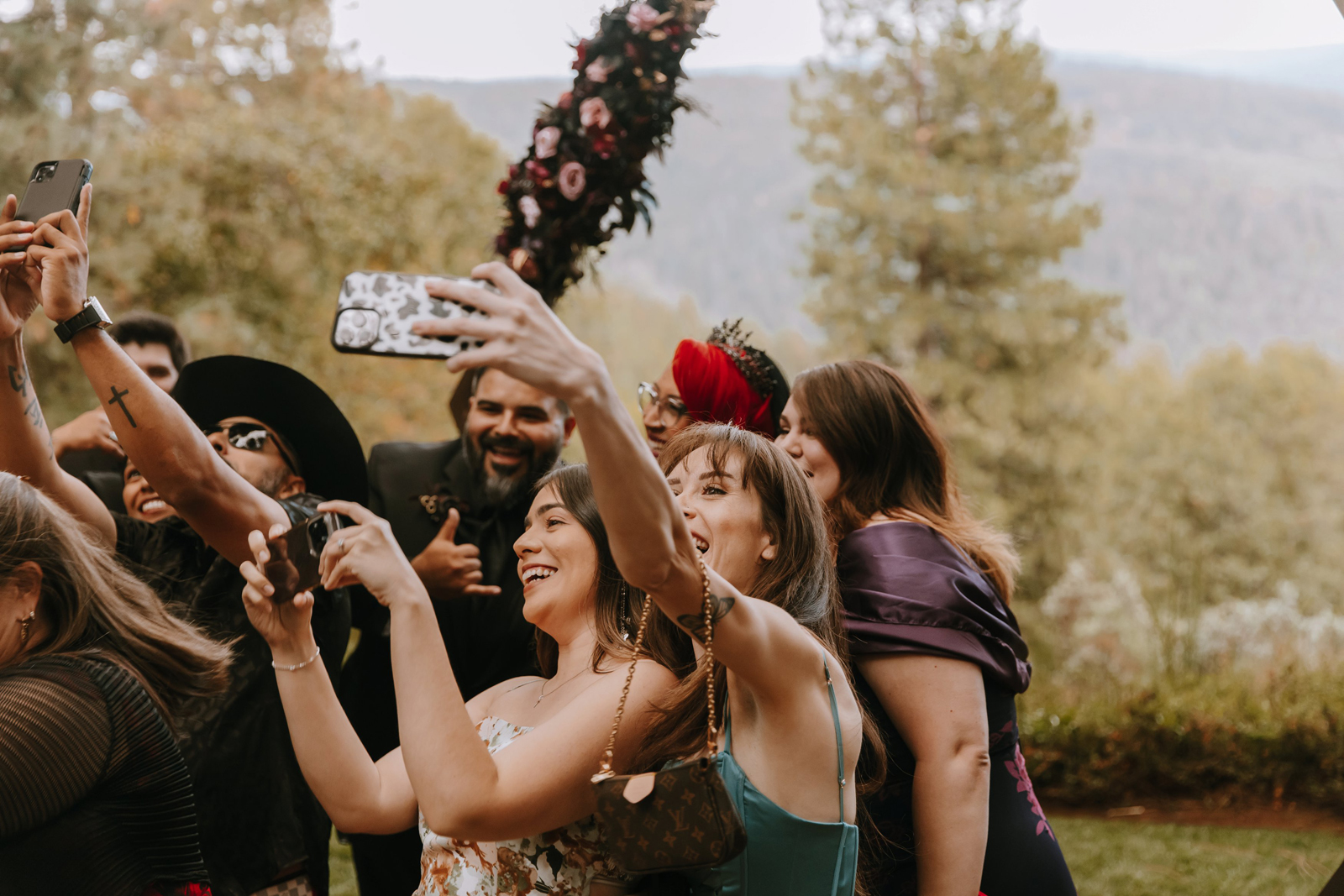 The ceremony site overlooked the beautiful Sierra mountains and it was picture perfect. We had an unplugged ceremony so right after we walked down the aisle our DJ announced that everyone had one minute to run up and get selfies with us, those were some of the best pictures.
