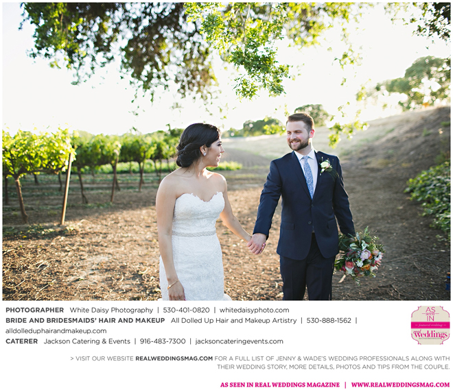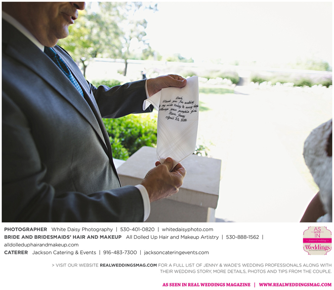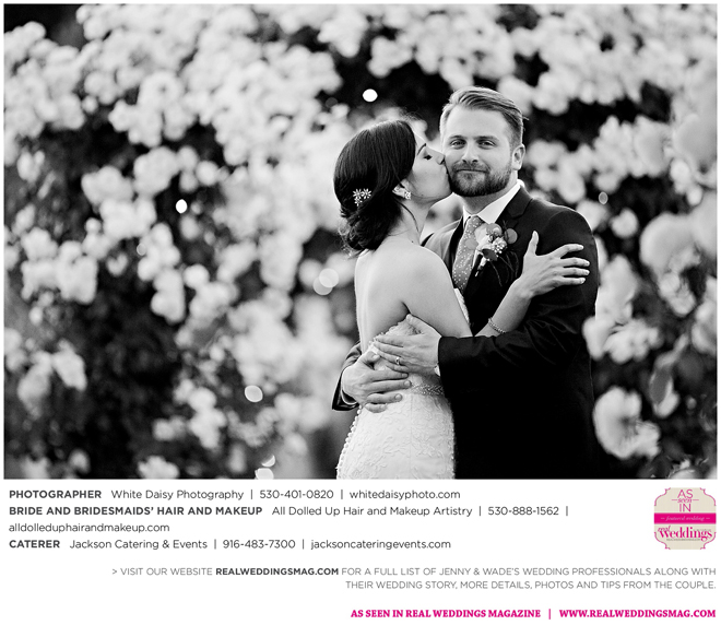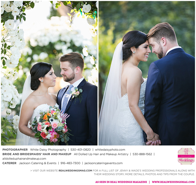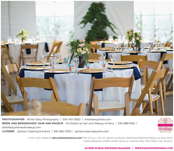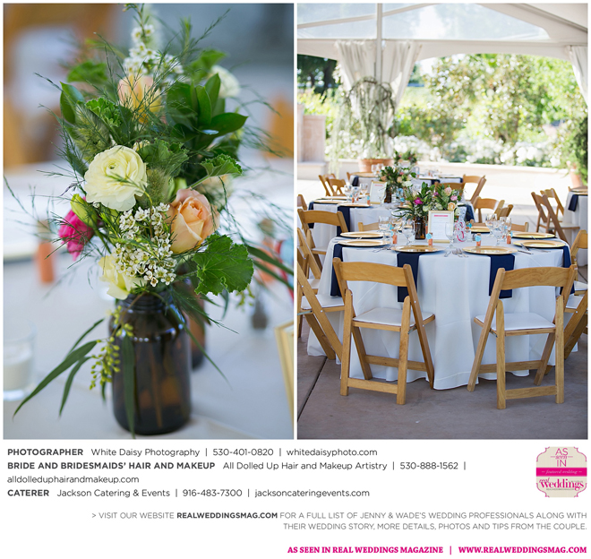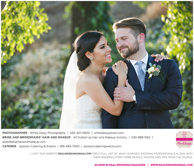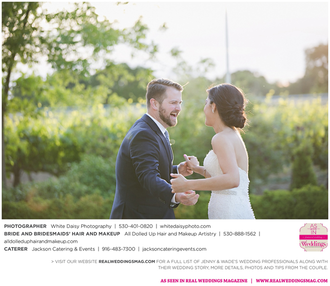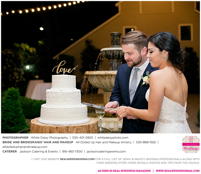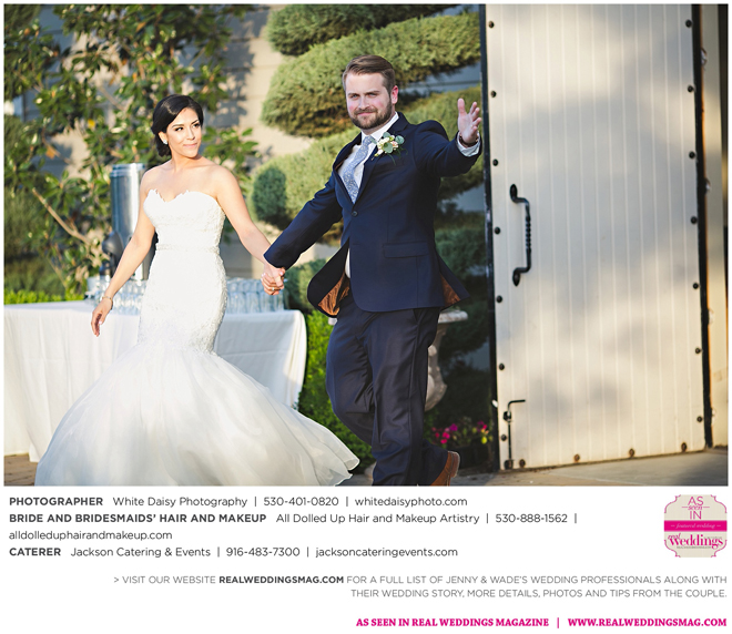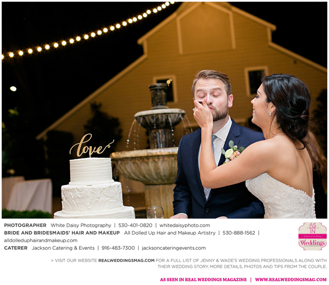 Jenny says her most vivid memory was standing at the ceremony, holding hands with Wade. “We would take turns squeezing the other’s hand when there was something funny or meaningful being said. It was one of the more peaceful moments of the day since we weren’t posing, dancing or making the rounds. It was really just the two of us in a little bubble.”