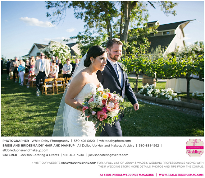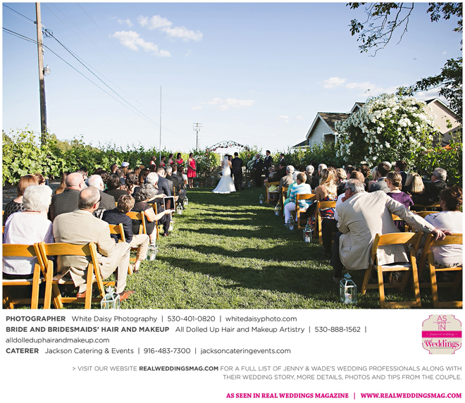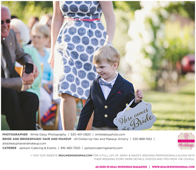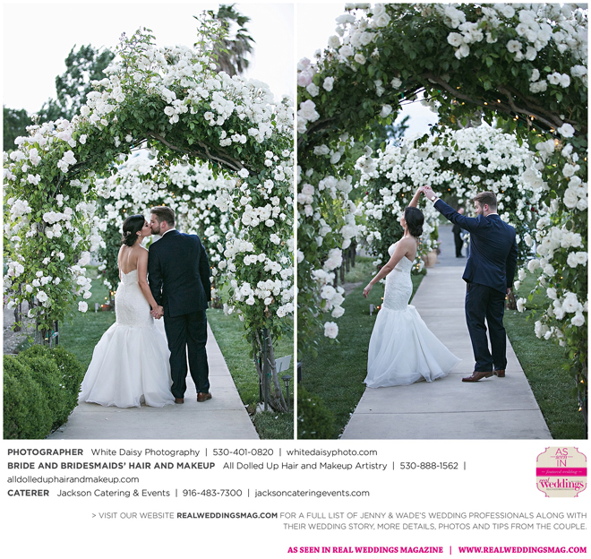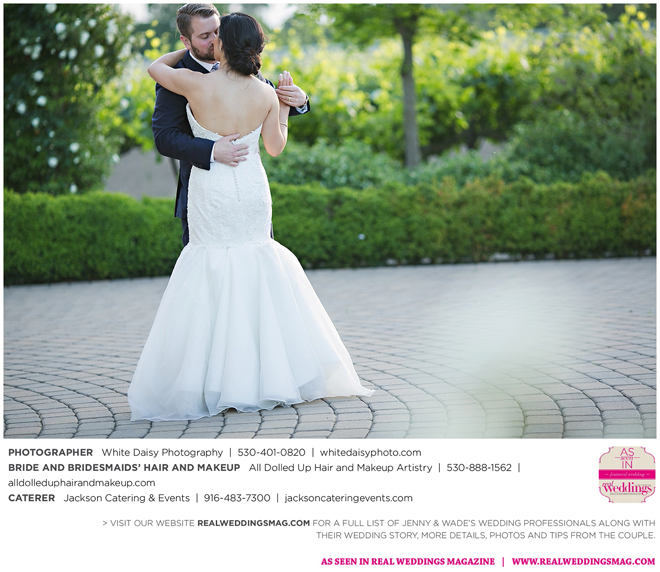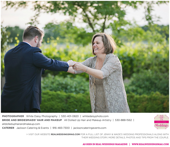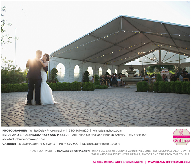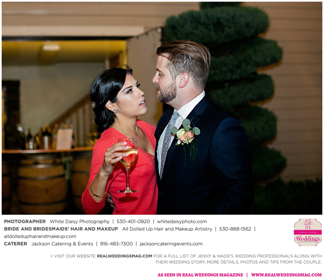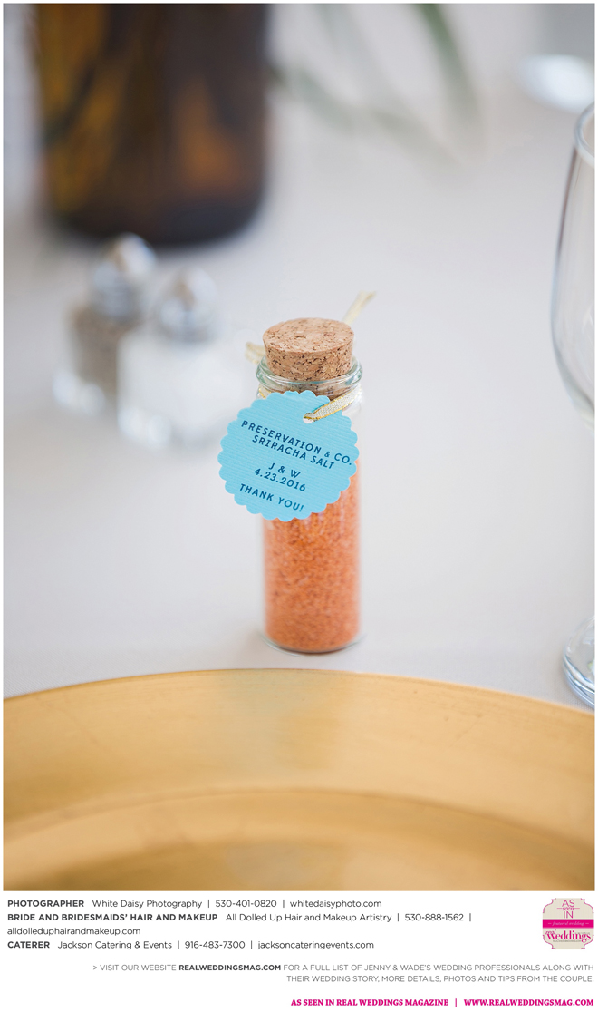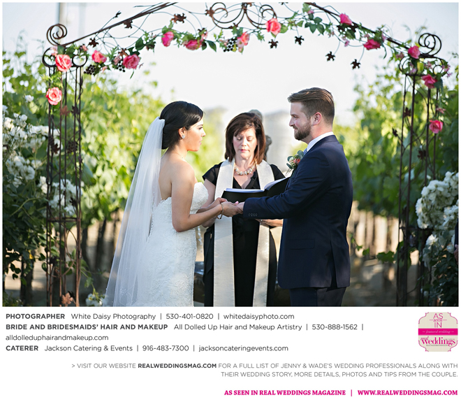Jenny says her most vivid memory was standing at the ceremony, holding hands with Wade. “We would take turns squeezing the other’s hand when there was something funny or meaningful being said. It was one of the more peaceful moments of the day since we weren’t posing, dancing or making the rounds. It was really just the two of us in a little bubble.”