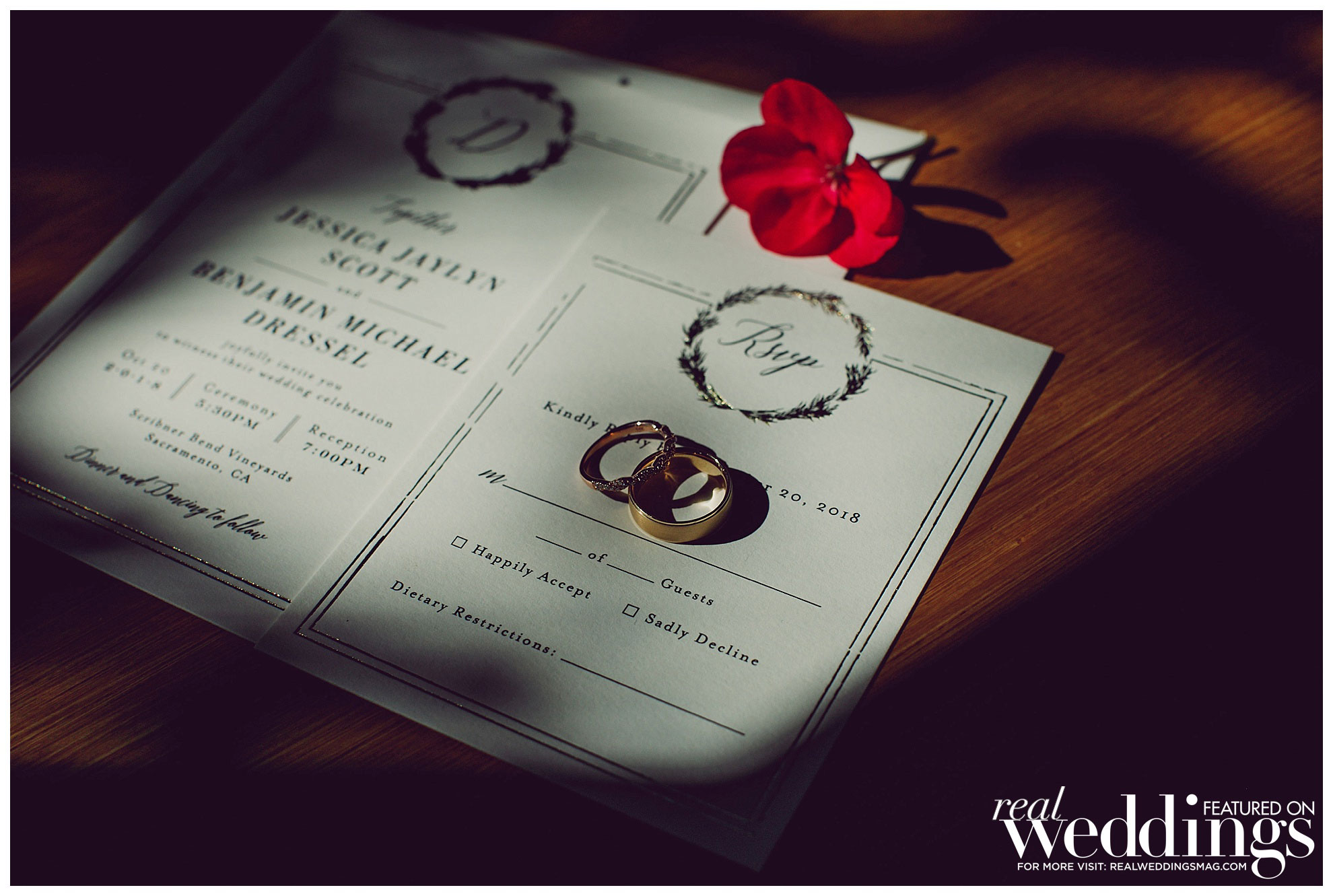 Jess said yes as well as saying, “It’s about damn time!” And into planning they went. With Jess’s experience as an event coordinator, she knew what she wanted from their wedding day. “I love to plan,” she says. “Assisting with other couples’ weddings is definitely more fun than planning your own wedding, but I loved almost every minute of the planning. My favorite pieces were the details—décor pieces, guest book, table numbers—and the progression of everything as it came closer to the deadline.”