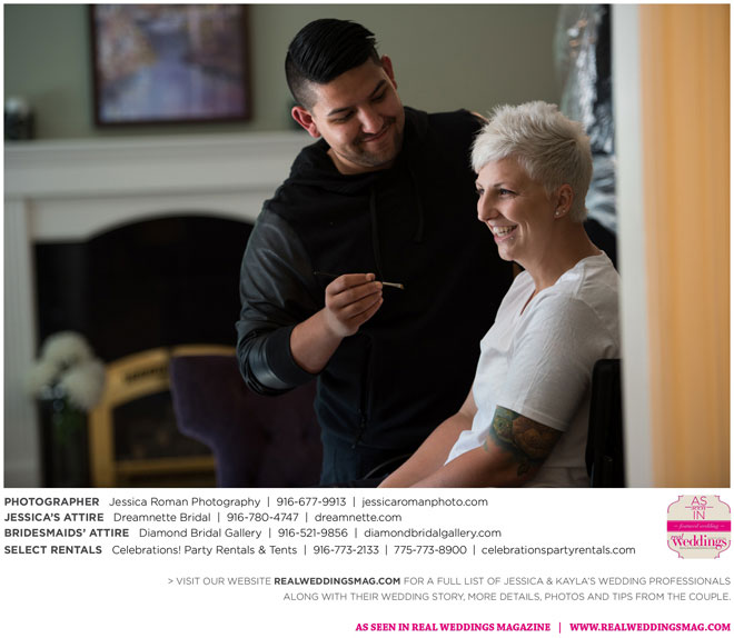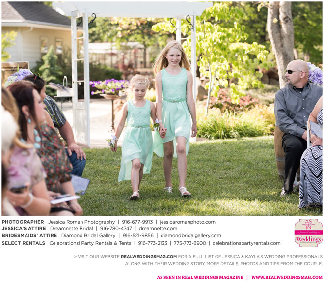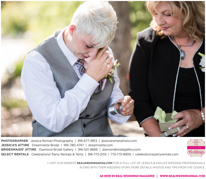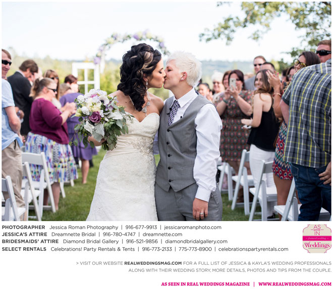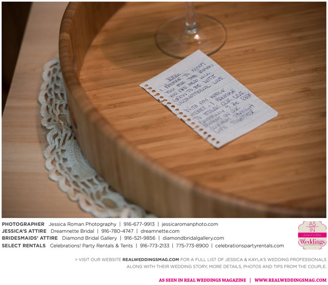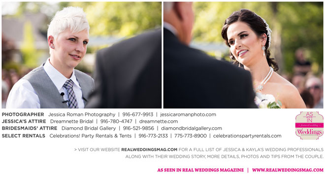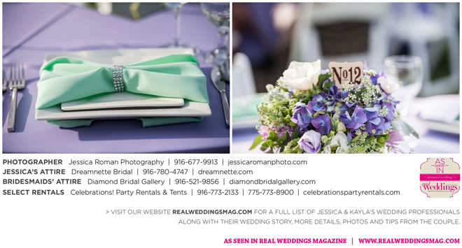 As they started planning, they realized some of the biggest details were the easiest to figure out. “We both knew beforehand that we’d get married at Kayla’s parents’ house,” Jessica says. “They’ve held many weddings there before, so we used vendors we knew from previous weddings.”