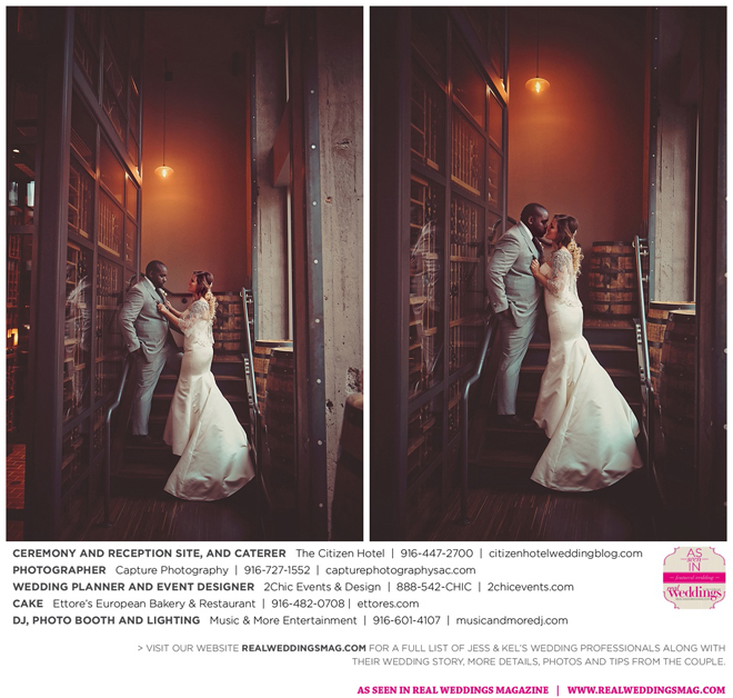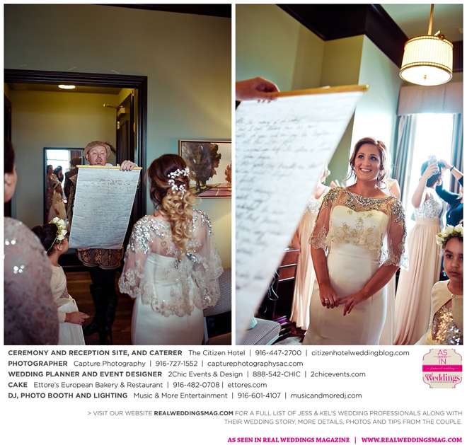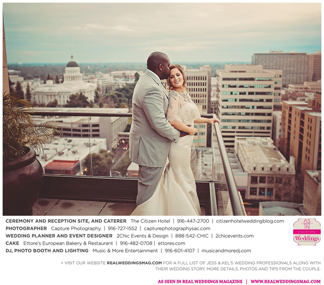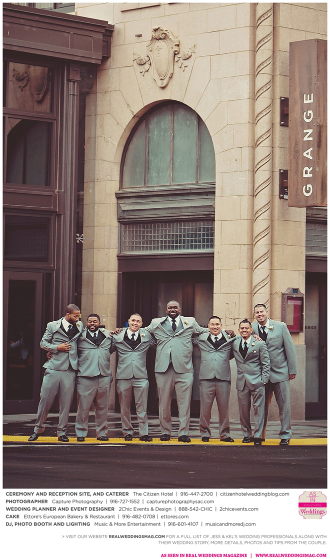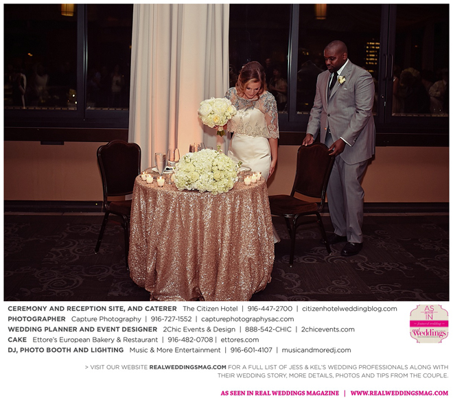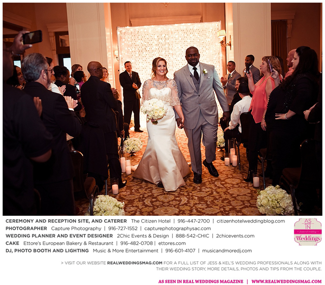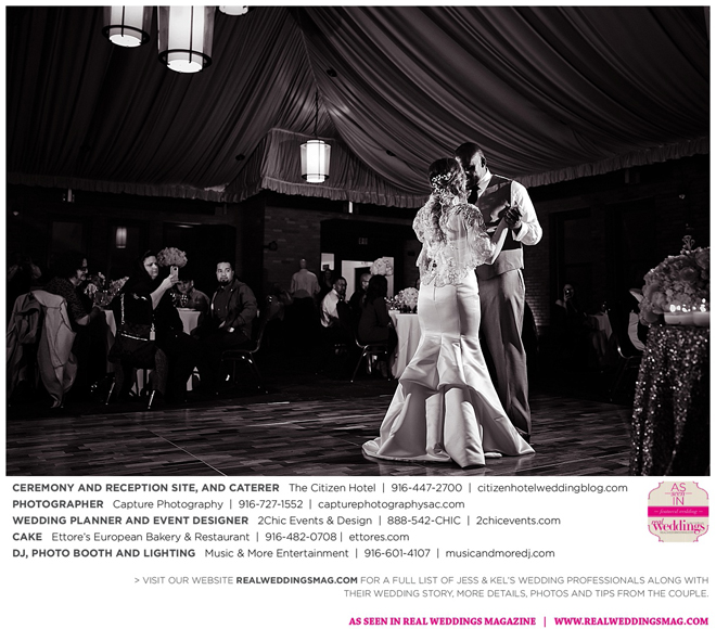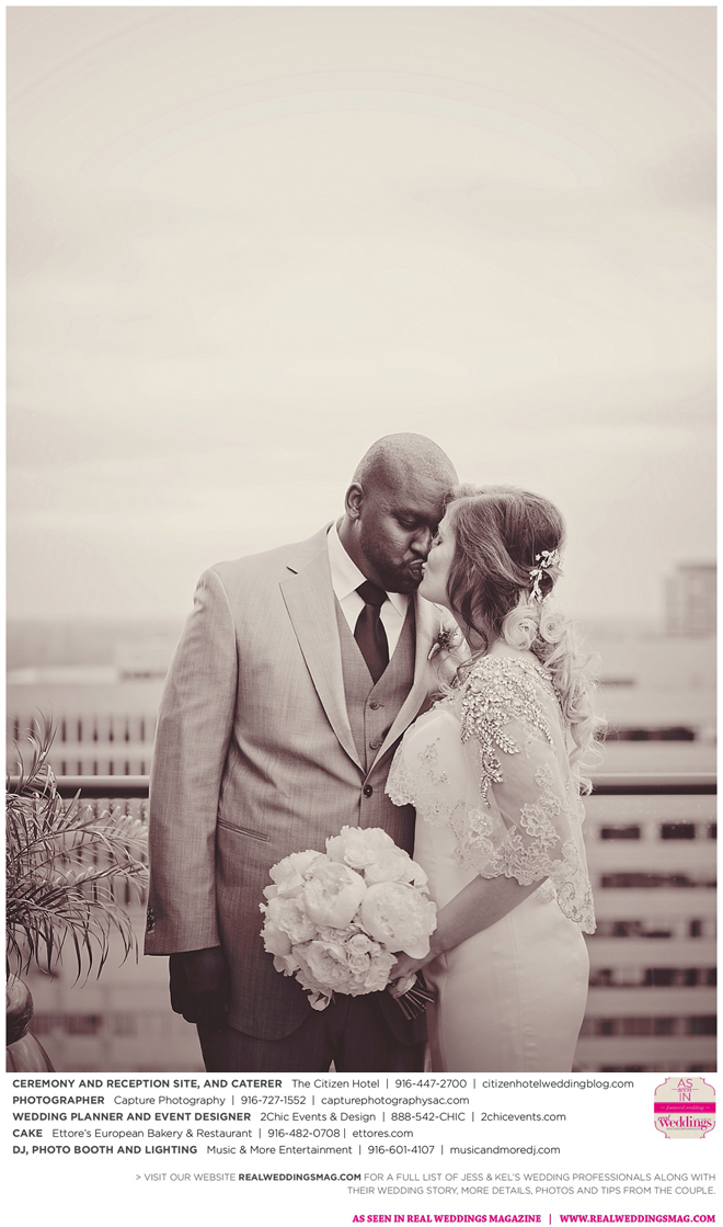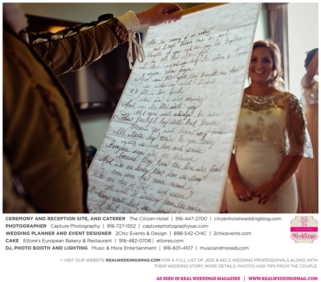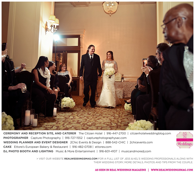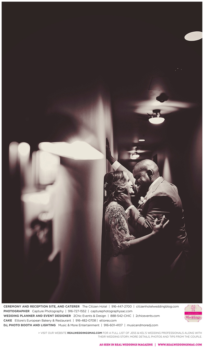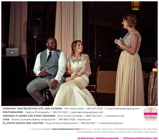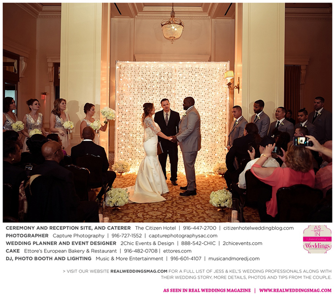 The couple exchanged vows in a romantic ceremony in The Citizen Hotel’s Plaza Park Ballroom surrounded by friends and a backdrop of soft white lights. “I was very nervous prior to coming in from the lobby,” recalls Kel. “I was trying to shake the nerves out by hyping myself up as if I was getting ready to step on a football field. As the door opened and everyone rose to their feet, all I did was hope I wouldn’t trip while walking down the aisle.”
