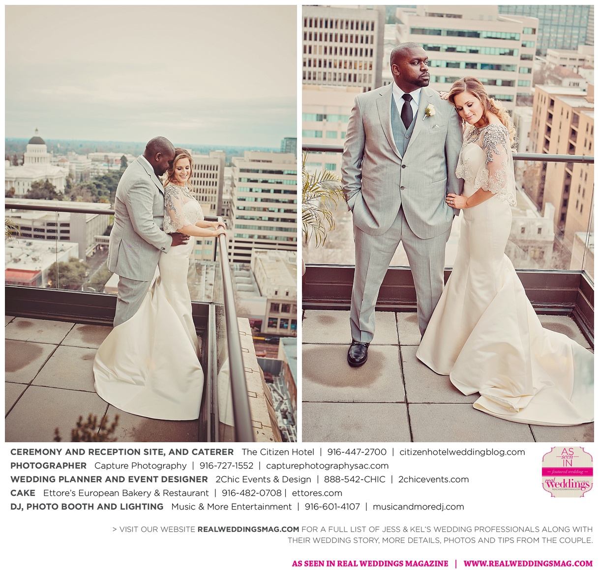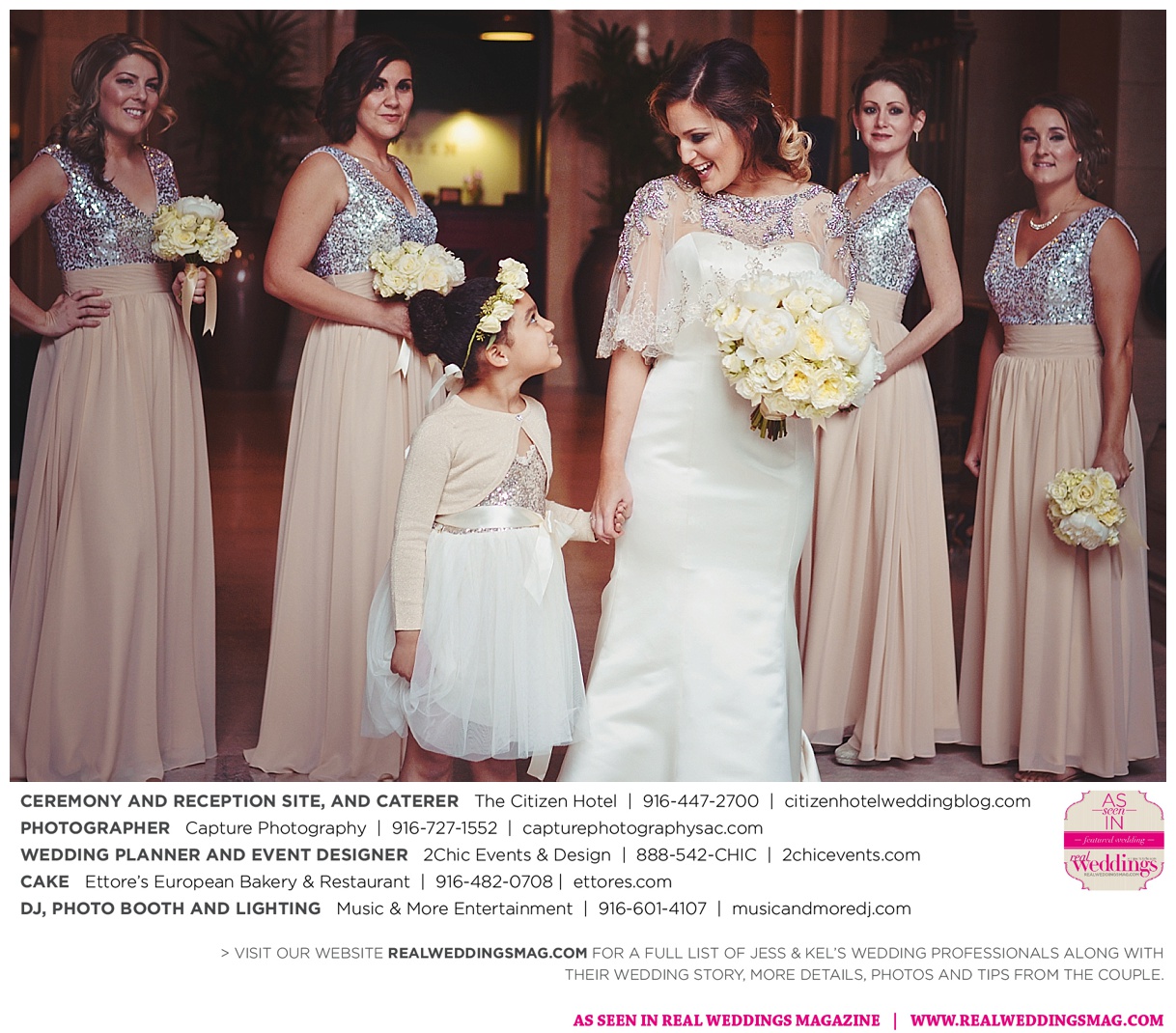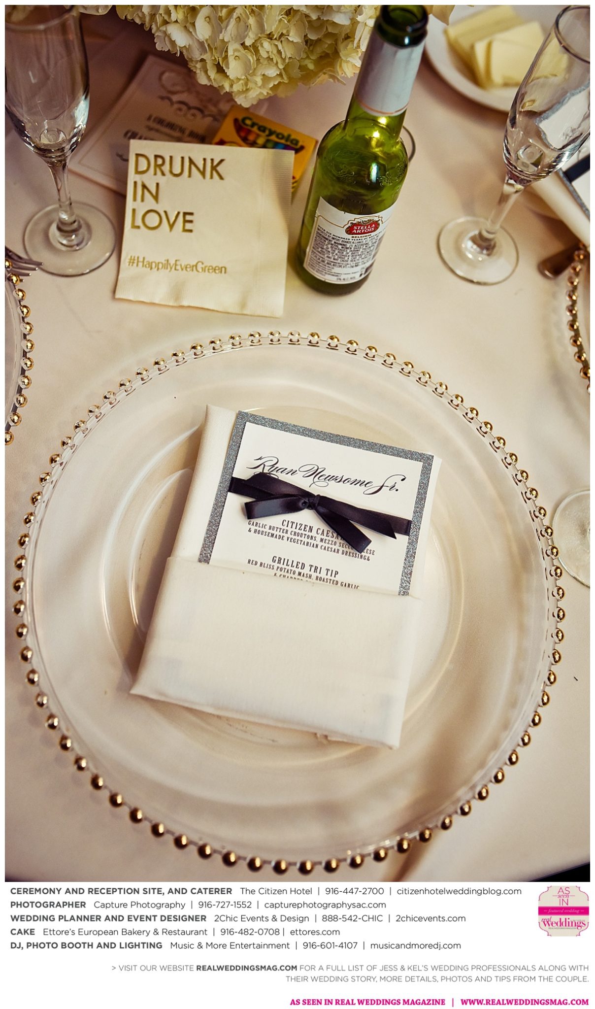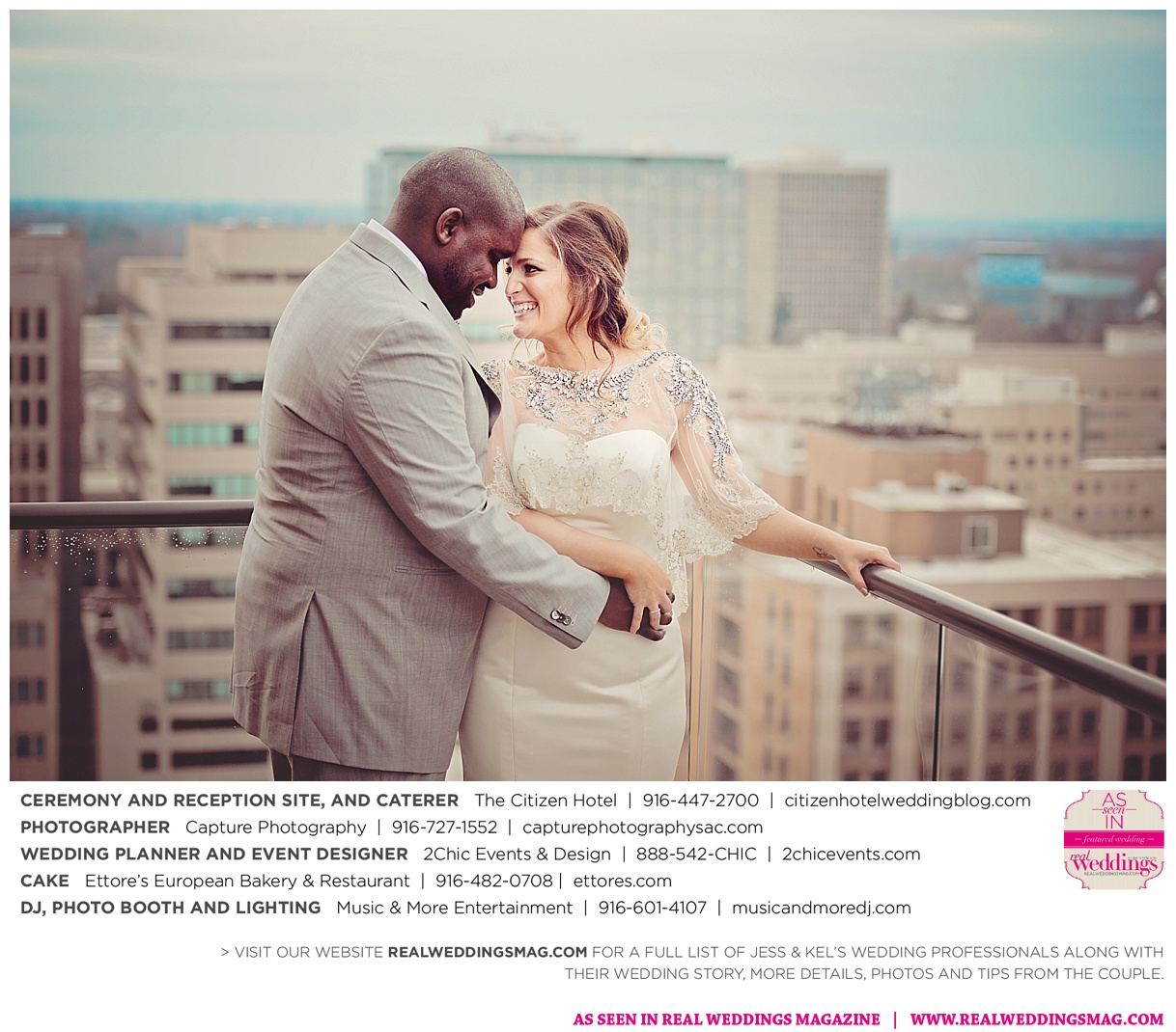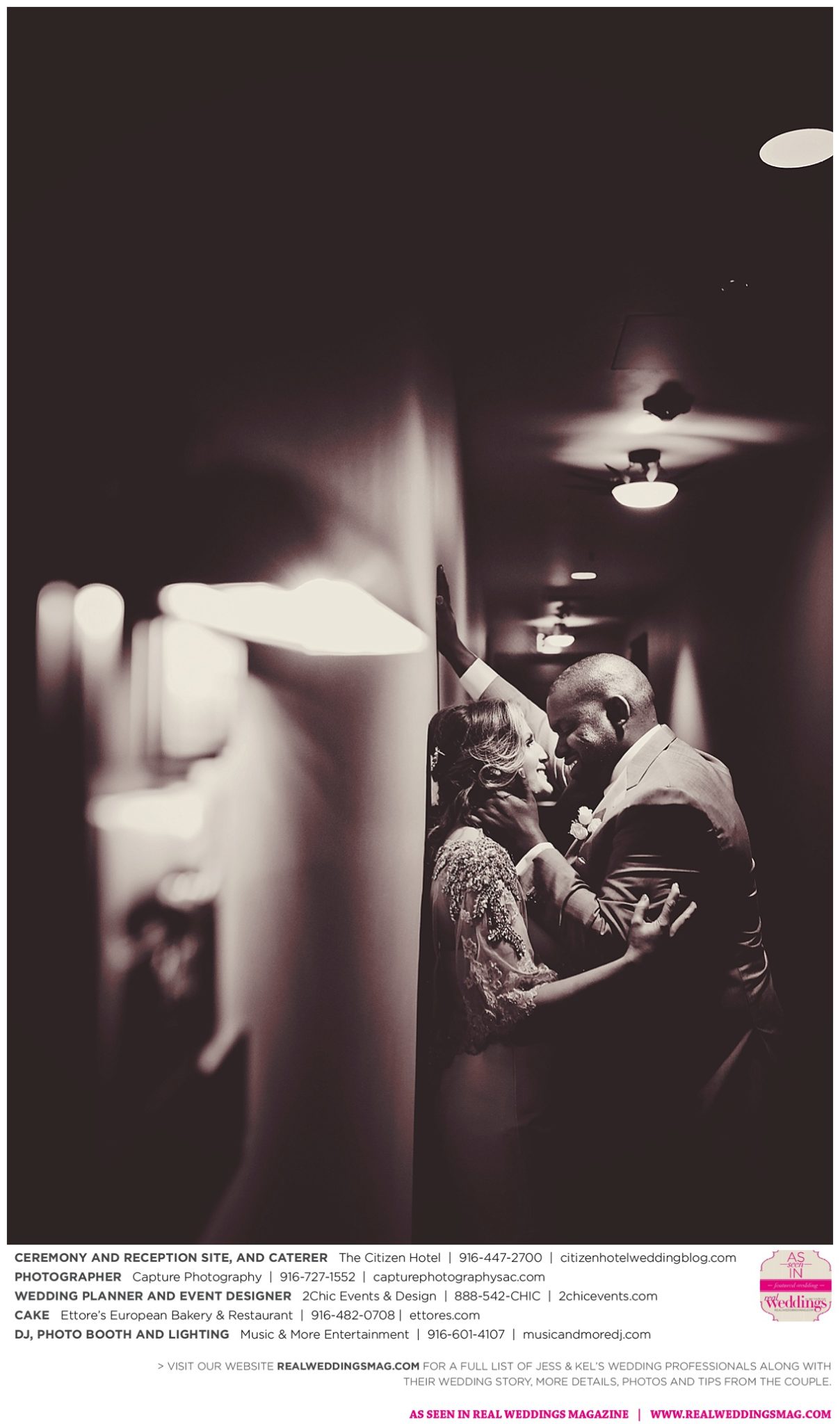The couple exchanged vows in a romantic ceremony in The Citizen Hotel’s Plaza Park Ballroom surrounded by friends and a backdrop of soft white lights. “I was very nervous prior to coming in from the lobby,” recalls Kel. “I was trying to shake the nerves out by hyping myself up as if I was getting ready to step on a football field. As the door opened and everyone rose to their feet, all I did was hope I wouldn’t trip while walking down the aisle.”