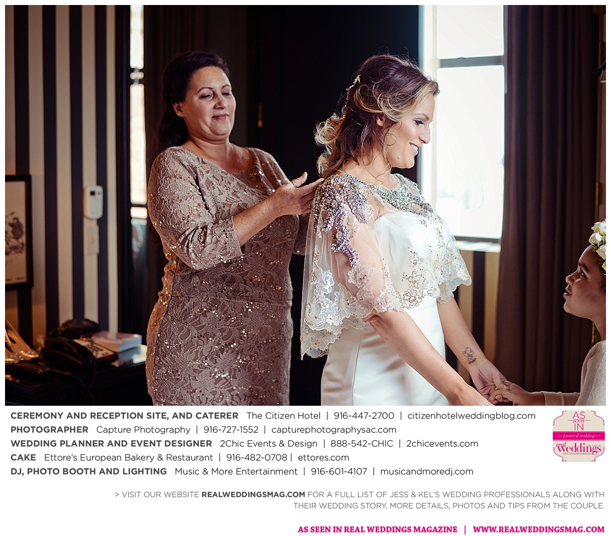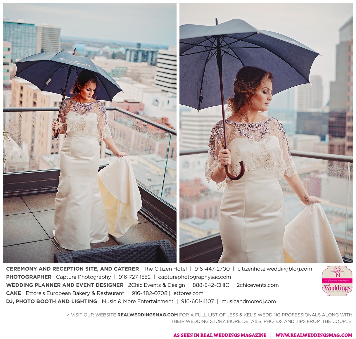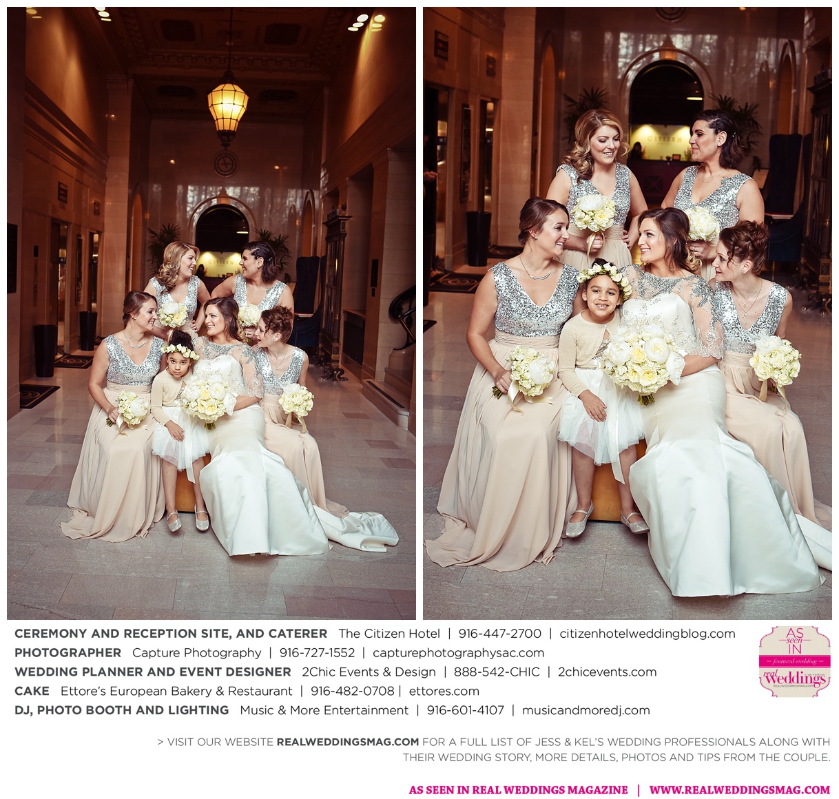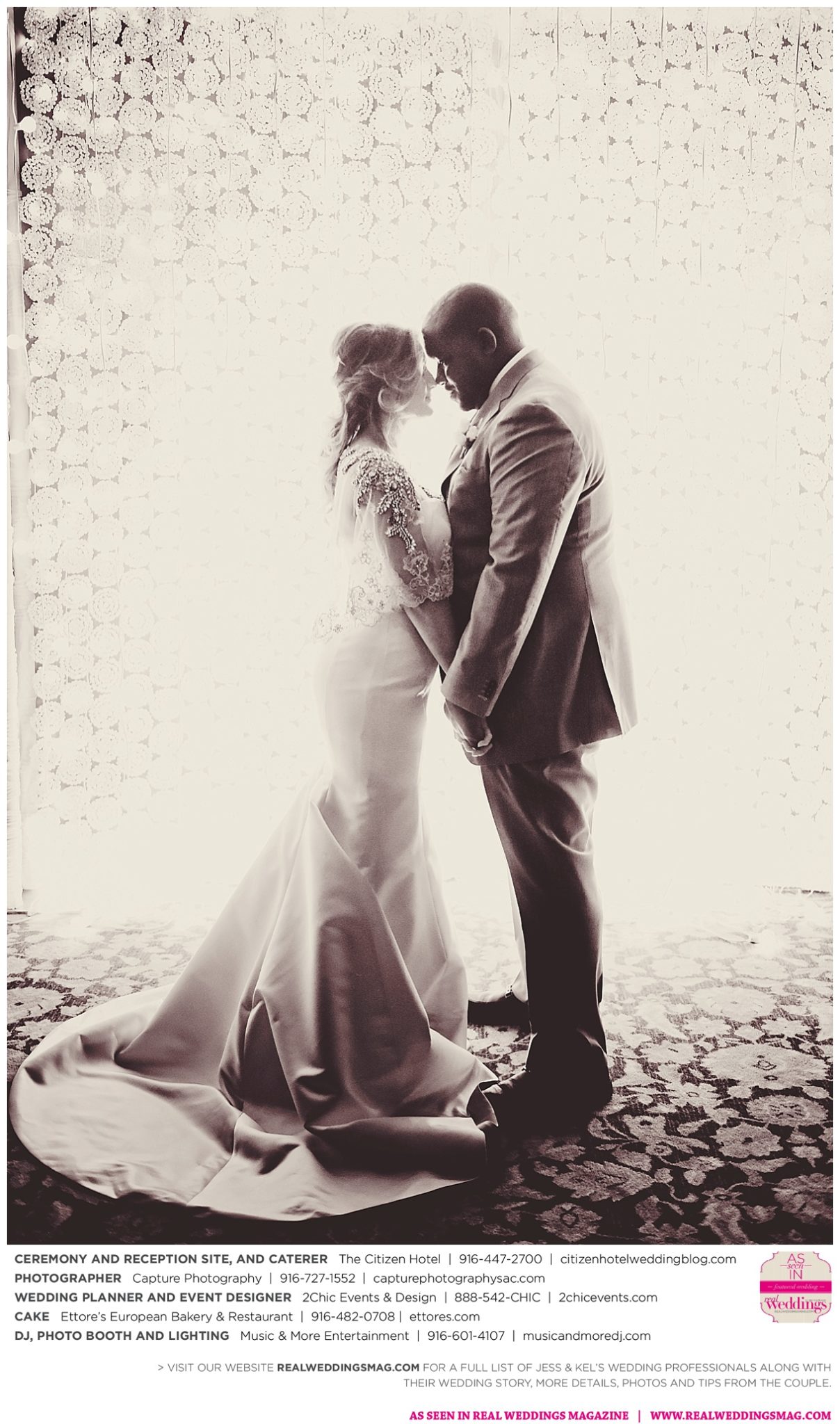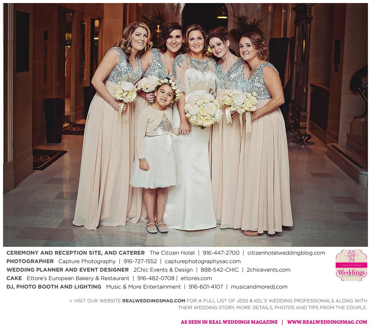 The couple exchanged vows in a romantic ceremony in The Citizen Hotel’s Plaza Park Ballroom surrounded by friends and a backdrop of soft white lights. “I was very nervous prior to coming in from the lobby,” recalls Kel. “I was trying to shake the nerves out by hyping myself up as if I was getting ready to step on a football field. As the door opened and everyone rose to their feet, all I did was hope I wouldn’t trip while walking down the aisle.”