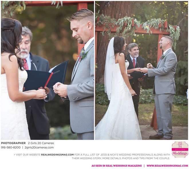 The ceremony was sentimental and emotional for Jessi. “I felt so proud that such a beautiful and special woman was walking down the aisle to marry me,” says Nick. “I was just so excited and so happy to call her mine.”