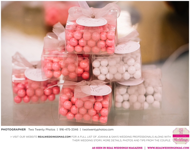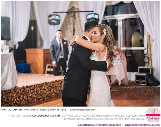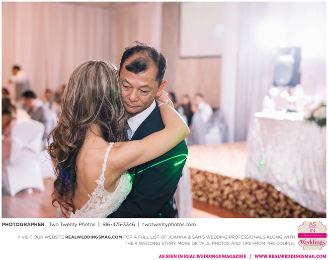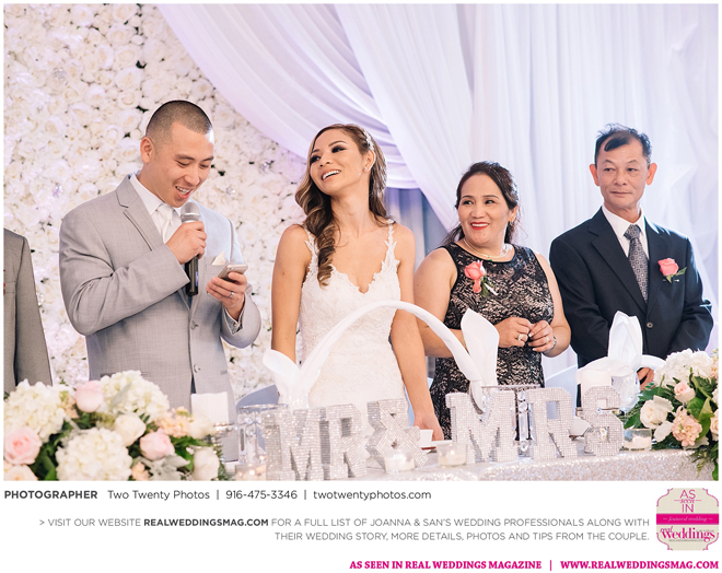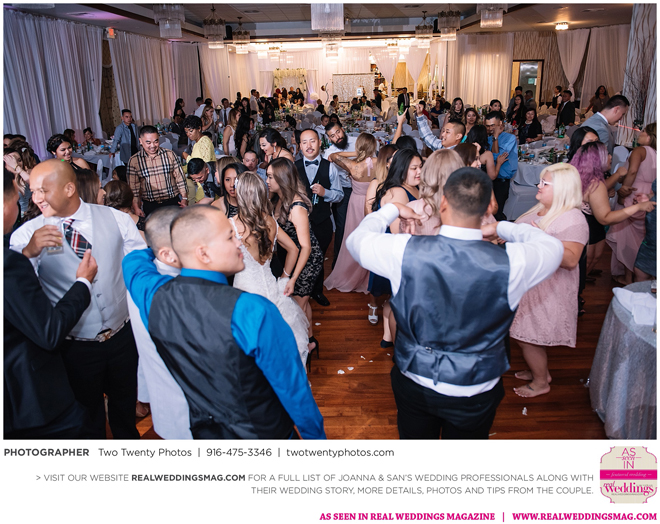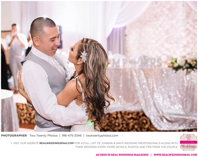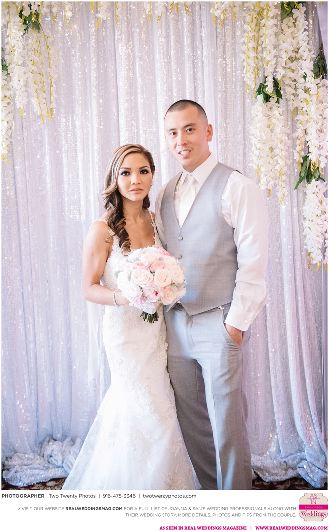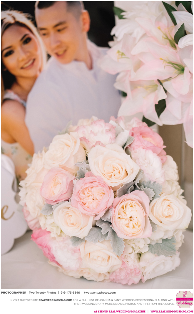 Joanna was impressed with how all the wedding details came together like the flowers, décor and cake. “It honestly felt like a dream,” says Joanna. “Our family and friends were all smiling from cheek to cheek and San looked handsome as ever.”