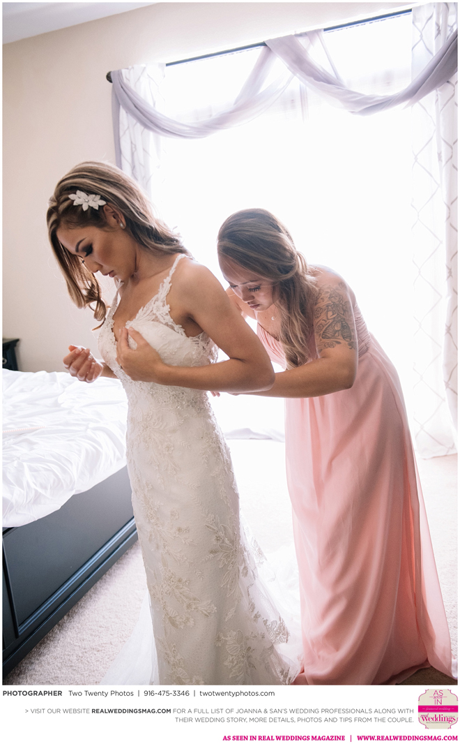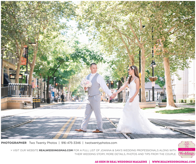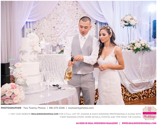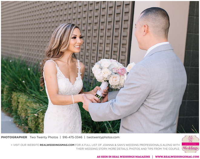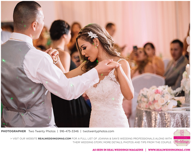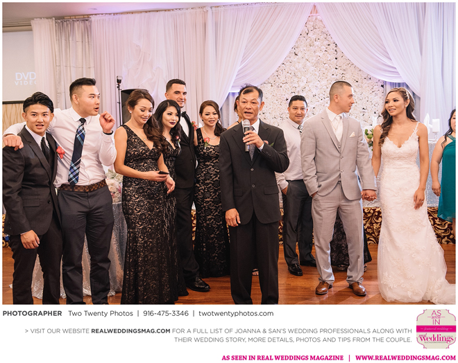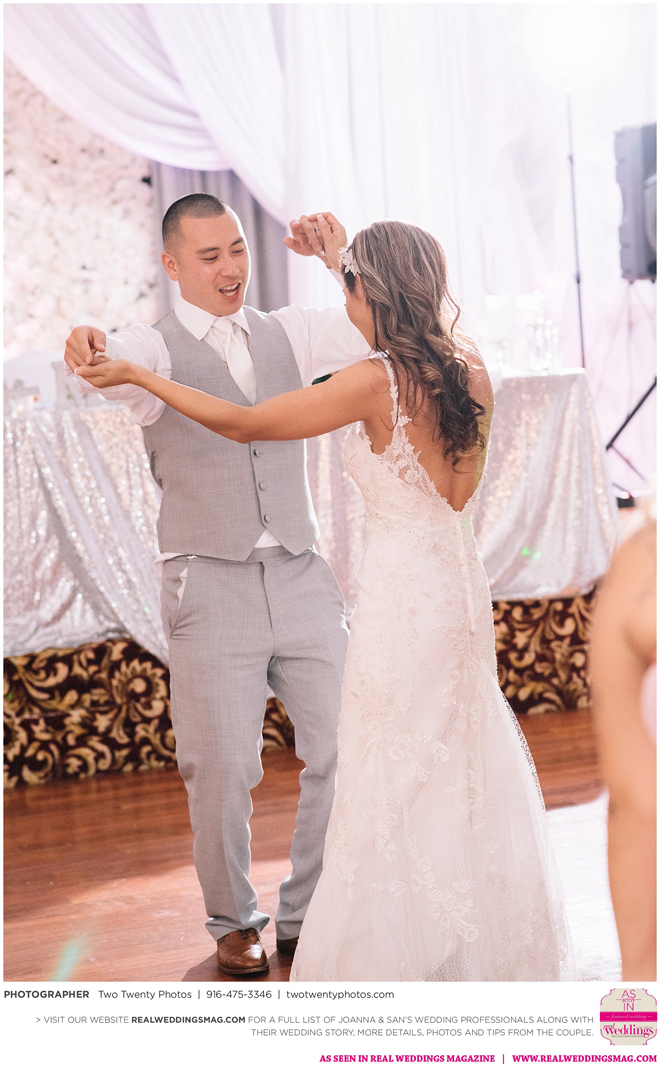 Joanna was impressed with how all the wedding details came together like the flowers, décor and cake. “It honestly felt like a dream,” says Joanna. “Our family and friends were all smiling from cheek to cheek and San looked handsome as ever.”