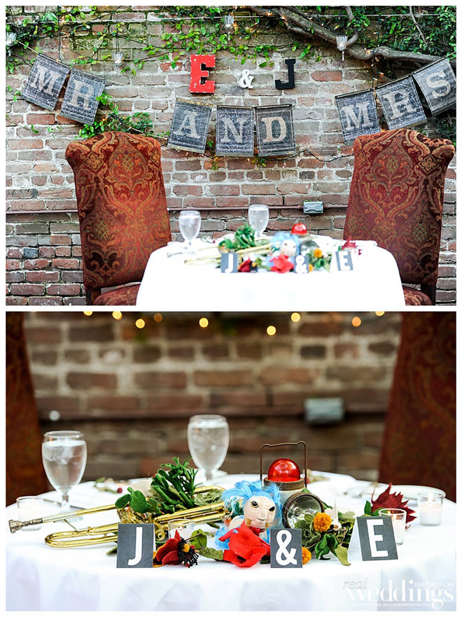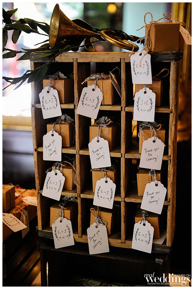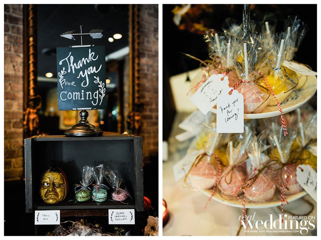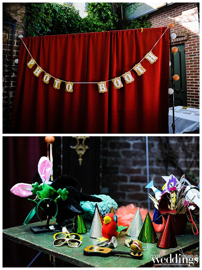 The wedding fun continued, especially when guests played April Fools’ pranks using props the couple left in a basket including whoopee cushions and hand buzzers. “Watching the kids dressed up in wigs and mustaches from the photo booth try to trick people with whoopee cushions was cracking me up all night,” says Johanna.