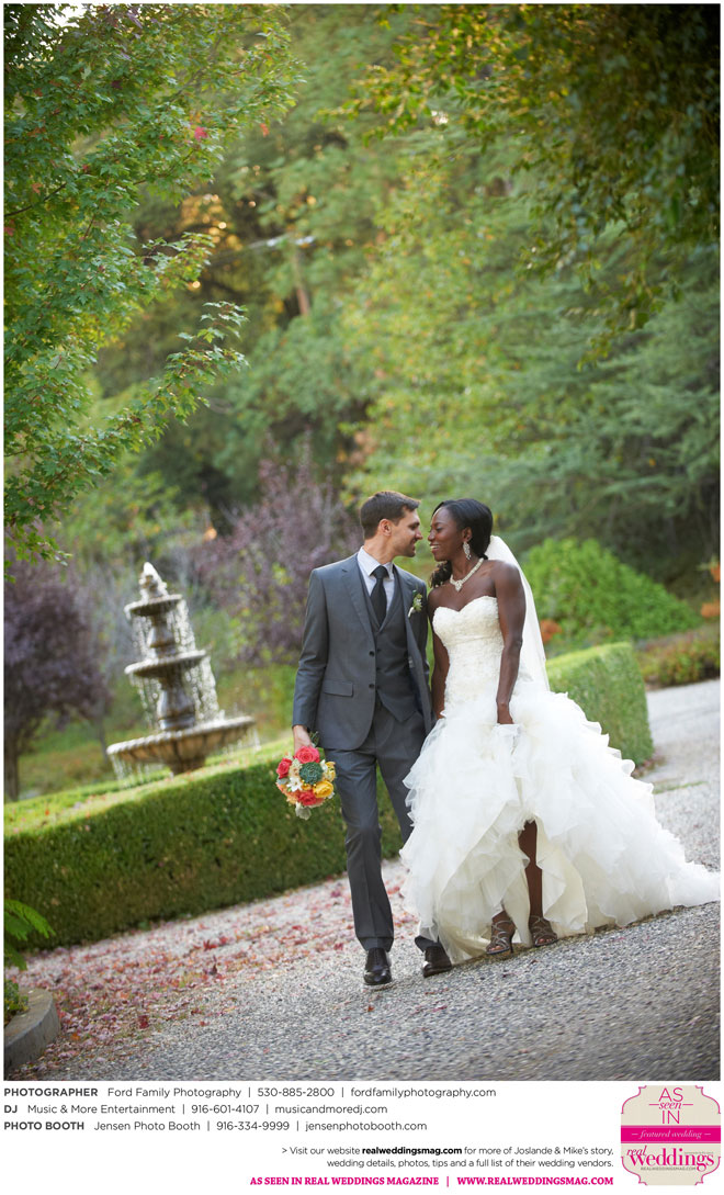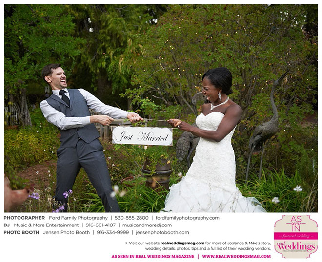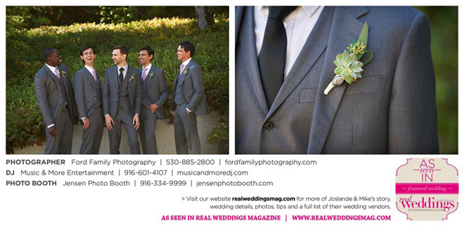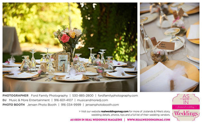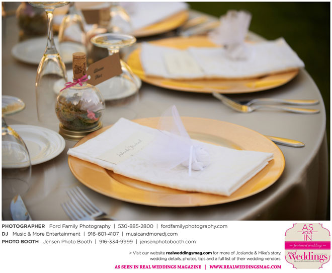 A year later, the couple married with a ceremony and reception at Monte Verde Inn in Foresthill. “We had an outdoor ceremony under a natural canopy of California redwoods,” says Joslande. “We had two readings, and then we expressed our devoted love for each other in front of our amazing friends and family and lit a unity candle.”