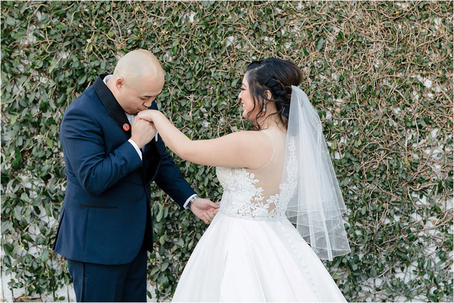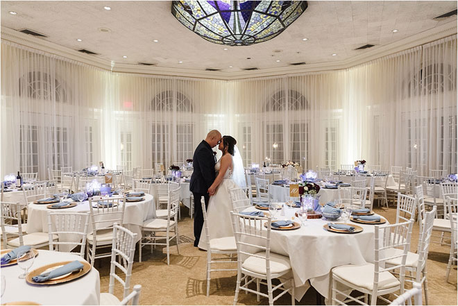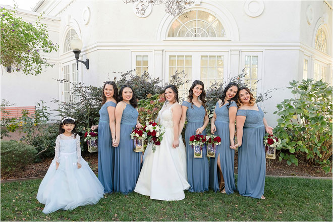 The couple, who are both registered nurses, married nearly a year later. They choose their venue, Vizcaya Sacramento, for its warm garden lights and romantic vibe. The bride is a Disney fan and the dusty blue color scheme helped her vision for an enchanting wedding come to life.