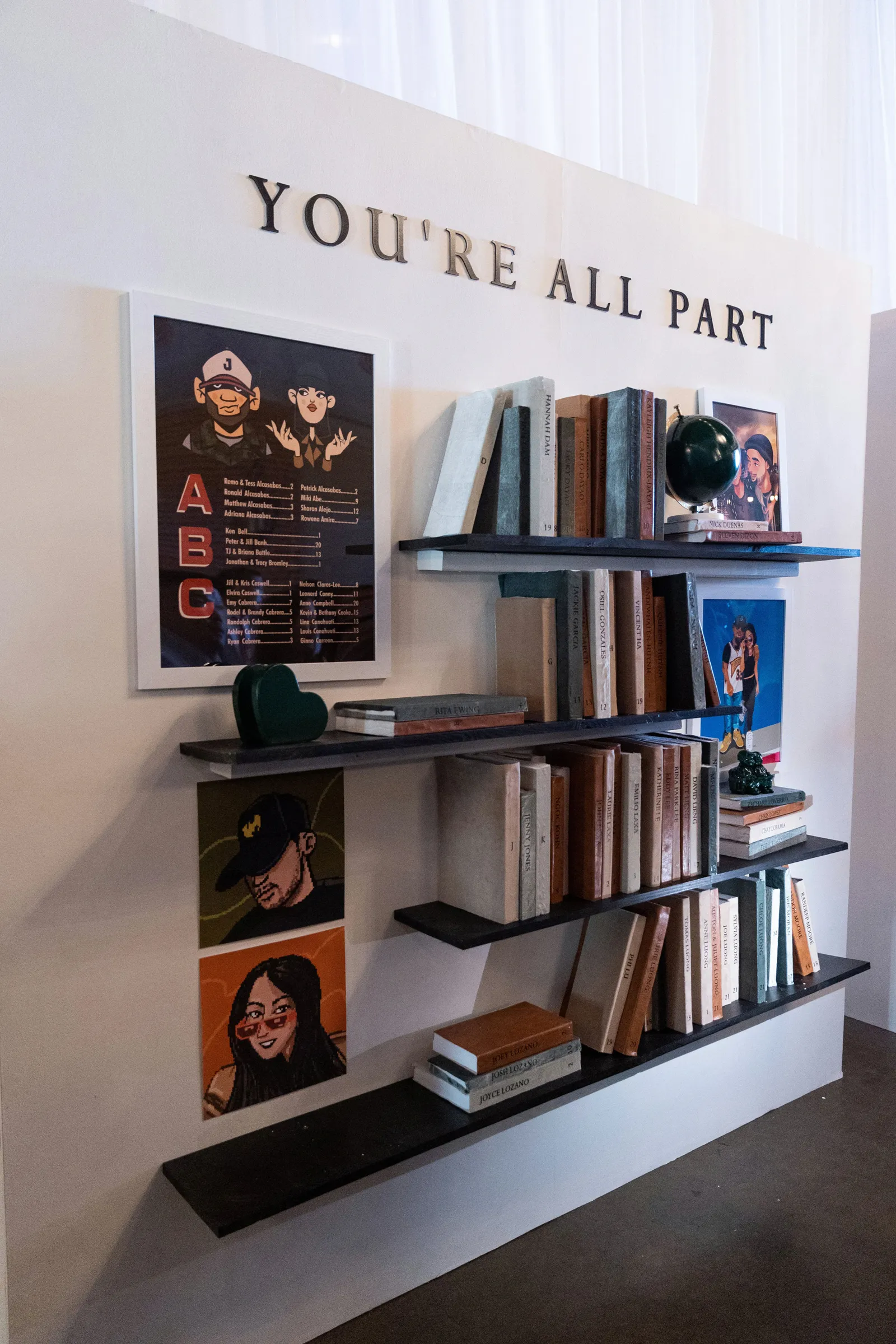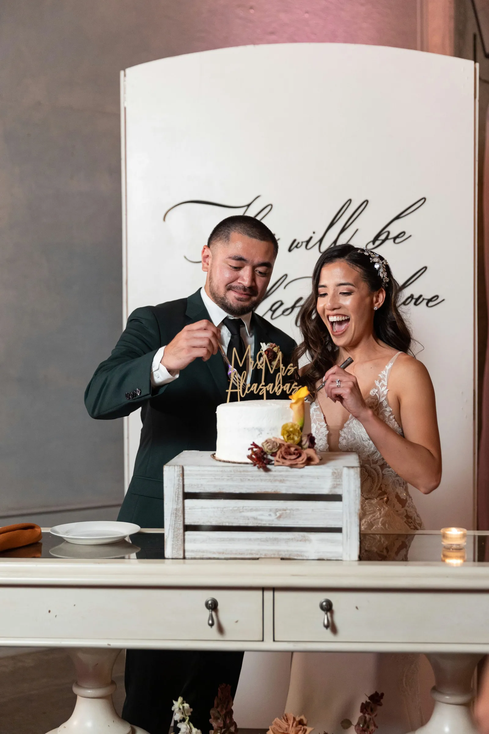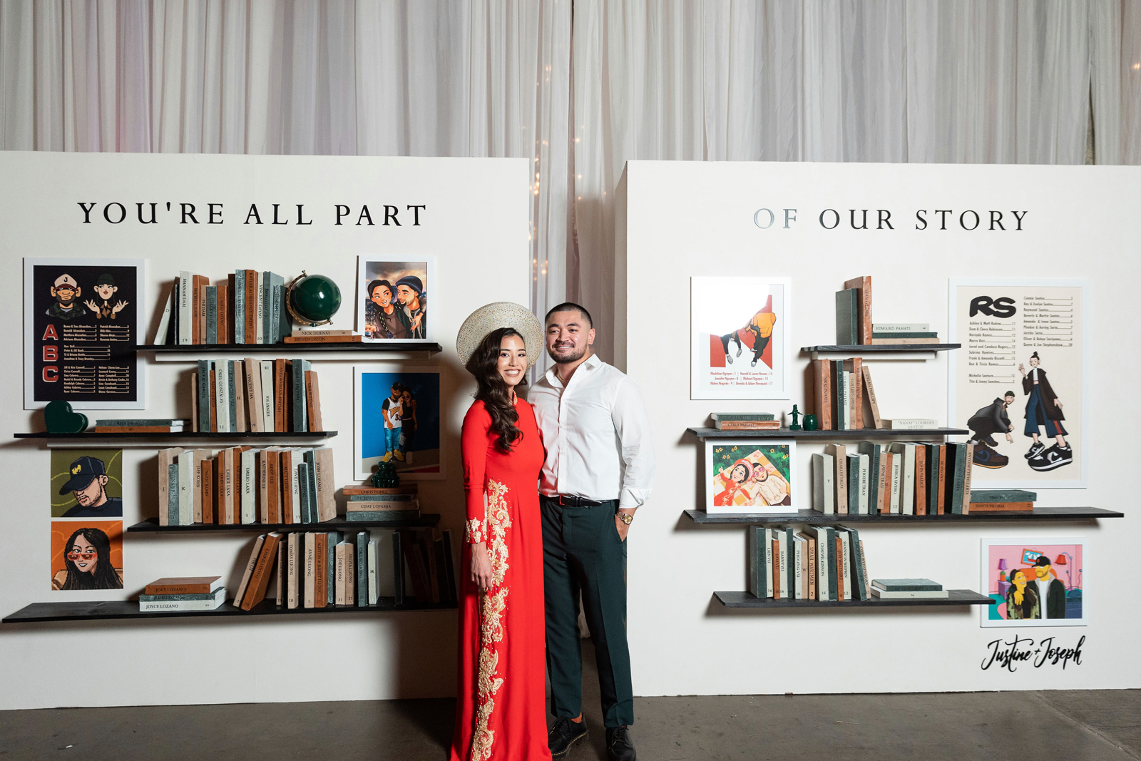 The planning was a fun process. It was a great creative outlet for the both of us to connect and collaborate. Some of our favorite times were seeing some of our ambitious ideas come to life. Like coming up with our escort wall, which ended up being our art gallery with book shelves. We mixed in a few art portraits of ourselves in different styles, along with leather-bound books that had each guests name and table number on them with a title on top that read “You’re All Apart of Our Story” which tied in with our theme perfectly. It’s hard to think of what the worst moments are now that it’s all said and done. Whatever they might have been, they’ve been wiped away by the memories of such an amazing day!