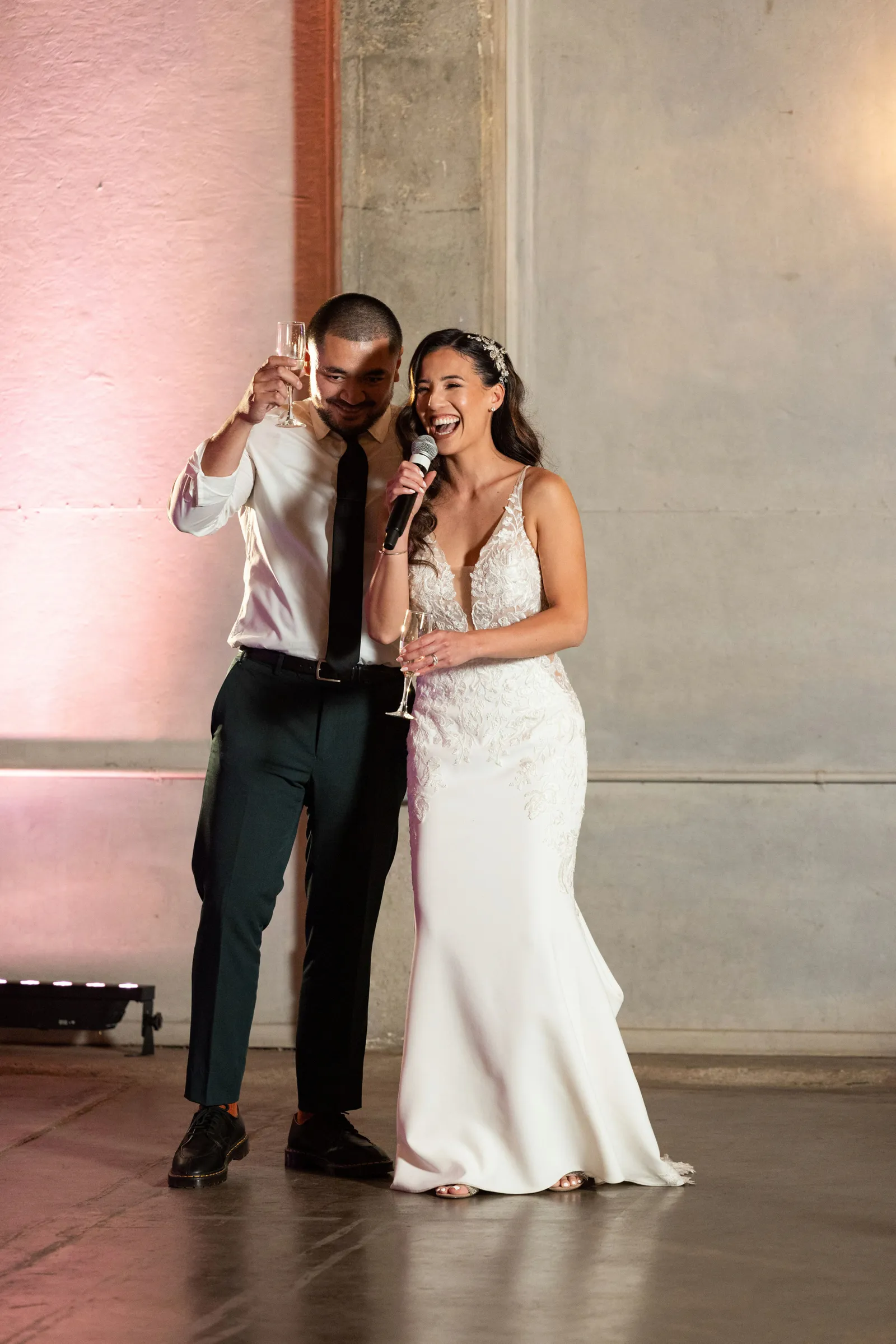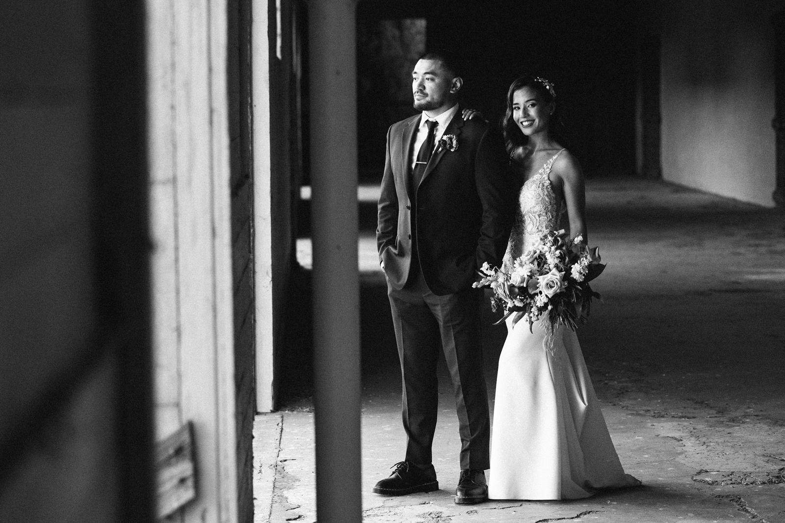 We knew we wanted a venue that was a blank canvas, so we could add our personalities to it—something that felt industrial and modern but classically elegant. The Willow Ballroom & Event Center was the perfect fit! Our vision was an art gallery to help visually tell our “Bay Area love story.” After hashing out some details, it became the overall theme that our special day was built around.