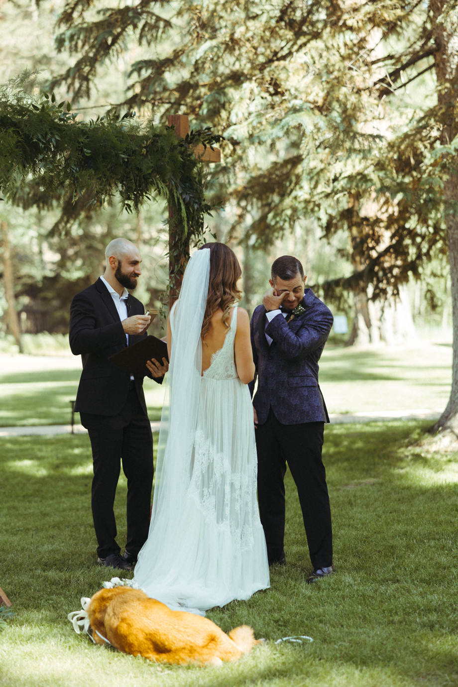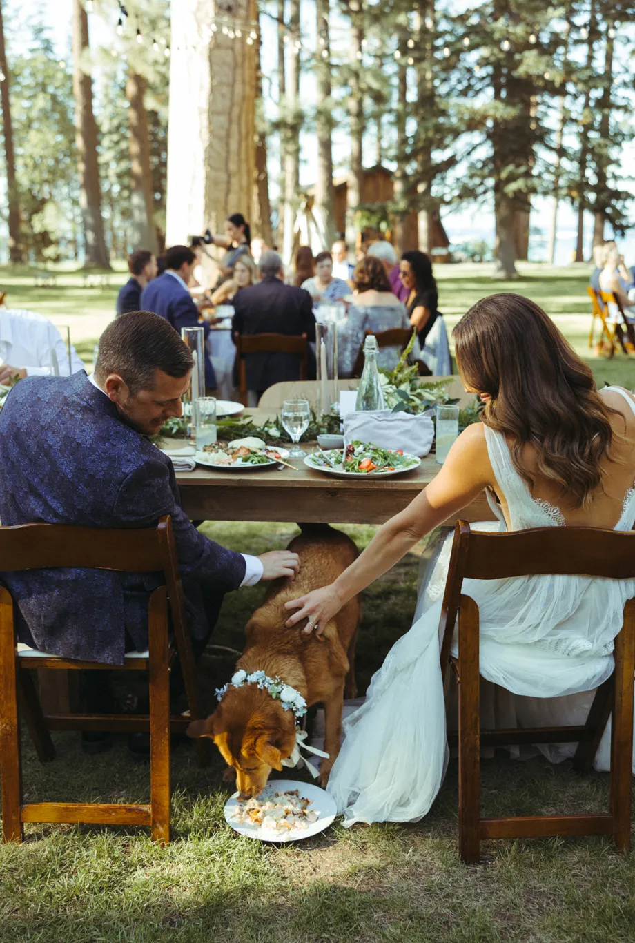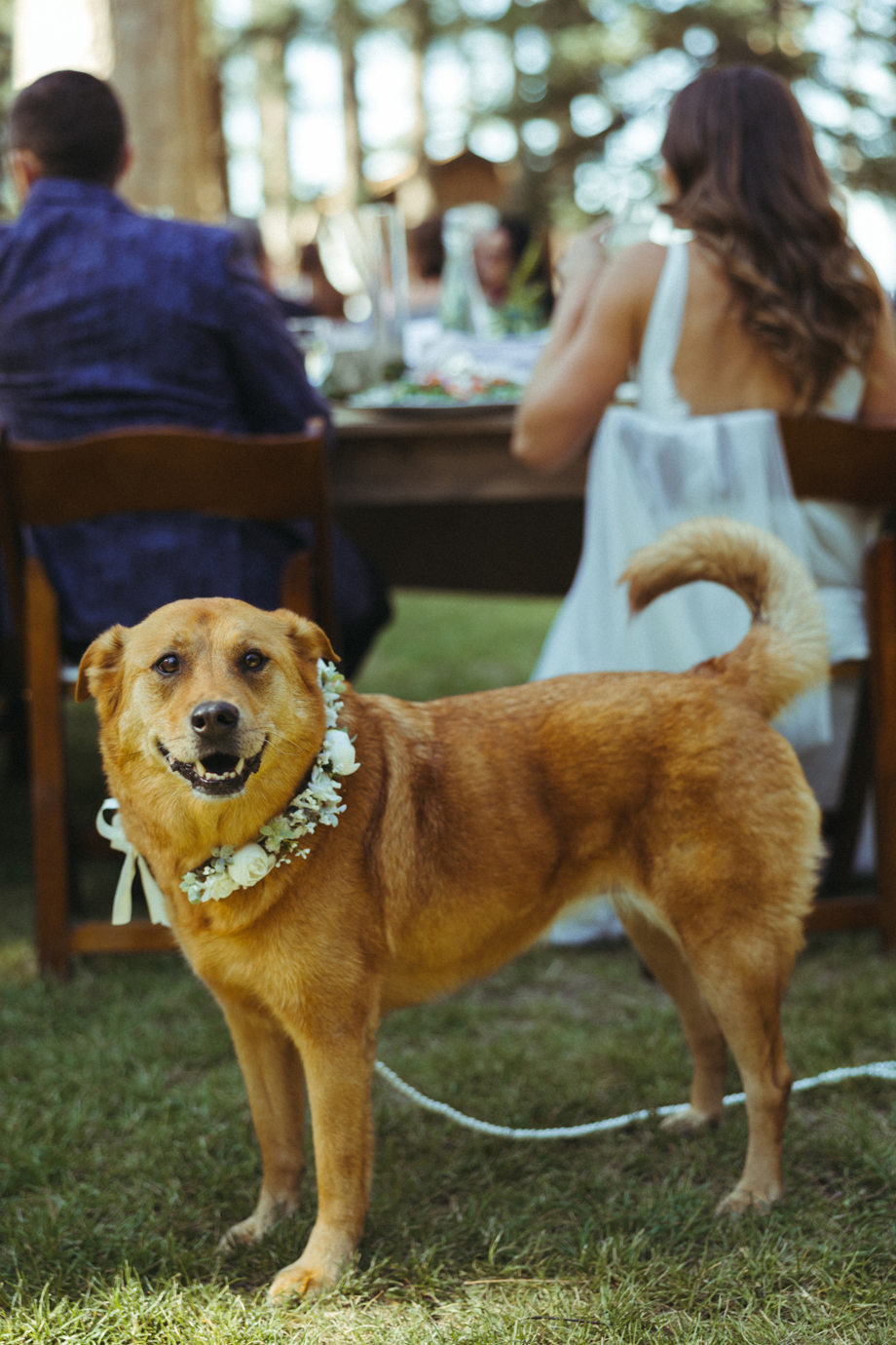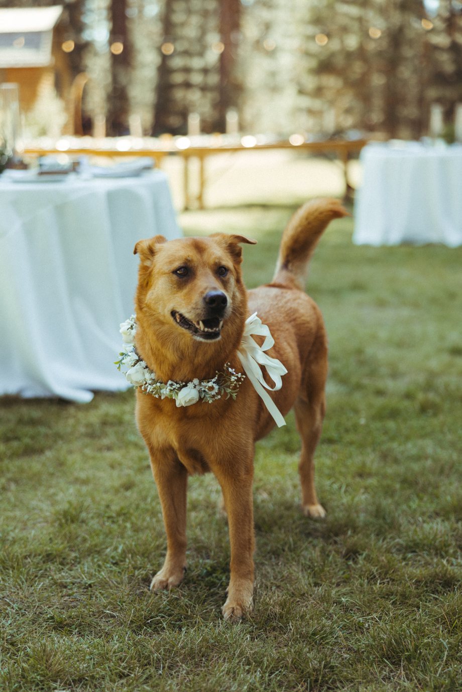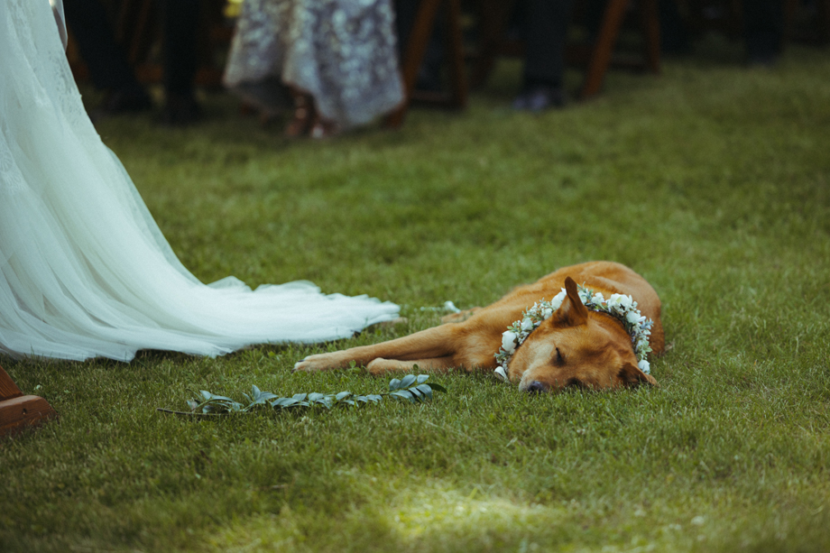 Our dog, Cali, was heavily involved in the wedding. She walked down the aisle and laid at the altar sleeping during the ceremony. She had her own meal at the table and walked around greeting everyone she knew.
