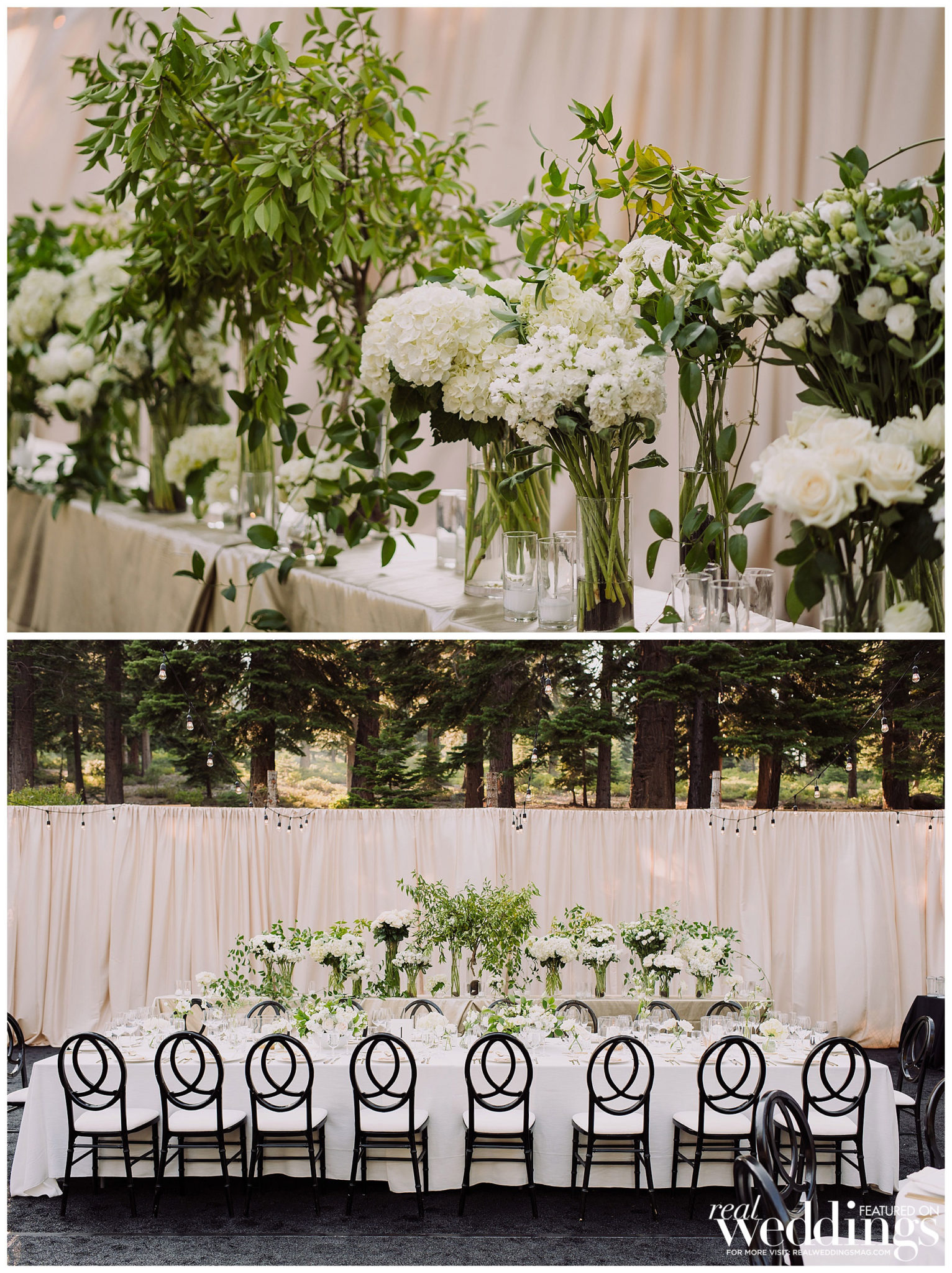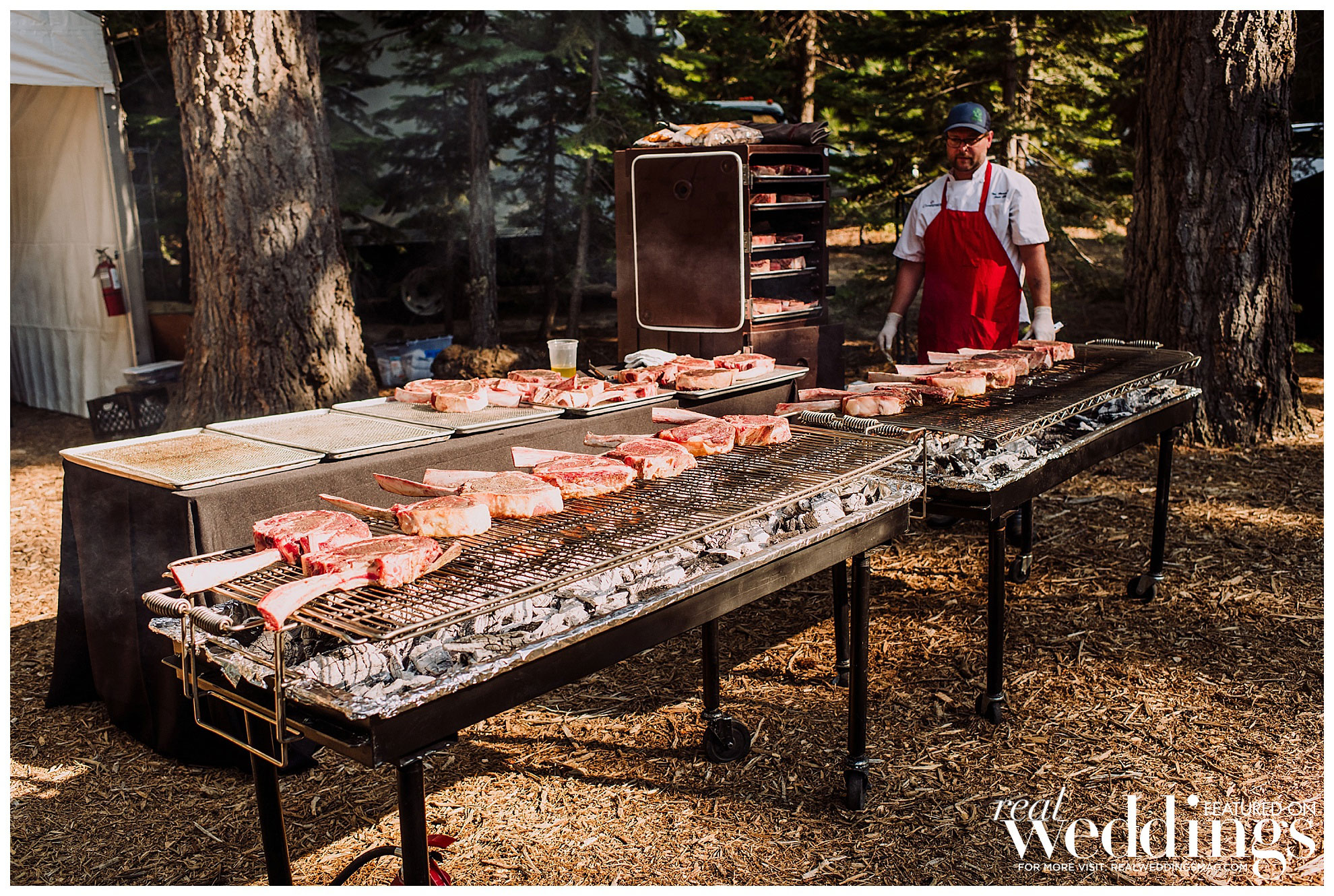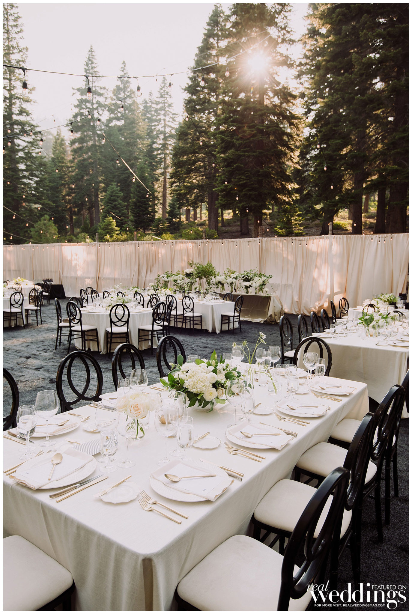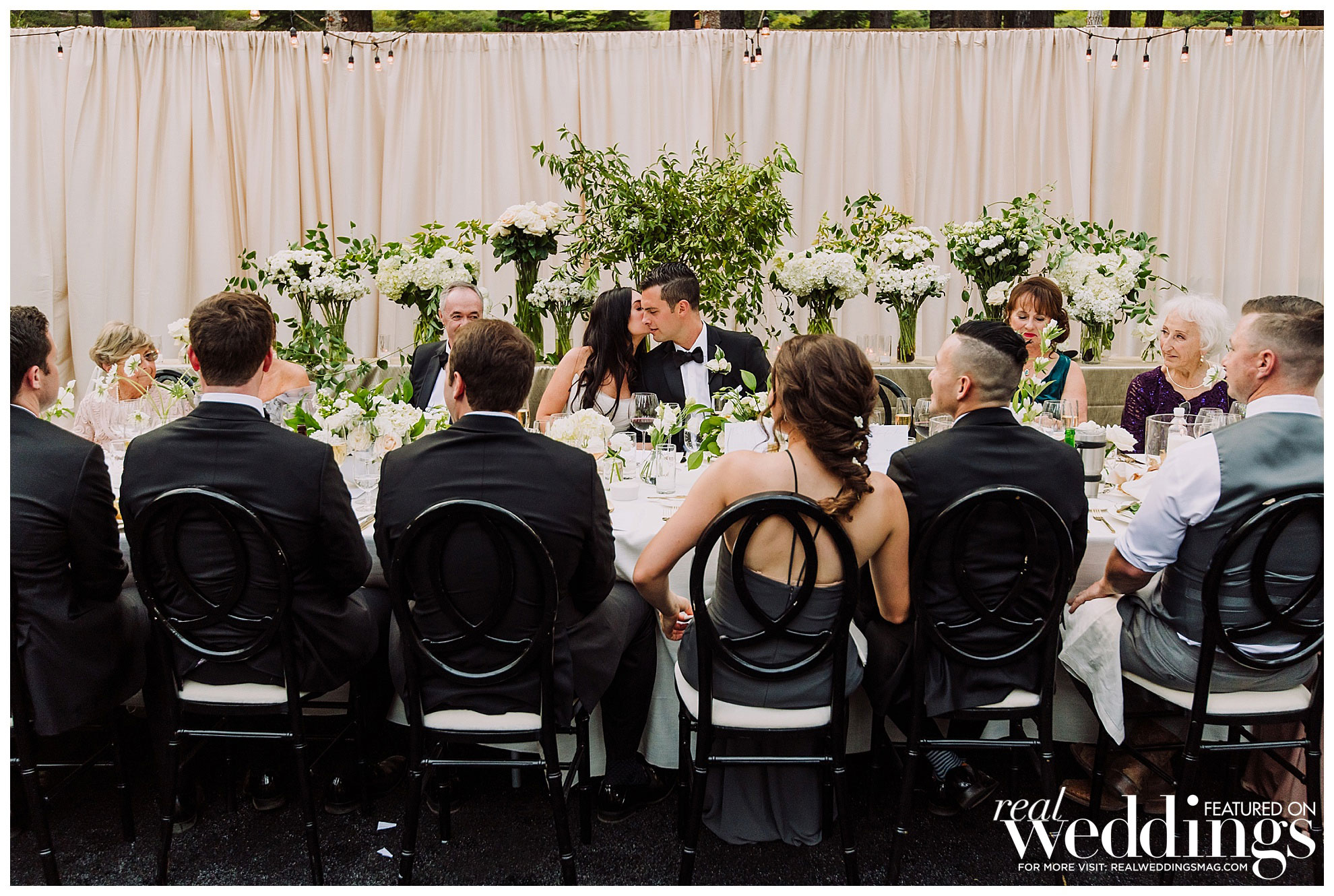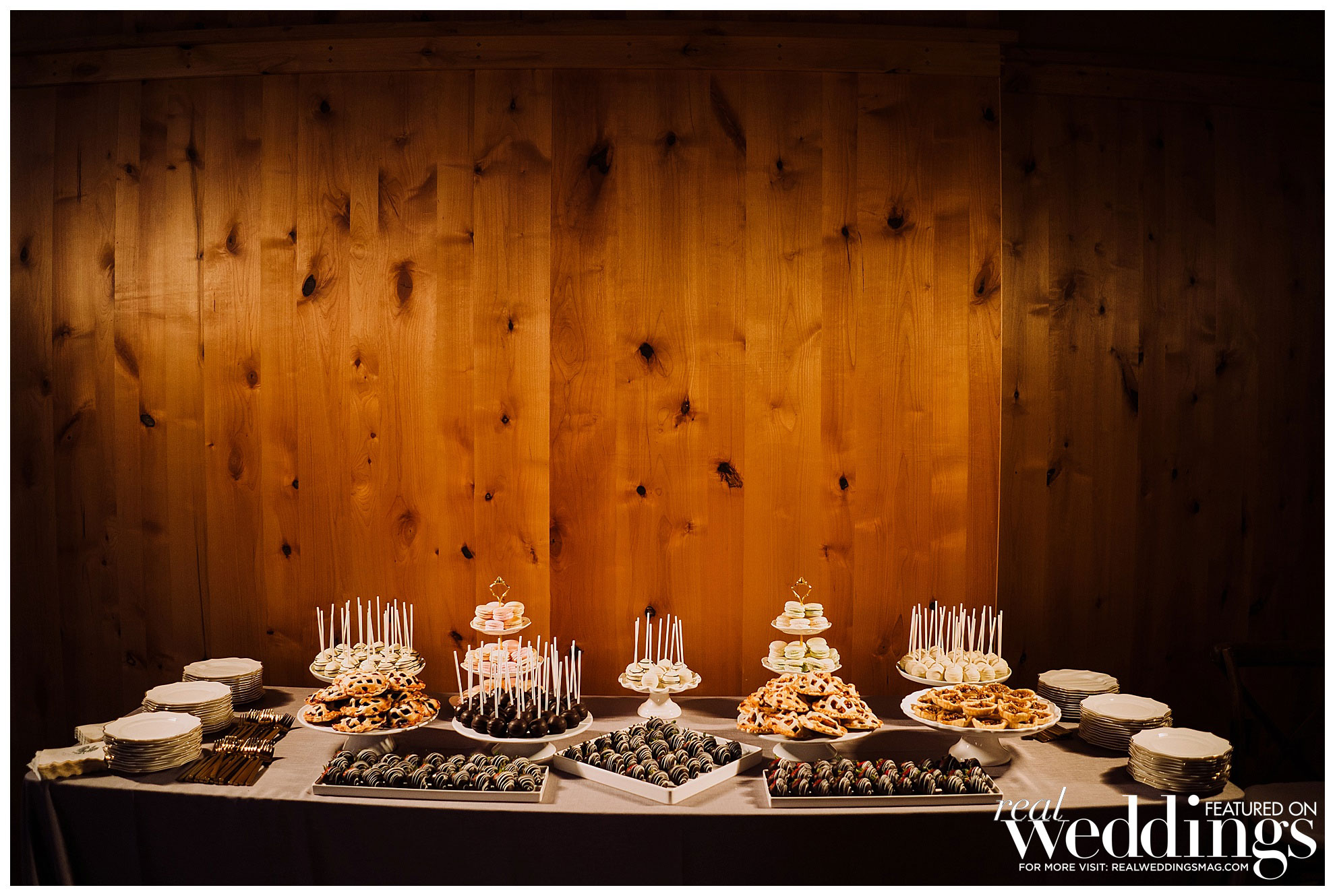 For these two, food and drink was an integral part of the celebration, with catering from Componere Fine Dining and the late-night arrival of the Pretty Odd Weiners Food Truck, a well-loved staple of South Lake Tahoe. Food played a part during the toasts as well, as they honored Kaitlin and Evan’s respective Irish and Polish backgrounds by serving shots of vodka or whiskey, paired with kielbasa and Irish soda bread. Their backgrounds influenced the party favors, too, as they gave out Tahoe-themed travel coffee mugs filled with Tasty Cakes (a nod to Kaitlin’s East Coast hometown) and almonds (a nod to Evan’s Sacramento upbringing). And for dessert they went all-out, too, offering a Champagne cake with raspberry filling as well as a dessert bar with cake pops, macaroons, mini cupcakes, and (of course!) Lake Tahoe-shaped cookies.