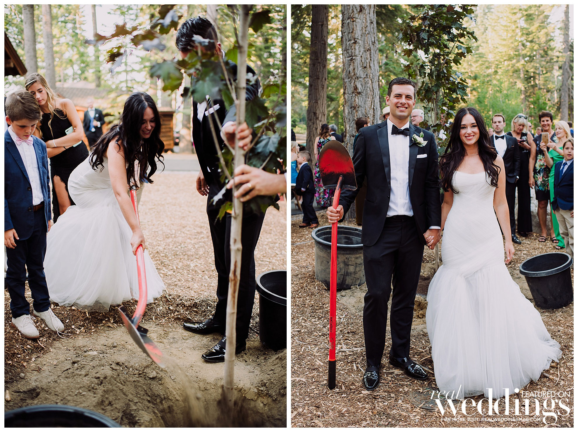 But eventually they did marry, in July 2018 in Lake Tahoe. After a ceremony at Corpus Christi Catholic Church in Tahoe City, the reception was held on Evan’s family’s property, in a pavilion built specifically for weddings. Evan and Kaitlin’s wedding was the third held in the location, and the third that included a tree-planting ceremony to mark the occasion. “Evan’s parents dream is for the family to have entire grove of weddings memorialized on the property,” says Kaitlin. “It was important for us to contribute to the special memories this property already holds.”