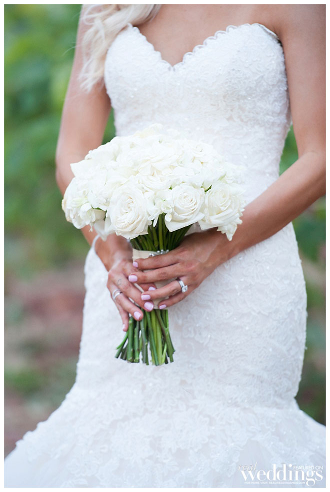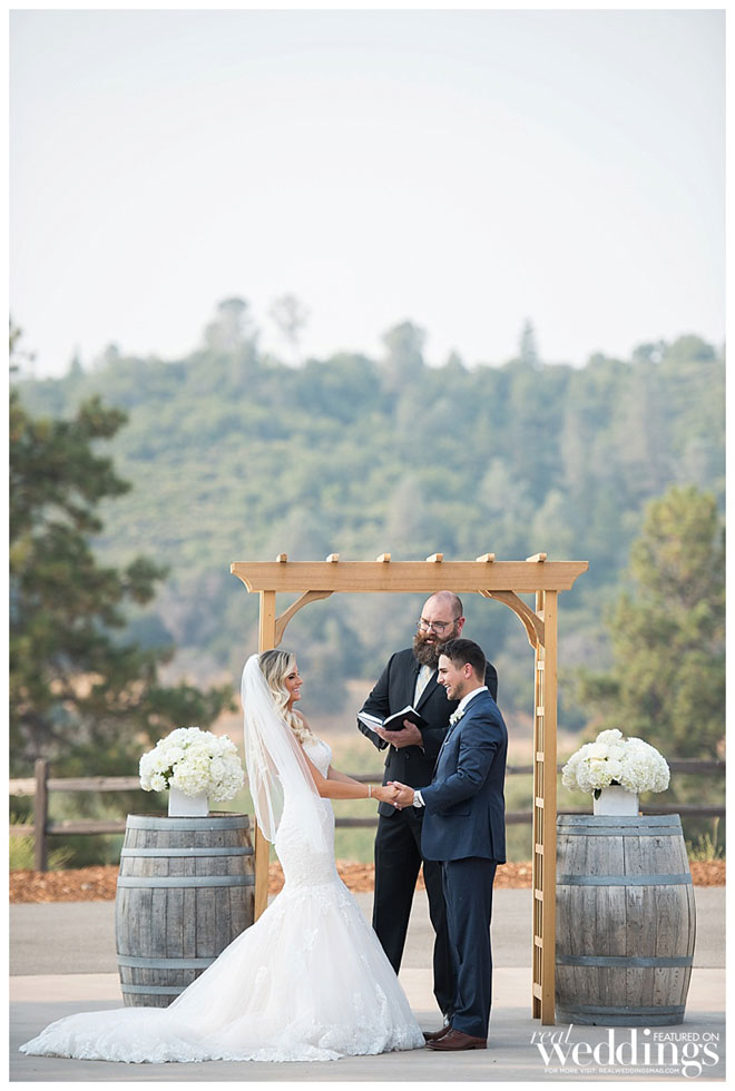 “I was so nervous that I was going to trip, or mess up my vows, or cry uncontrollably,” she says. “I drank a glass of Champagne about five minutes before I walked down the aisle and that really helped take the edge off!”