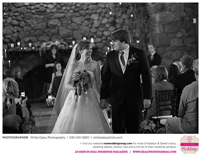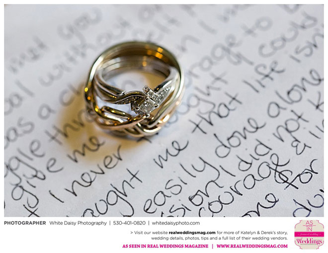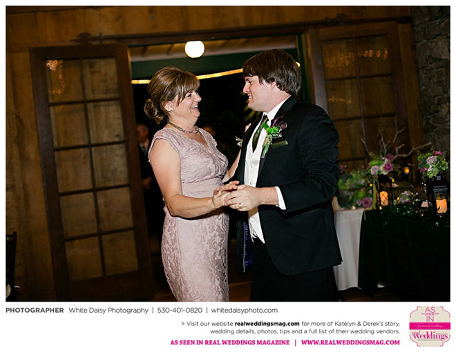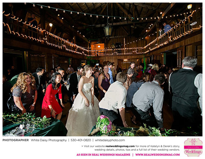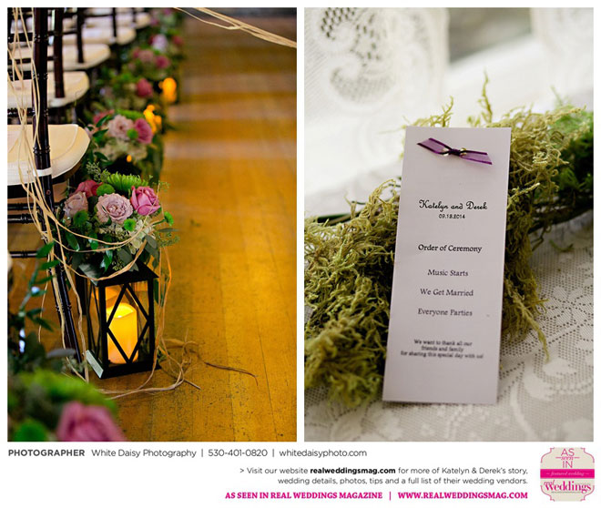 The wedding was charming and fun, but also very personal, especially when pictures of both Katelyn’s and Derek’s grandfathers were added to her bouquet. They then added those pictures to their grandmothers‘ photos as well and displayed them during the reception. “We wanted our grandmothers to know that they were there in our hearts and weren’t forgotten on our special day,” Katelyn says.