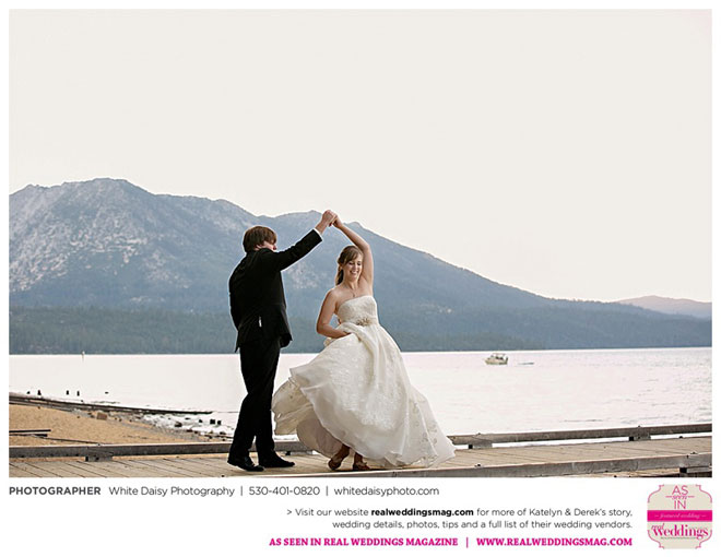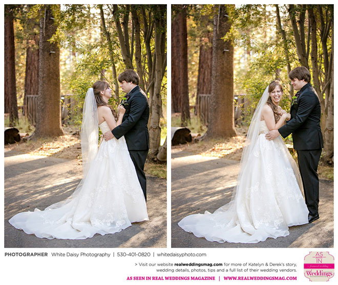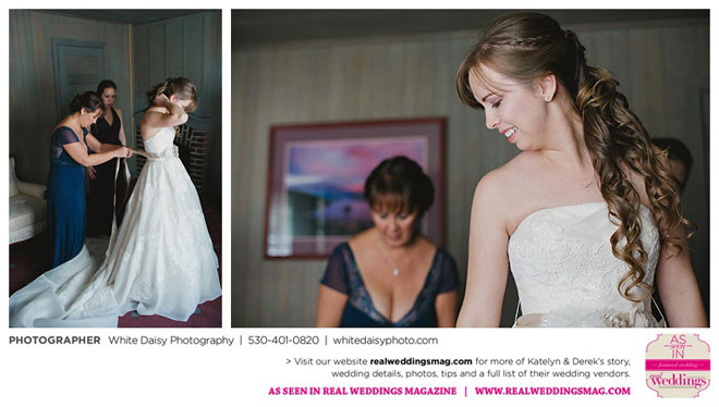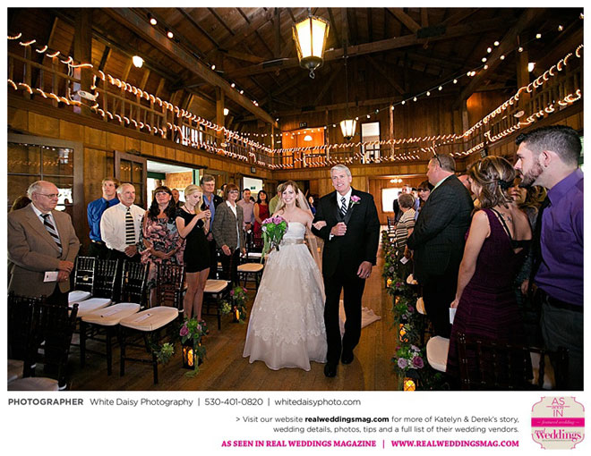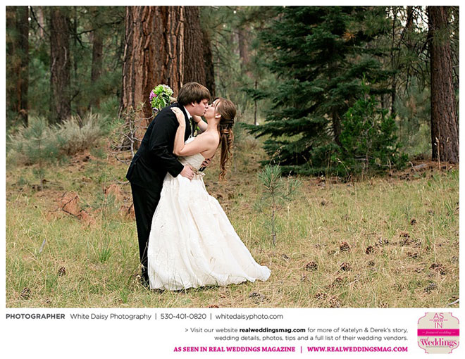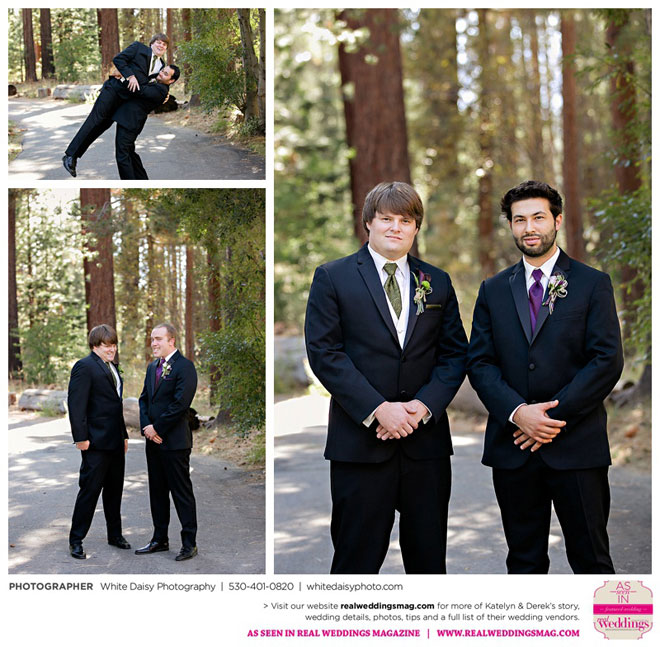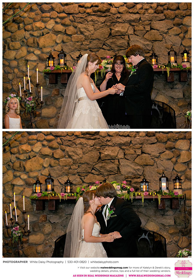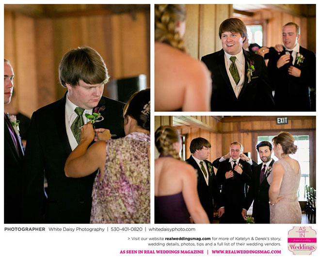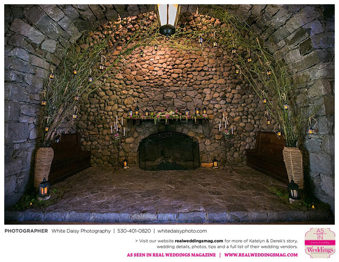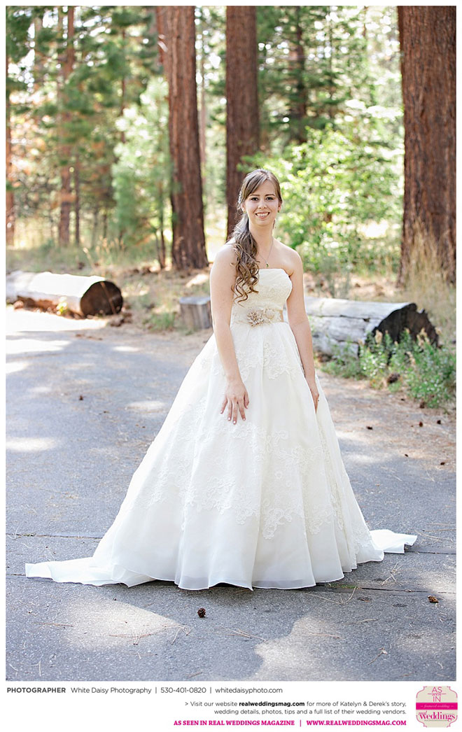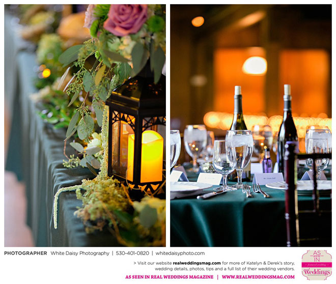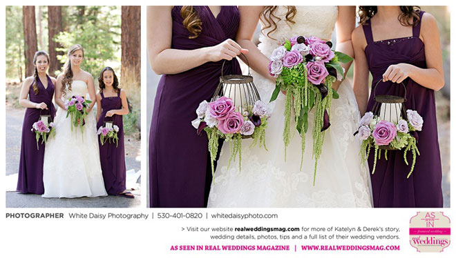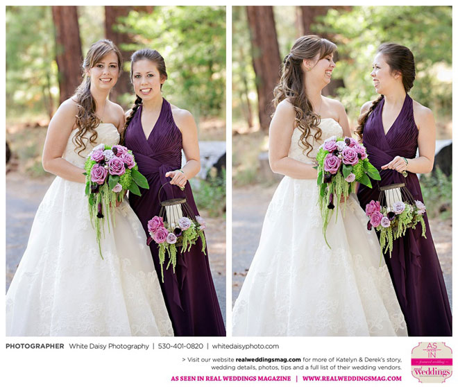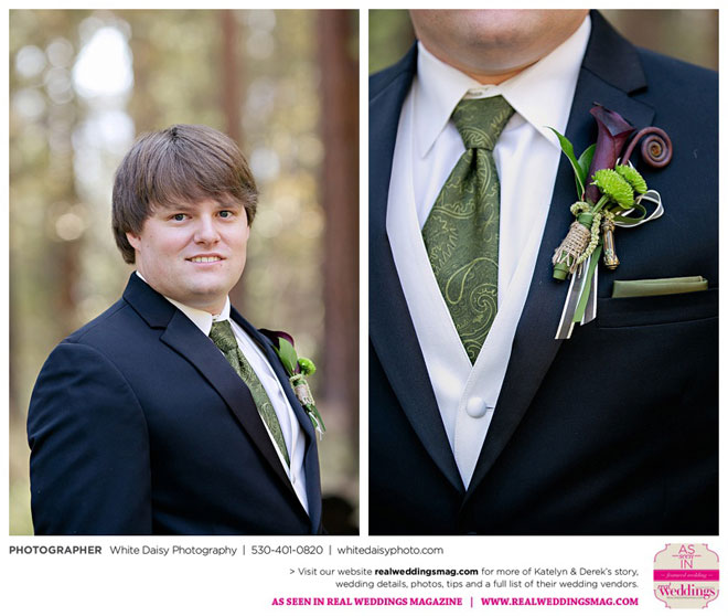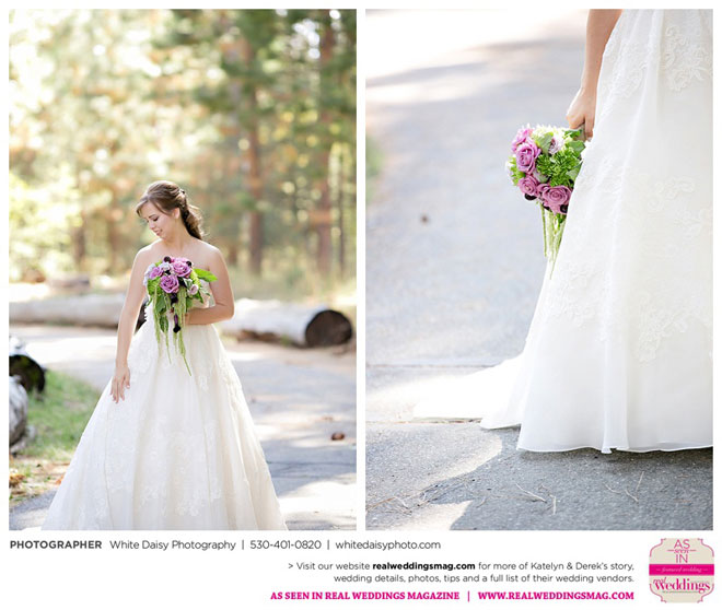 Surprisingly, Katelyn was “hands off” during the planning process, as she was either working or going to school full-time. With help from various family members, especially Katelyn’s mother, the couple chose to incorporate the feel of the video game they first played together into their wedding, along with their interest in Norse mythology, hence the Valhalla Grand Hall in Camp Richardson, South Lake Tahoe as the wedding venue. “We wanted something that felt whimsical and woodsy,” describes Katelyn. Their colors were purple, dark olive green (the duo’s favorite colors, respectively) and ivory. The wood in the surrounding area gave guests an enchanting feeling, which was just what the couple desired.