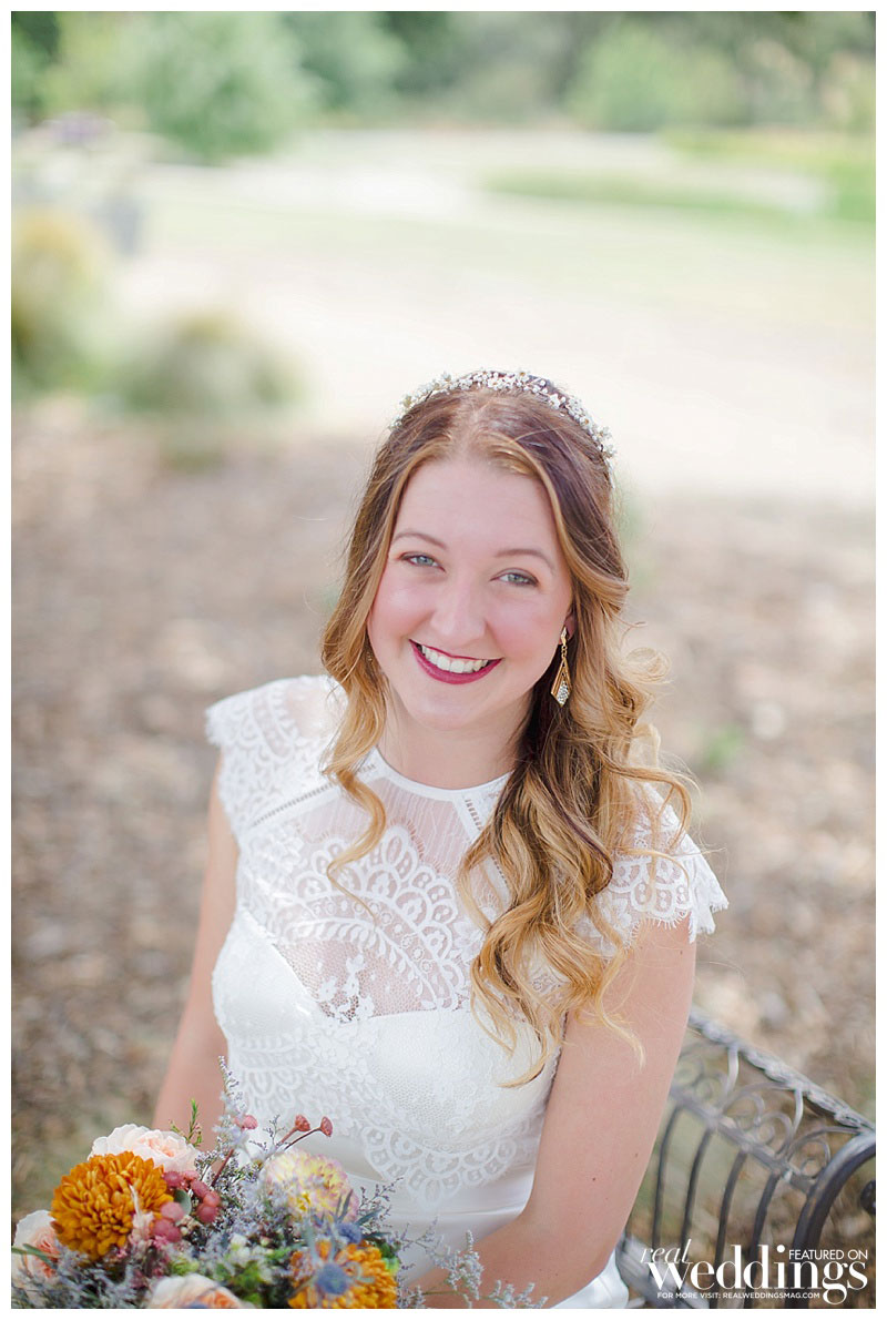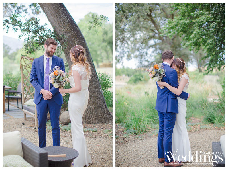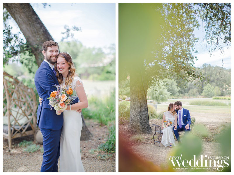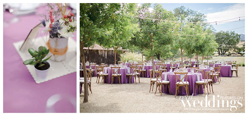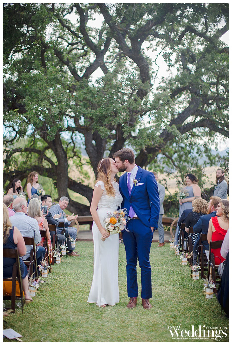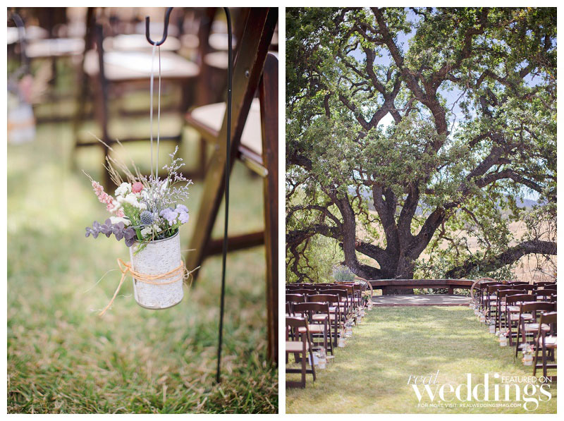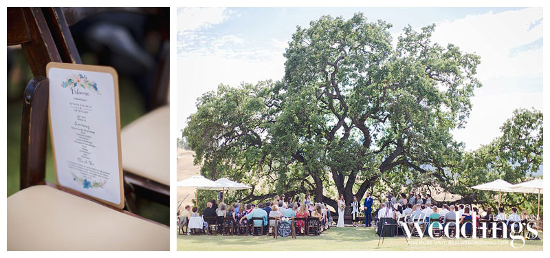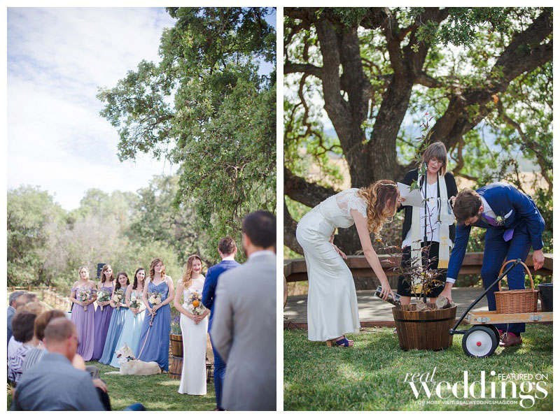 That was what Katelyn and Ian were waiting to hear especially because Katelyn’s favorite part of their woodsy venue was the huge oak tree under which they married, which surely wouldn’t have survived a fire. The outdoorsy high-school sweethearts intentionally picked their venue based on their shared love of the environment. “I wanted to celebrate our love amongst the beauty of nature,” says Katelyn, “and specifically California’s beautiful oak trees and wildflowers.” Since nature is so important to both Katelyn and Ian, they included a tree-planting during their ceremony. Katelyn and her family DIY’d the décor, from the jade table planters to the flower seed packets the duo gave their guests as favors to commemorate the free-spirited celebration.