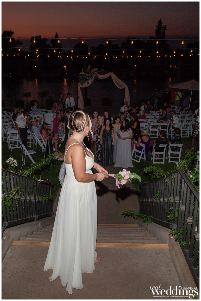 The ceremony and reception took place right along the American River in true, classic Sacramento style with Katie’s brother acting as the officiant. They even had a surprise visit from a riverboat that stopped to take in the beautiful scenery before blasting KC and The Sunshine Band’s “Shake Your Booty” to mark the occasion. “I didn’t even crack a smile at the time, but now it’s pretty funny,” Katie says.