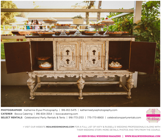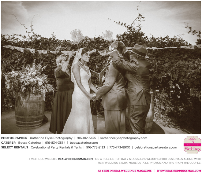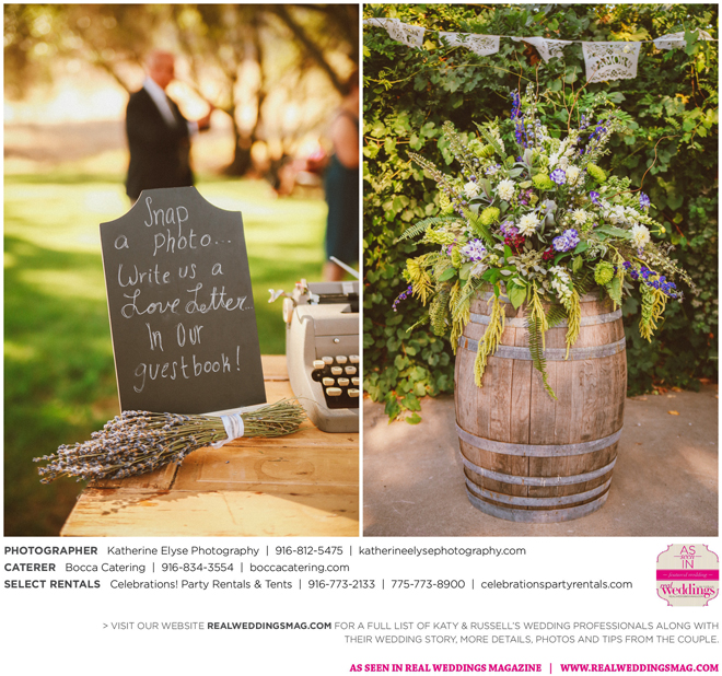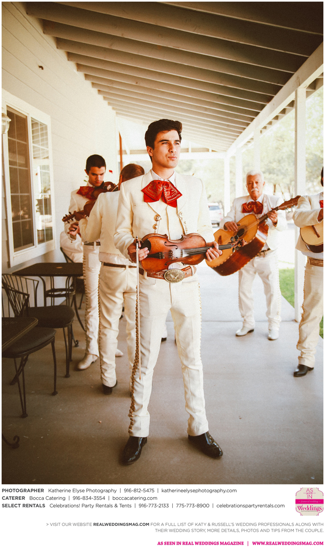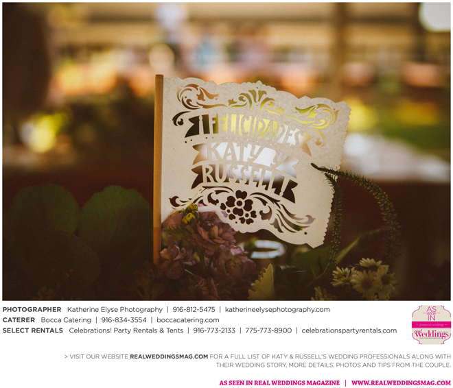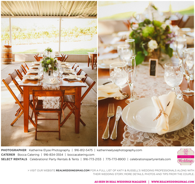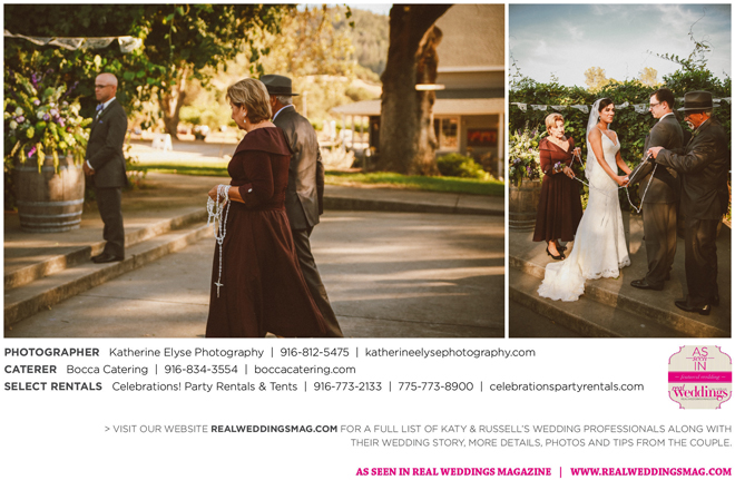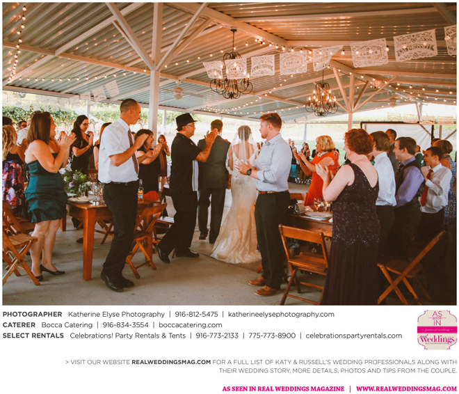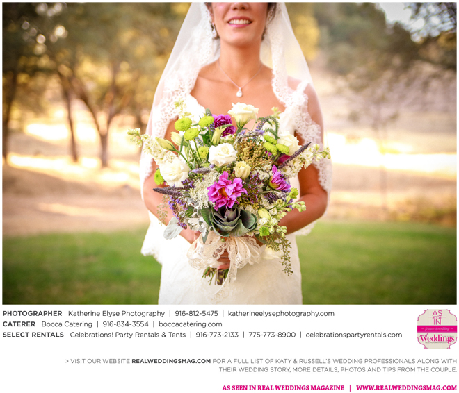 The bride and groom were fortunate to have the perfect weather for their big day. They chose a pastor from Katy’s childhood church to officiate the ceremony. “It was very special to me that my grandparents, who have been married for over 50 years, were able to perform our traditional lasso ceremony,” says Katy.