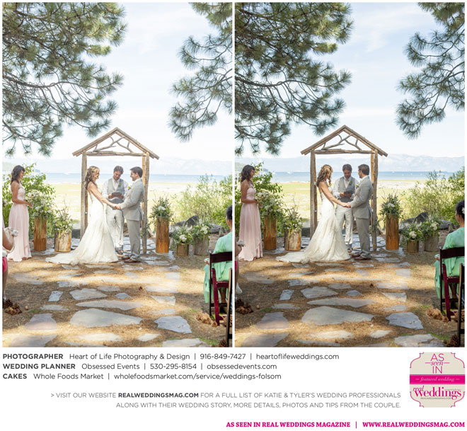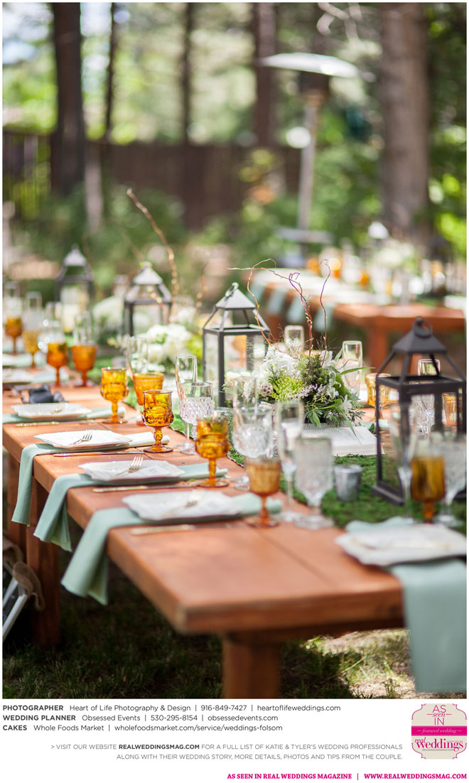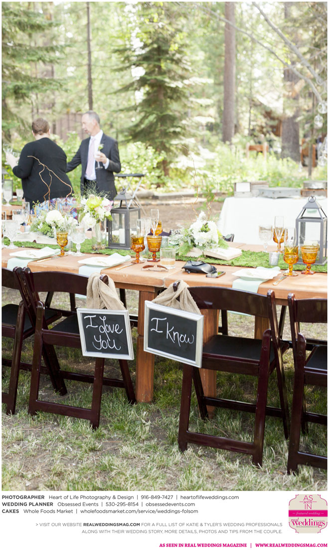 They knew they wanted a low-stress day for their wedding, but with only six months to plan, there were definitely some speed bumps on the road to “I Do.” About a month before the wedding, “we realized we still had a bunch of DIY projects to get done, vendors to pay and random things to accomplish,” Katie says. But, with the help of some fantastic wedding planners and a hefty dose of DIY diligence, 55 of their family members and close friends gathered in Tahoe City for the occasion, and everything went off without a hitch.