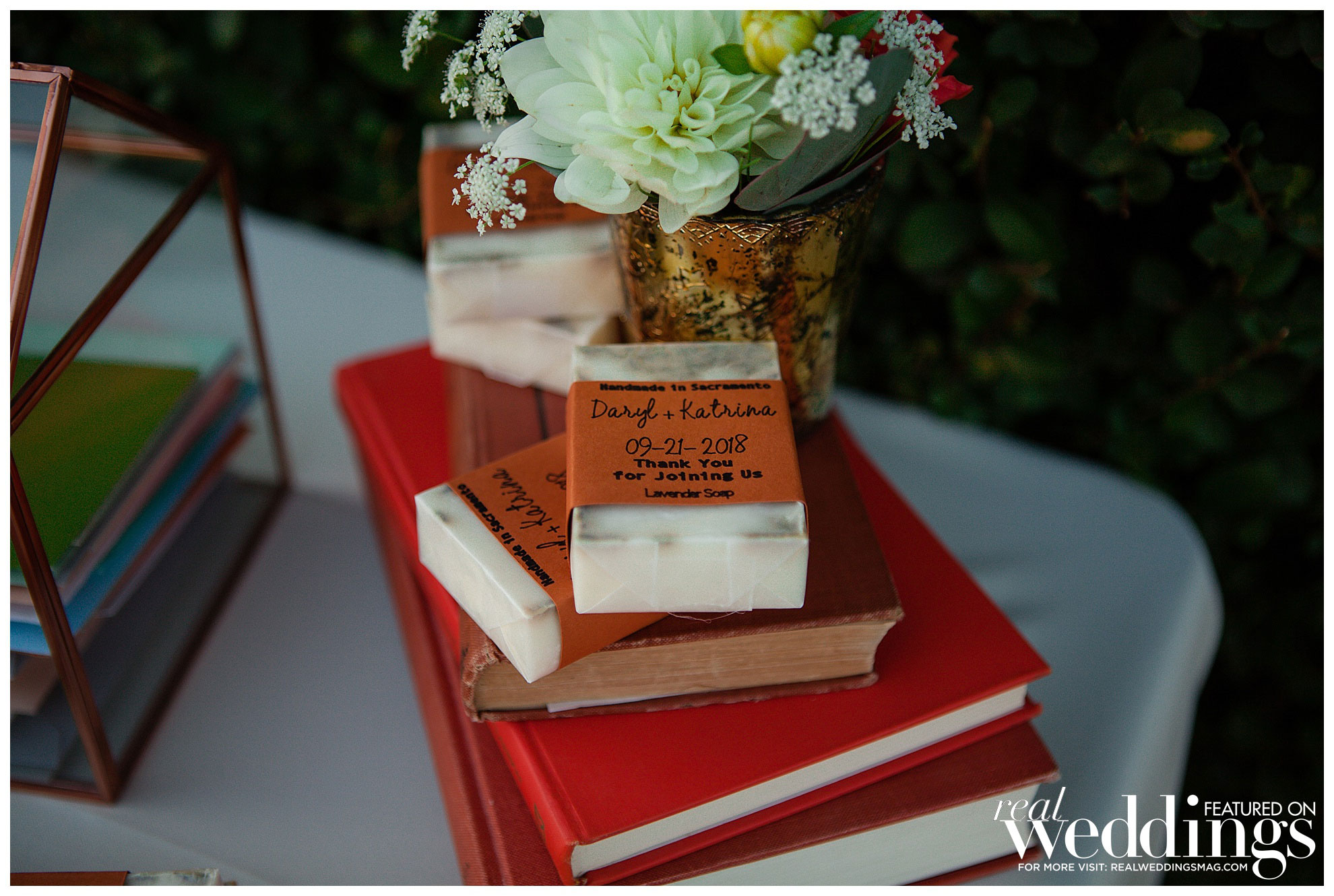 Interestingly enough, Katrina’s first look wasn’t quite the same as Daryl’s. Katrina says that Daryl had bought a digital camera on the day they first met in college and took photos of everyone at the party that day. “He seemed to have captured three still shots of me walking up to the table right before we first introduced ourselves,” says Katrina. “We ended up framing one of the photos in the walkway before our ceremony with the words ‘Daryl’s first look.’” While Katrina jokingly describes it as “creepy,” Daryl has a different spin on it. “Those snapshots are what remind me that love can find you when you least expect it. How many people can say they have pictures of their future wife from the night they first met?”