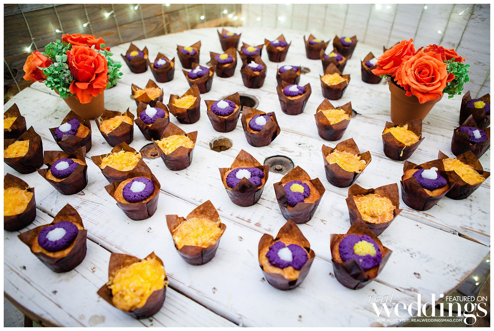The reception was held in the same location and included Mediterranean food, as well as tacos as the late-night bite. They skipped the cake and opted for not one but two dessert offerings to satisfy their collective sweet tooth: churros, picked by Daryl, and bibingka, a Filipino coconut-rice pastry from Binka Bites, a bakery in San Francisco that Katrina loves.