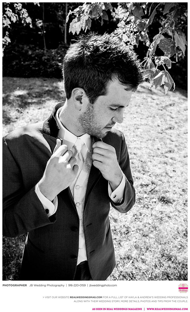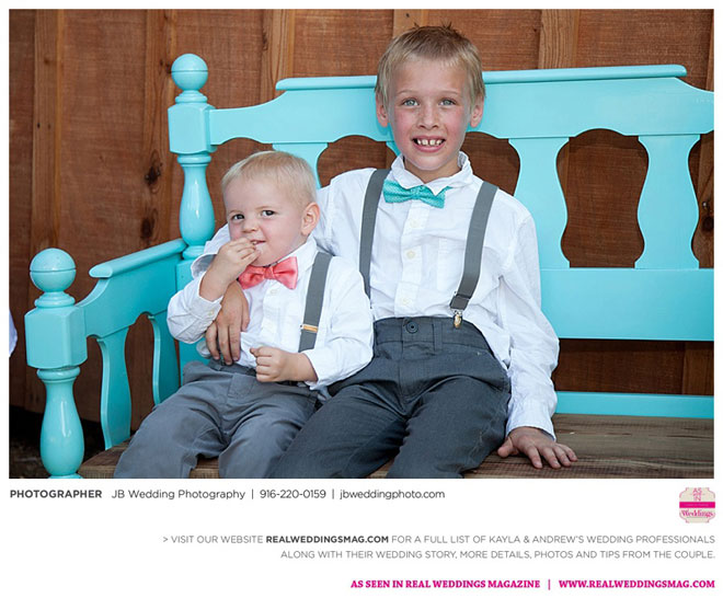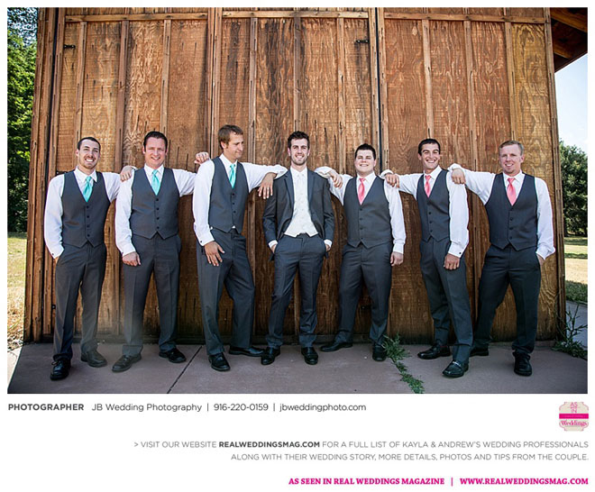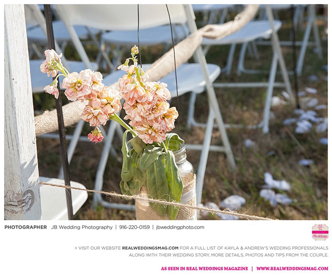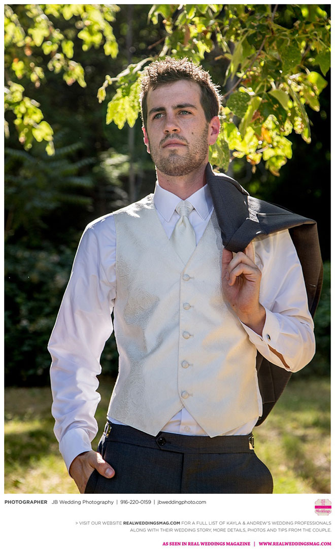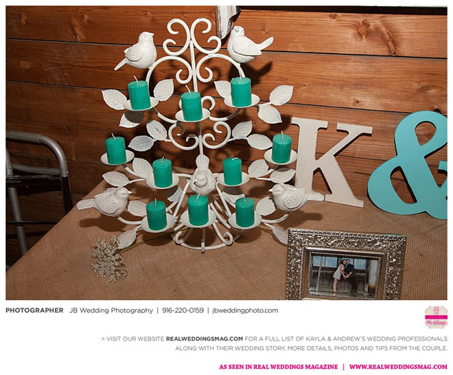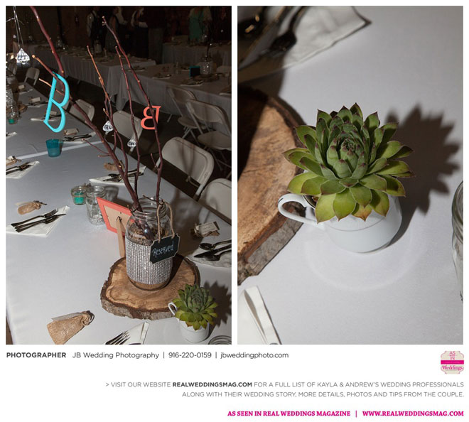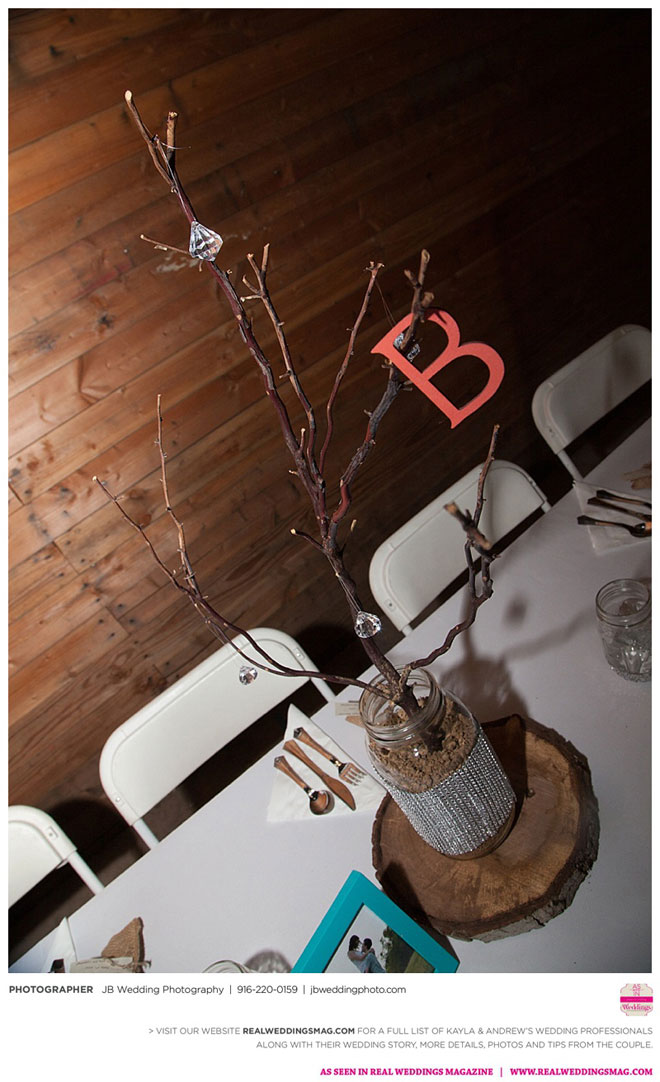 Kayla had already done a lot of wedding planning long before her and Andrew even talked about getting married, but she was surprised to learn how much of a say Andrew wanted in each decision. It was a welcomed surprise—after all, it was their wedding day. Kayla relied on her garage sale savviness to help with budget-friendly décor and—with a bit of assistance from their friends and coordinator—made their own floral arrangements and boutonnieres.