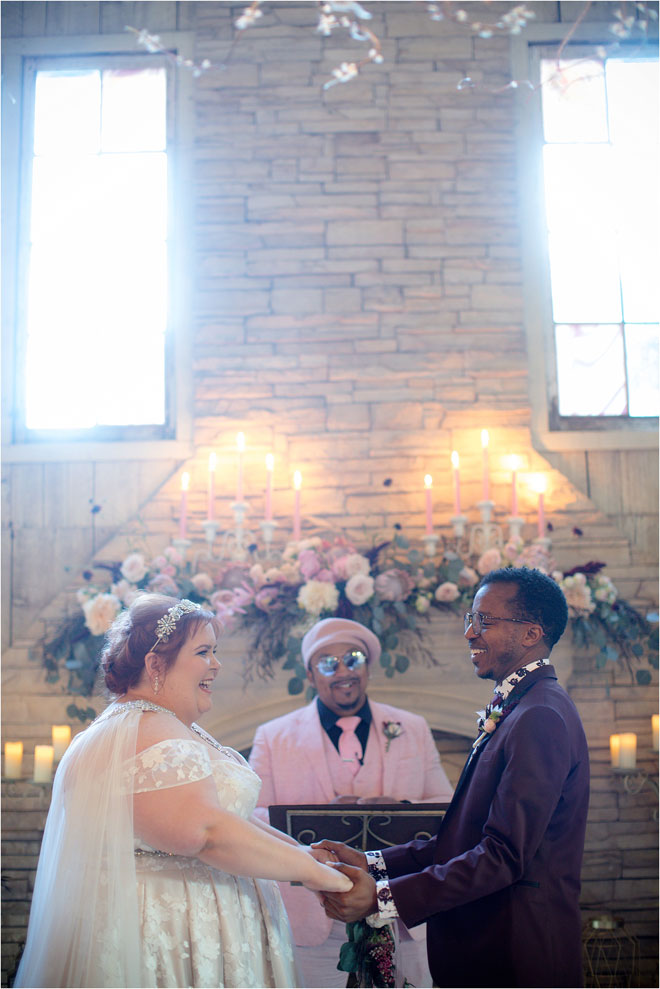 Kelly and John were a fast match, first meeting on a dating app. They both quickly ditched the app knowing they found someone special. As Kelly says, they were two awkward people who managed to find each other in a world of mundane dates and missed connections. The beauty of their matchup in a place not meant for magic came to a head on a day when John booked a day of glamour for Kelly—an actual ruse for his plan to propose. Once they were engaged, Kelly says they decided they wanted “a big party to celebrate our unique love and blending of our families.”