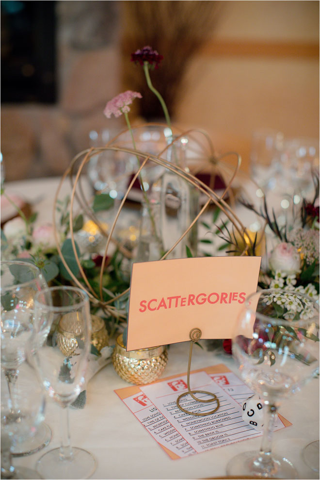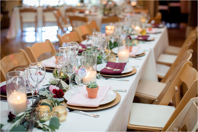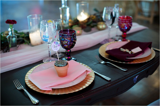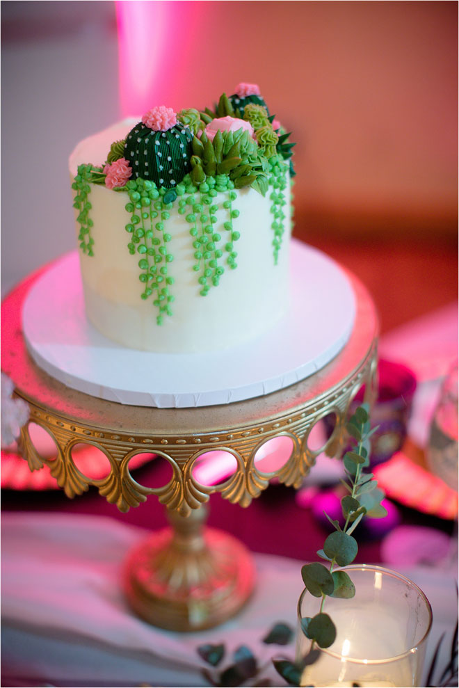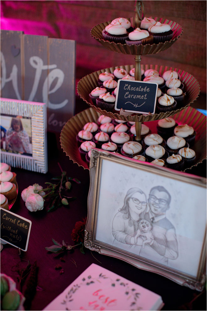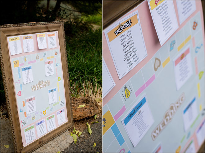 Their reception was no different, with personal touches and welcoming practices woven throughout the entire event. Guests sent in song requests along with their RSVP, John designed board game-themed table assignments and guests received not one but two different wedding favors: cactus bottle openers and mini potted succulents. The overall décor was dedicated to their combined uniqueness, and even the artwork curated for the reception. As Kelly explains, “We commissioned a few of our artist friends to create unique artwork of us as a couple to be displayed throughout the reception.”
