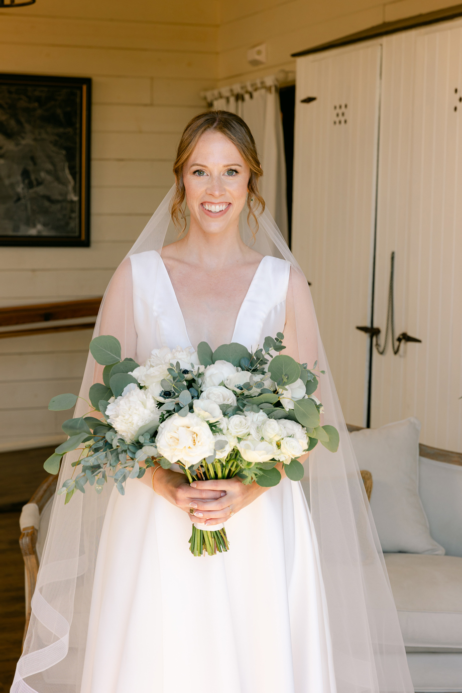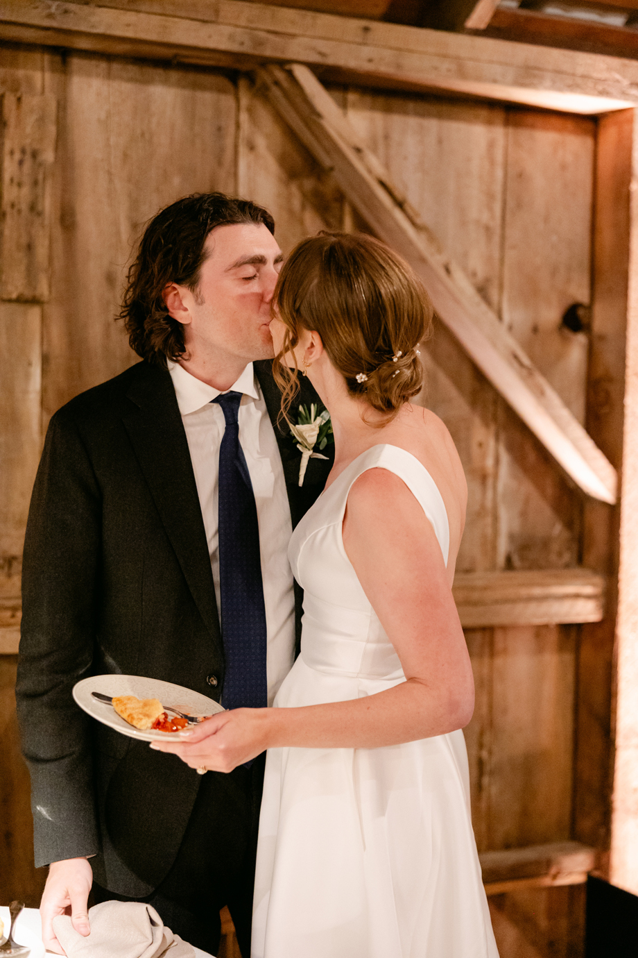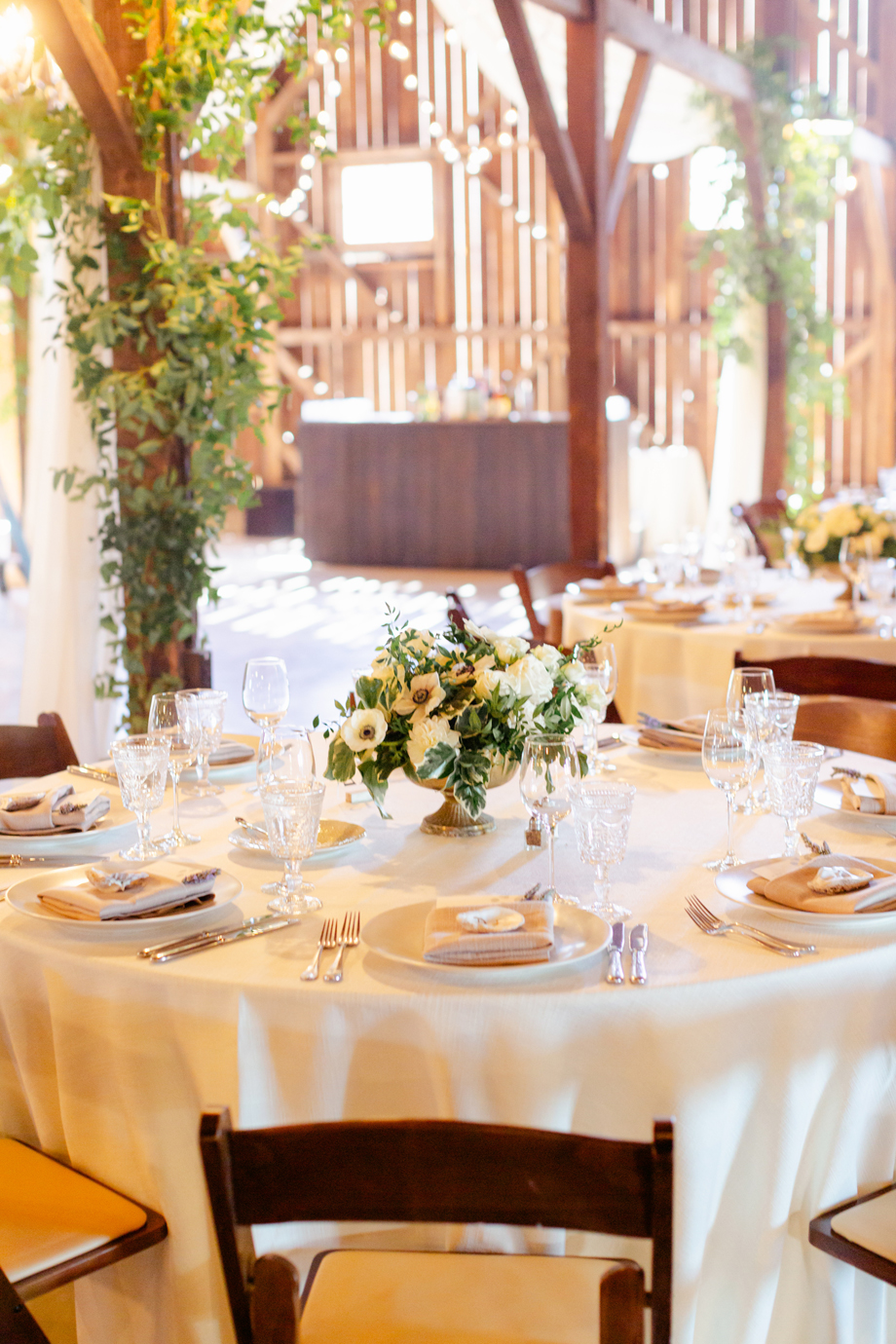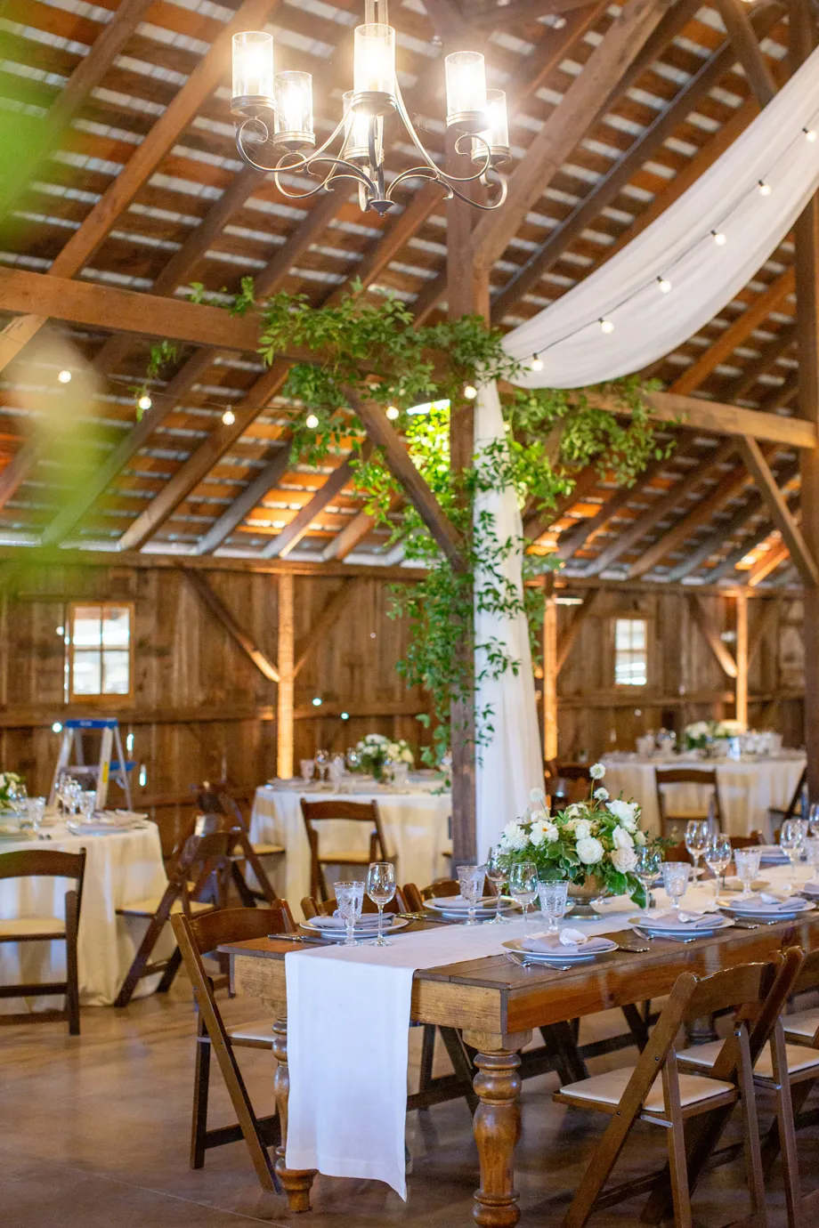 The barn just felt like a fairy tale. Our florist, Angella, did greenery on the posts to soften the barn and we just loved the way it looked with the market lights. Illuminate did an incredible job with the lighting as well, the entire evening.