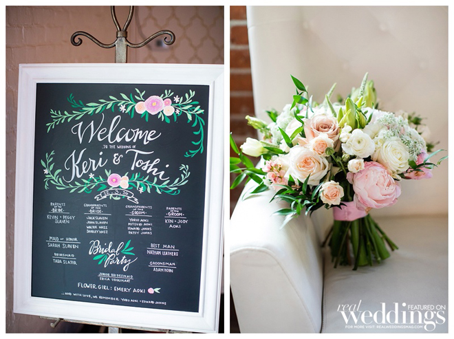 They personalized the ceremony by celebrating the groom’s ancestry. “Since Toshi is very proud of his Japanese roots, we implemented the Japanese wedding tradition called San San Kudo,” says Keri. “We invited both of our parents up early on in the ceremony and we shared saké for good luck and as a sign of respect for our parents.”