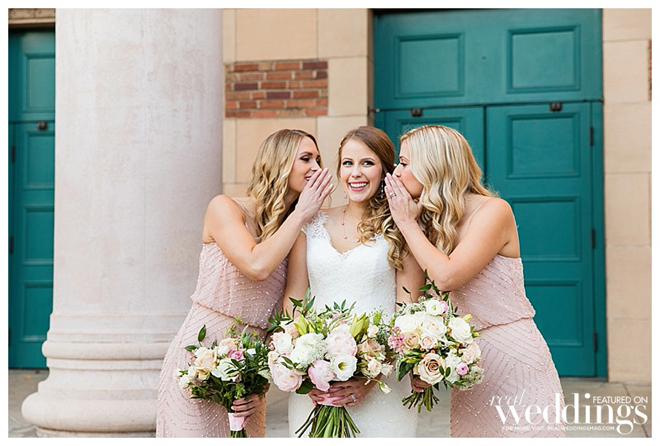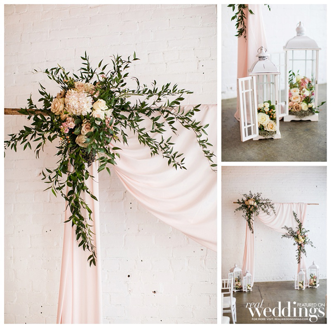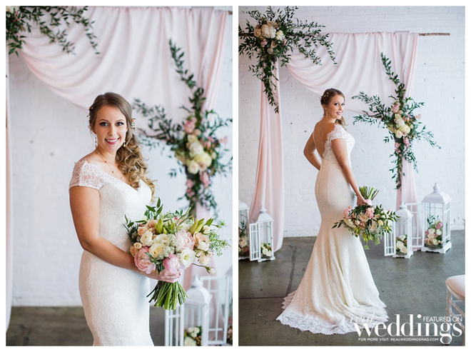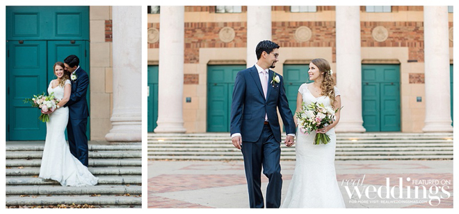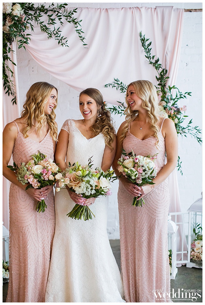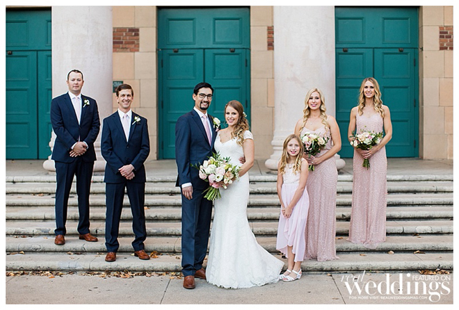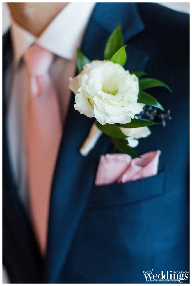Their wedding’s simple and elegant vibe was complemented by a blush pink and navy blue color scheme with copper accents.