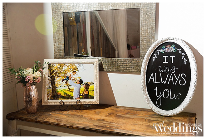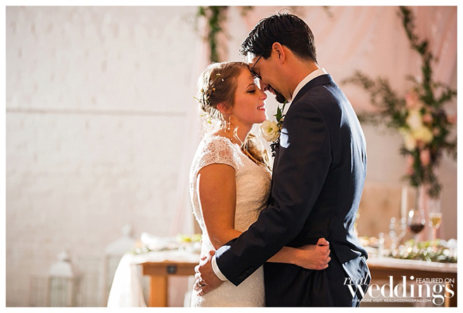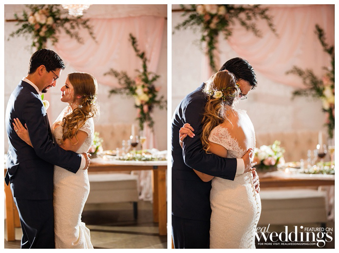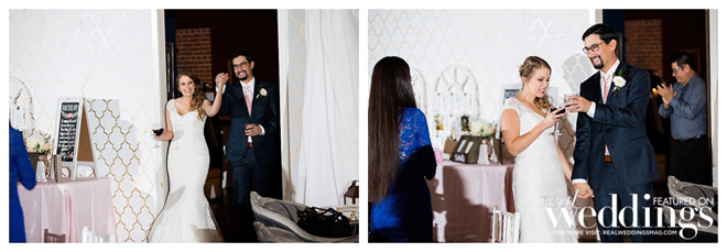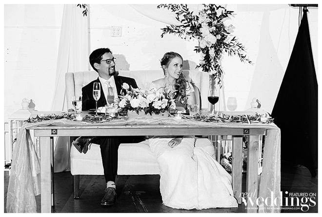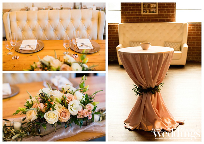 The couple made sure they had some private time too. “During cocktail hour, we came back early from taking photos and we cuddled on a couch in the reception area,” Keri says. “We spent 10 minutes enjoying each other’s company and looking around at our beautifully decorated wedding reception.”