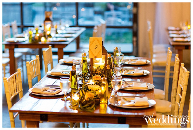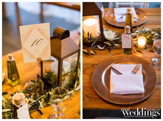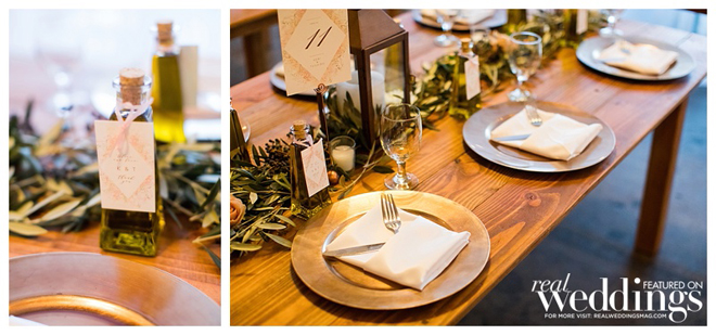 Keri’s favorite detail was the olive oil thank you gifts, which matched the table number signs and the wedding invitations.