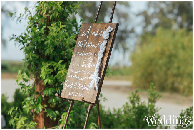 They had traditional elements to their wedding but with a few twists. For their unity ceremony, they chose to braid three cords to represent the verse from Ecclesiastes 4:12. “I liked the symbolism behind this Bible verse, and now we have a keepsake that we put up as décor in our living room,” she says.