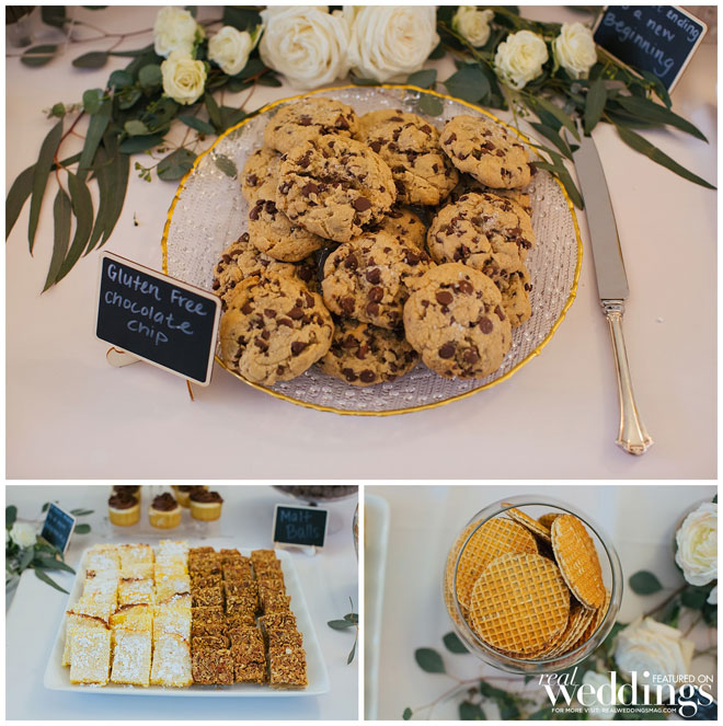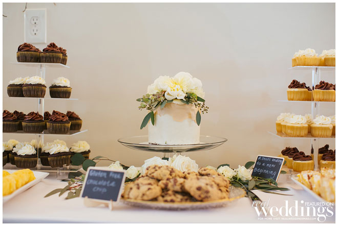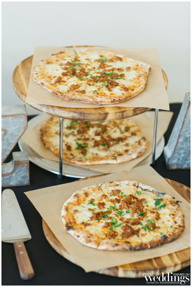 The dinner menu featured the couple’s favorite food: a wood-fired pizza buffet. They cut a small cake and had a dessert bar with vanilla and chocolate cupcakes, candies from a friend and homemade goodies baked by the bride and her mother.