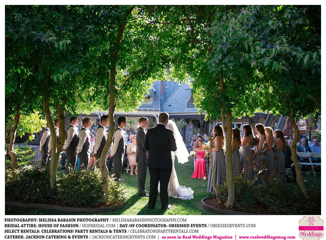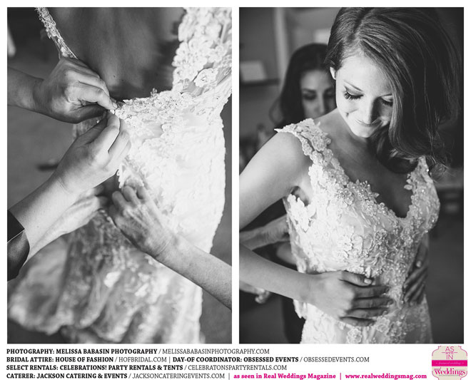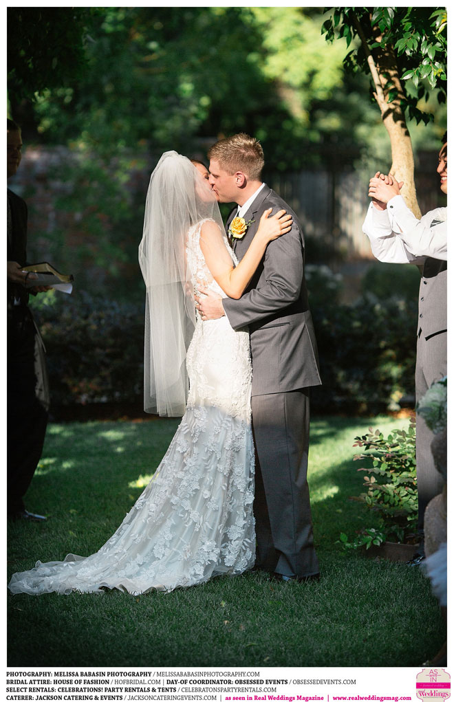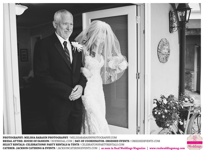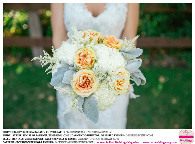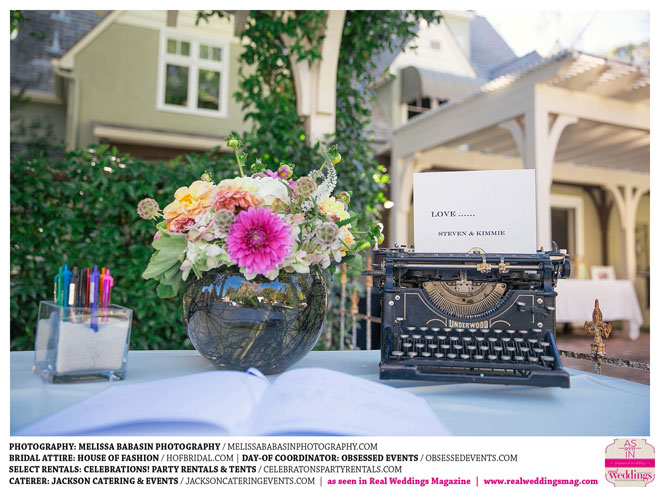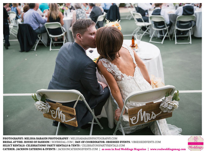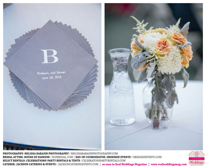 Kim was so overcome with emotion that she forgot to actually say yes, but her excitement was proof enough that the intimate proposal was a hit. Although he had hoped to be married by the following month, Steven soon realized that planning a wedding would take more than a few weeks’ preparation. For her part, Kim had visions of being a fall bride surrounded by deep, rich colors, but as the process evolved, she realized a soft, simple palette befitting a June celebration was more her style. When it came to choosing a locale, the couple says that they were stumped until Kim’s uncle (jokingly) suggested they use his backyard, an offer that they ultimately took him up on. “It had everything we were looking for and it holds a special place in Kim’s heart,” Steven explains. “The house is filled with memories of family.”
