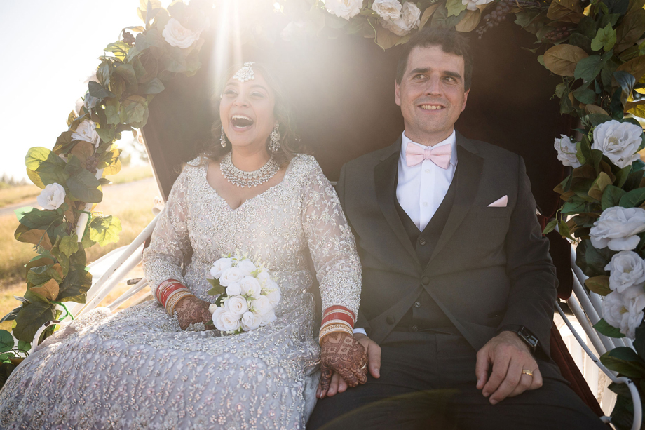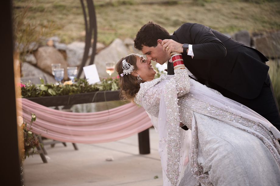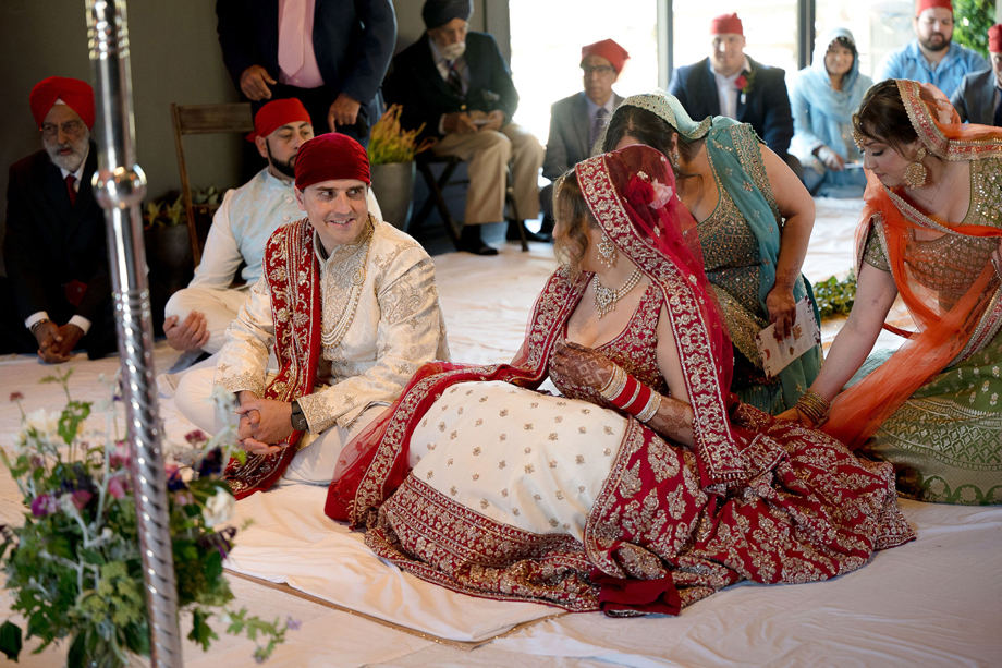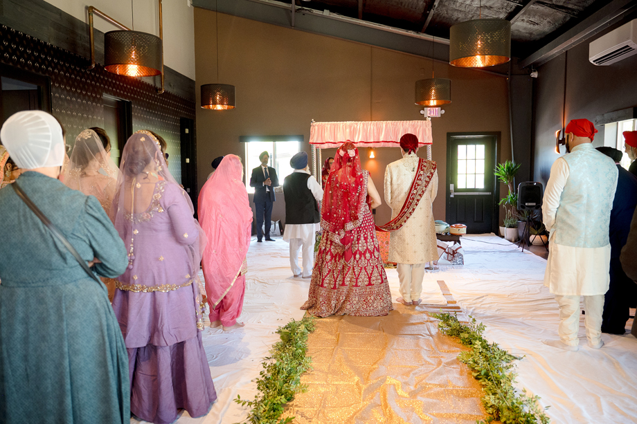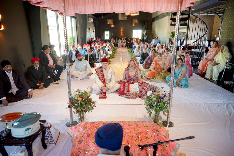 Absolutely! Our wedding was a true celebration of both our cultures. We began with a Sikh ceremony in the morning, honoring Kiran’s Kenyan Punjabi heritage. The venue’s indoor space was transformed into a temple, complete with a priest and holy book. In the afternoon, we had an intimate Amish ceremony to reflect Tim’s roots, where all of our guests joined in singing traditional hymns. The day ended with a Western-style dinner and dancing, blending our worlds beautifully. Each part of the day was a heartfelt tribute to the cultures that shaped us.